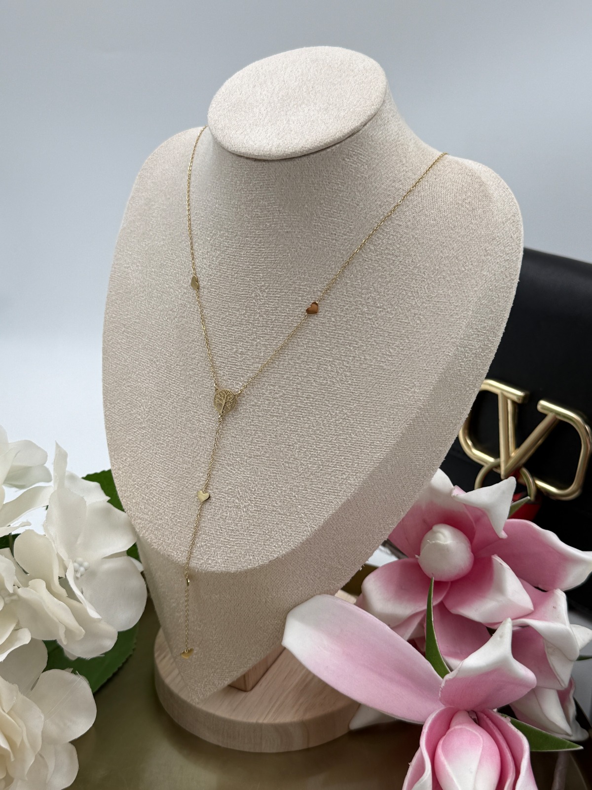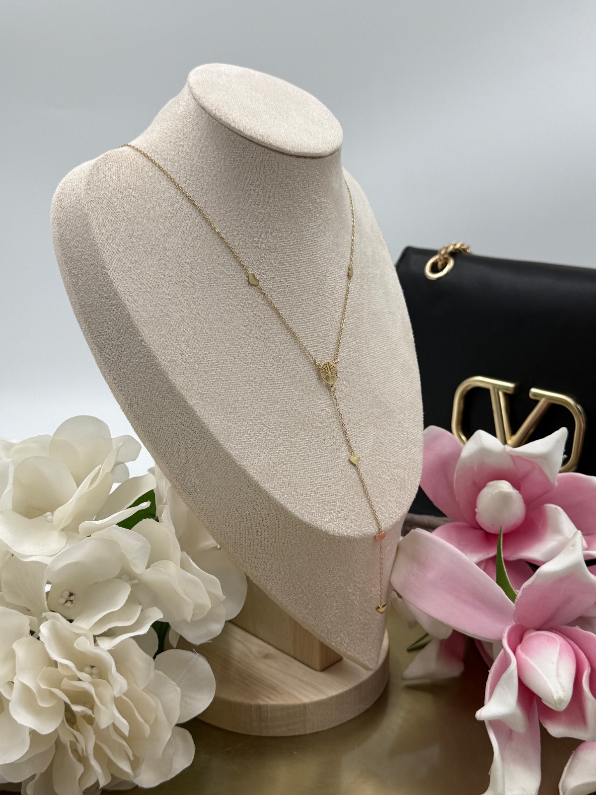 Celebrytka, delikatny łańcuszek typu różaniec – drzewko szczęścia, serduszka. Kolor złoty.