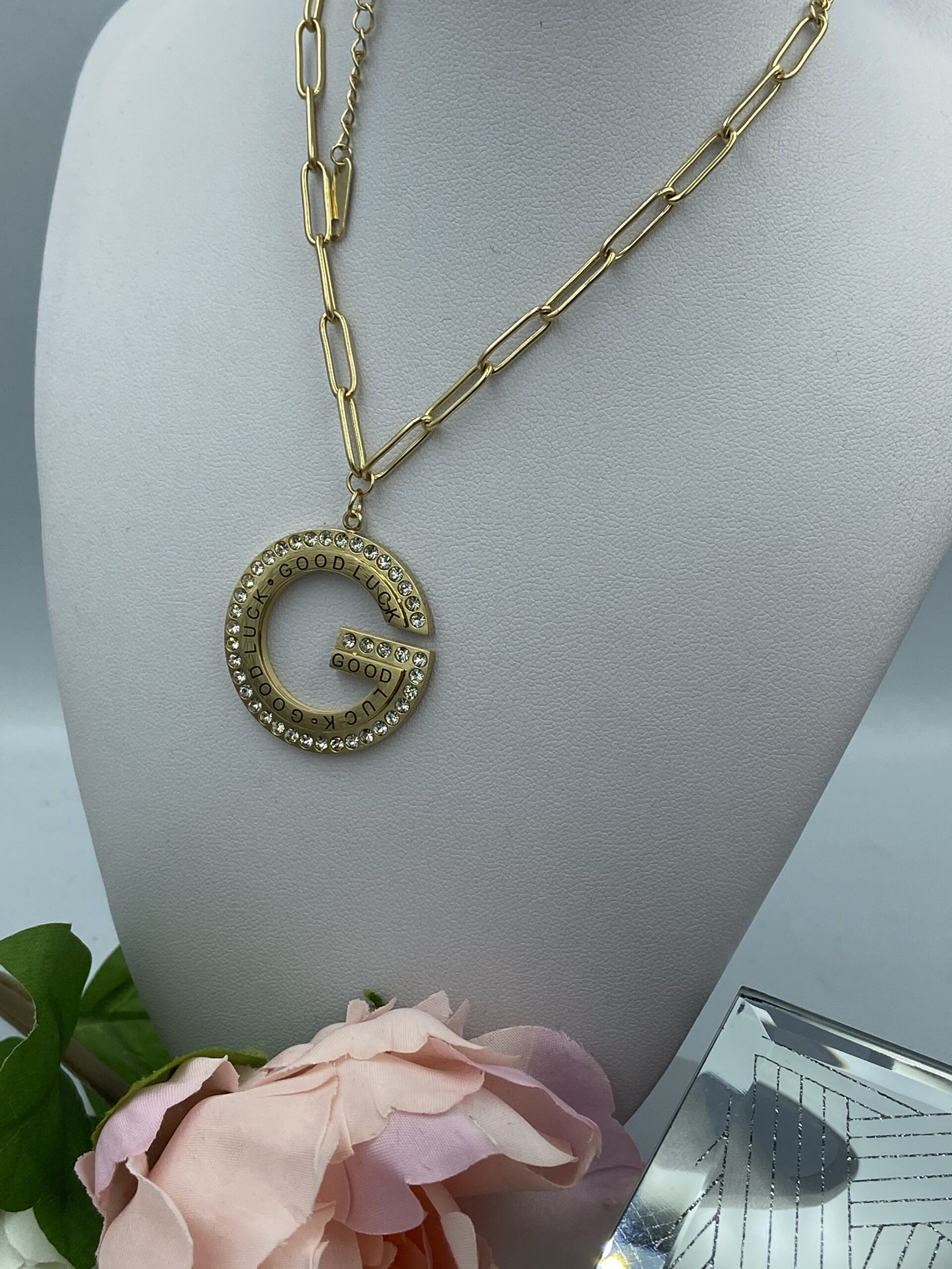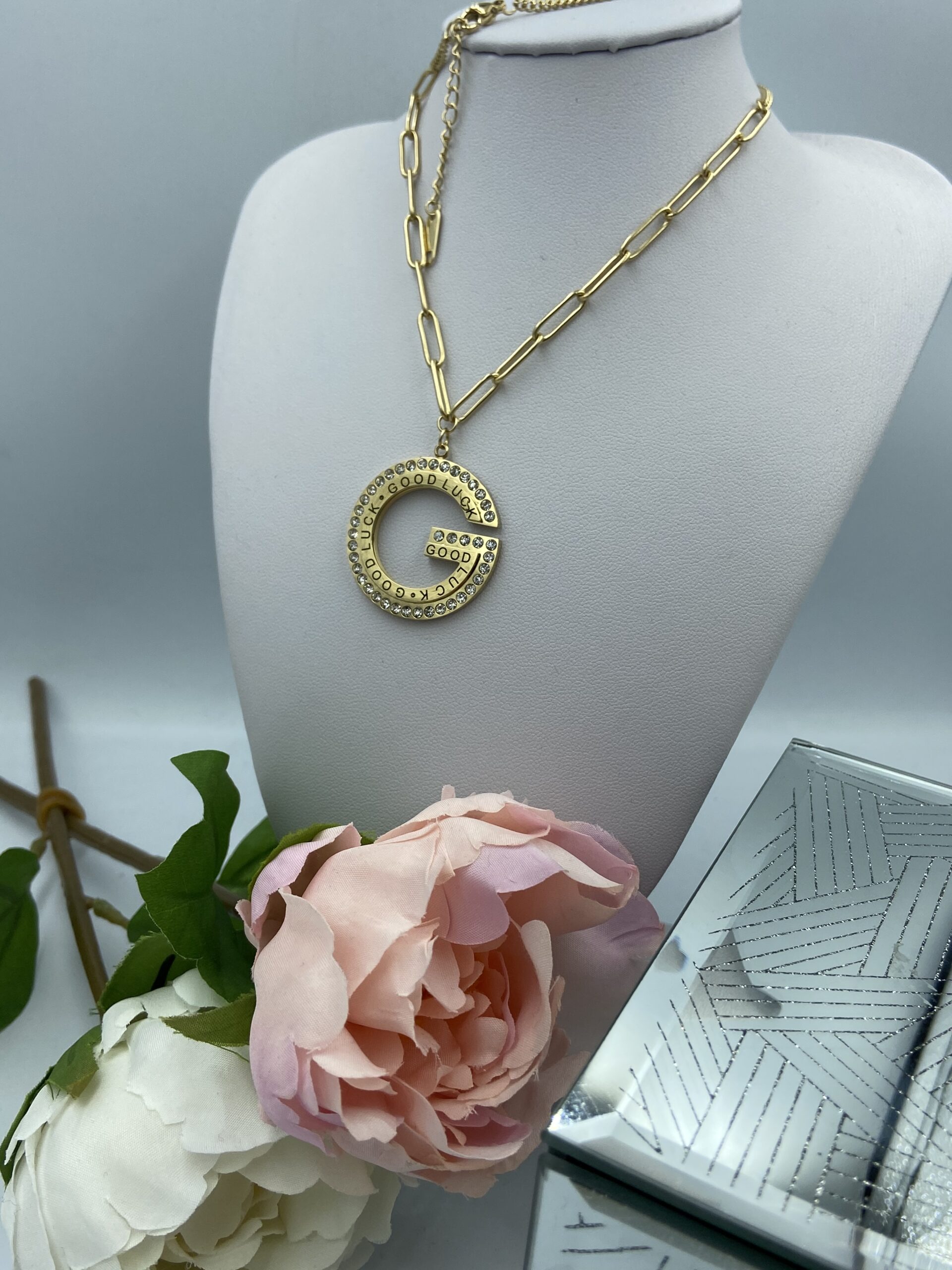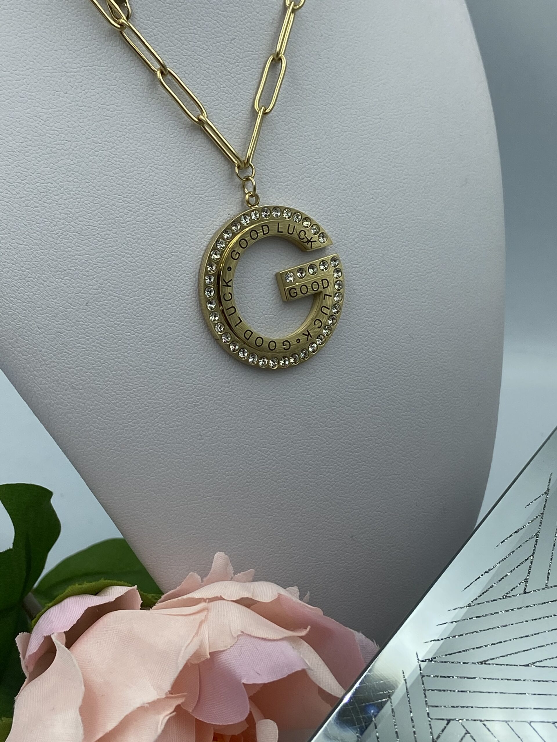 Naszyjnik celebrytka litera G cyrkonie stal 316L
