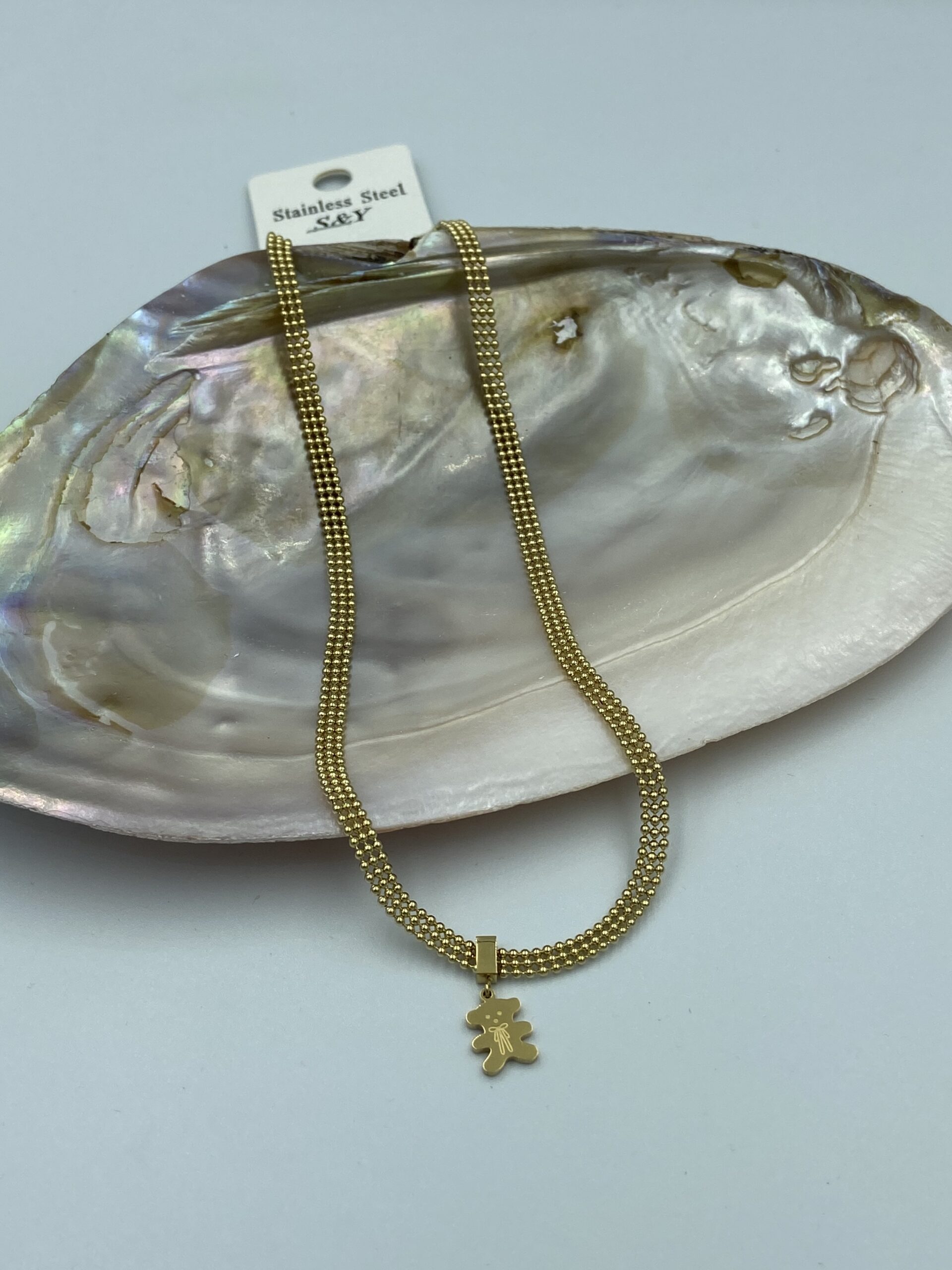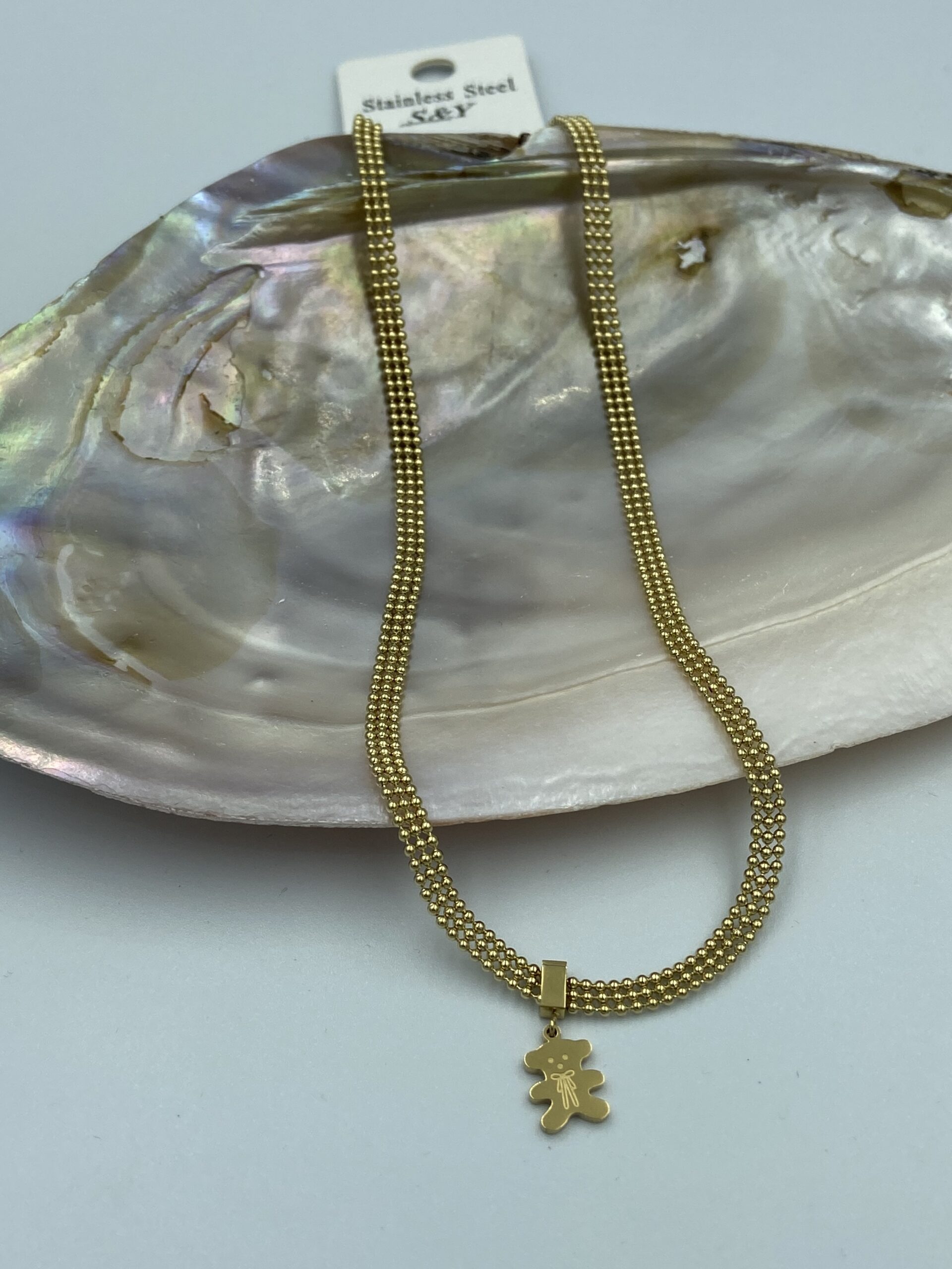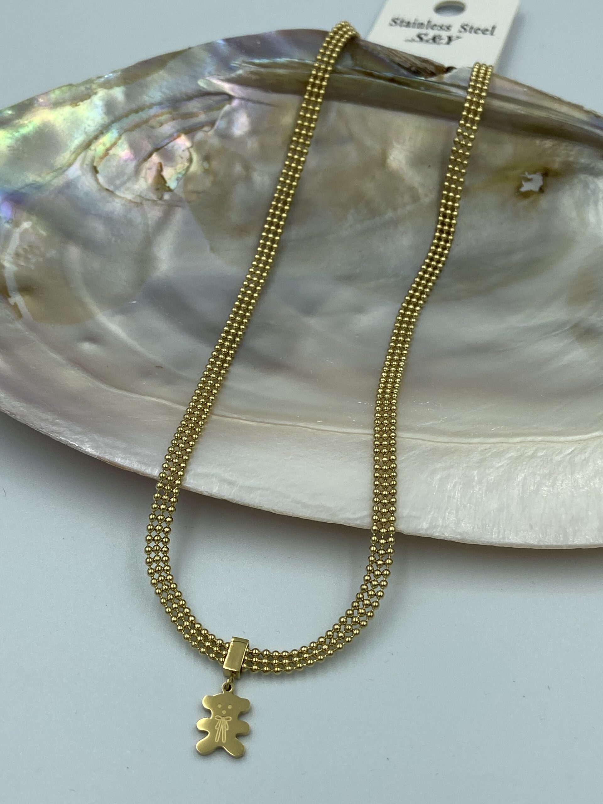 Naszyjnik celebrytka z dużym, pięknym misiem z cyrkoniami. Grubszy łańcuszek z kuleczek, chocker.