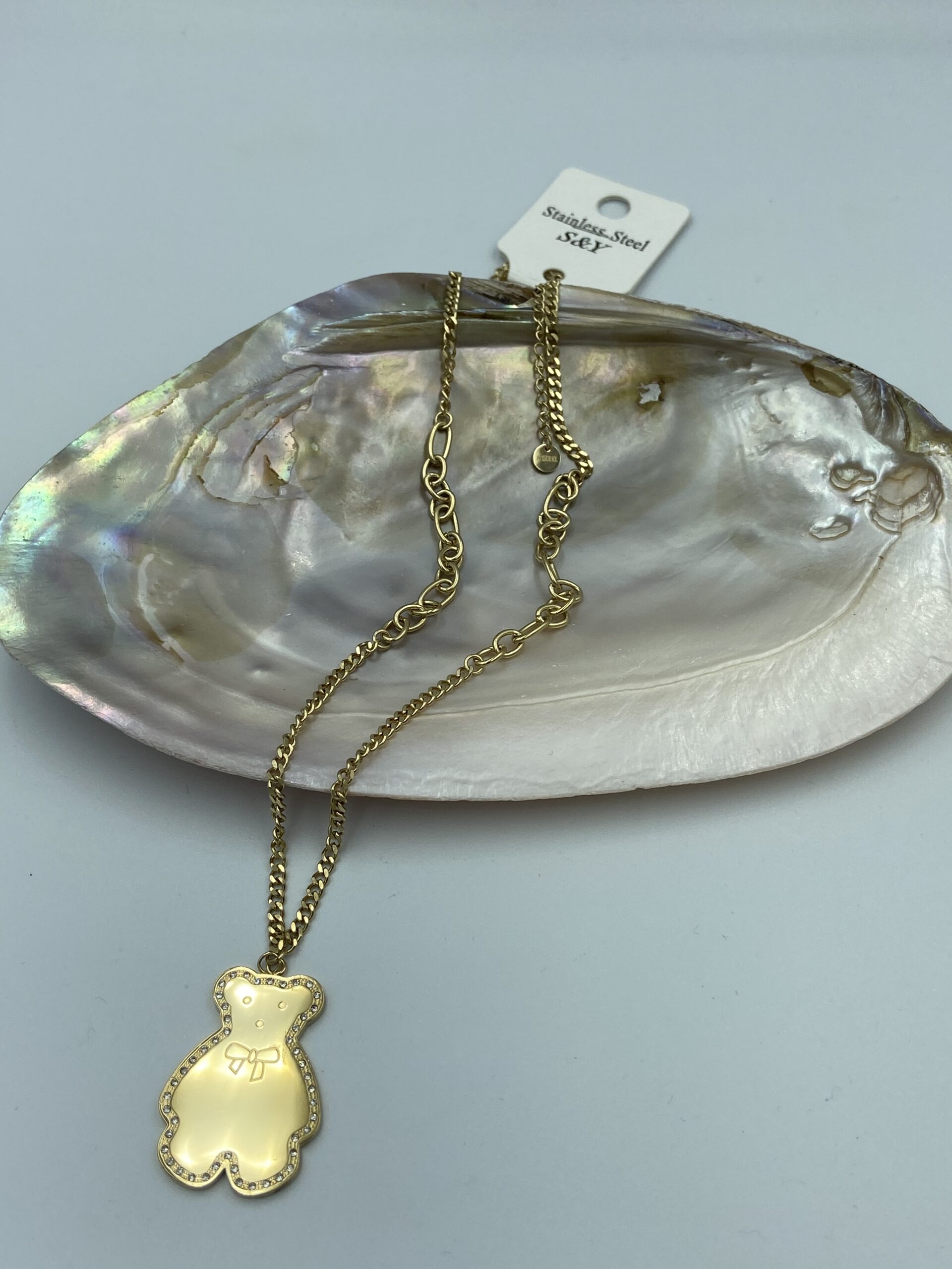 Naszyjnik celebrytka miś cyrkonie 316L