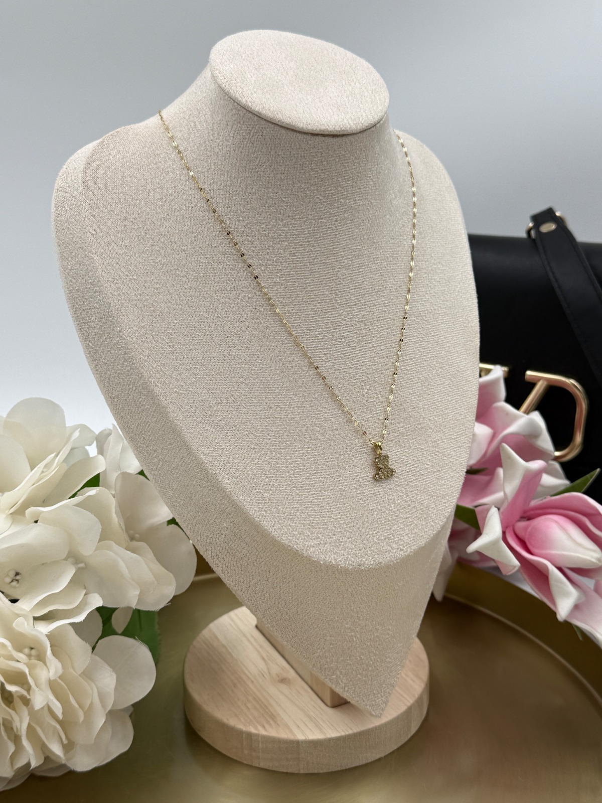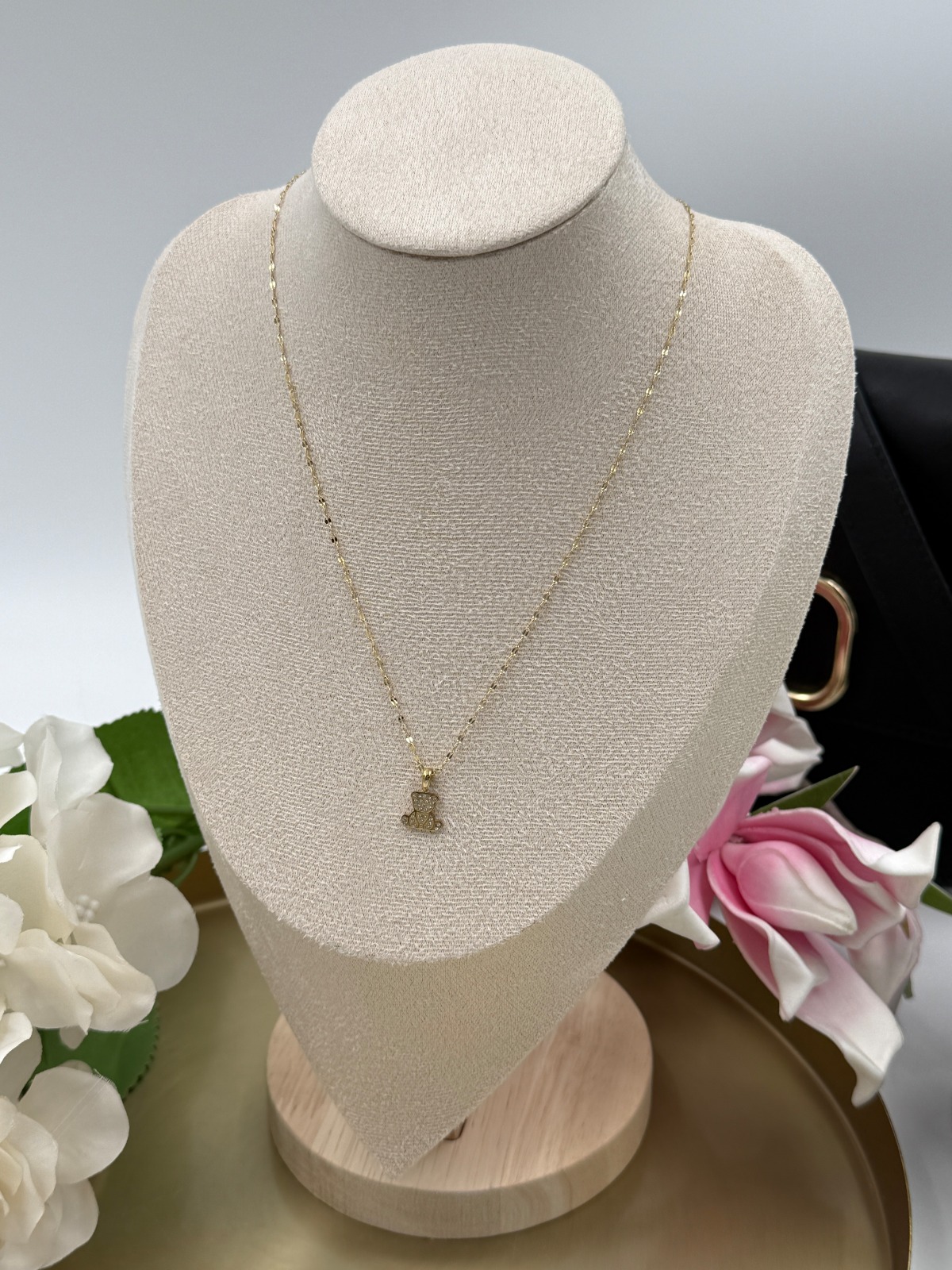 Celebrytka, delikatny naszyjnik -miś z cyrkoniami. Kolor złoty.