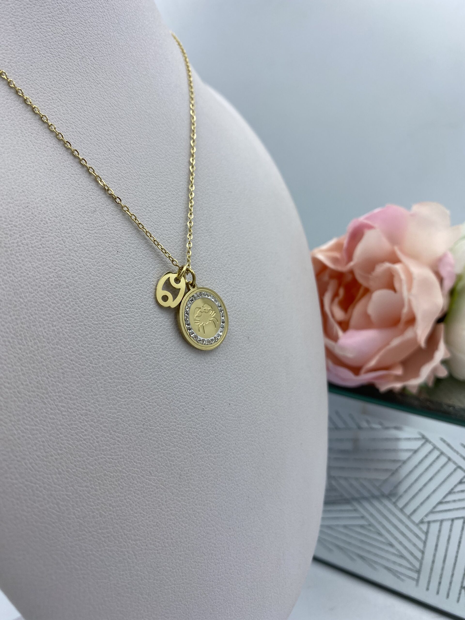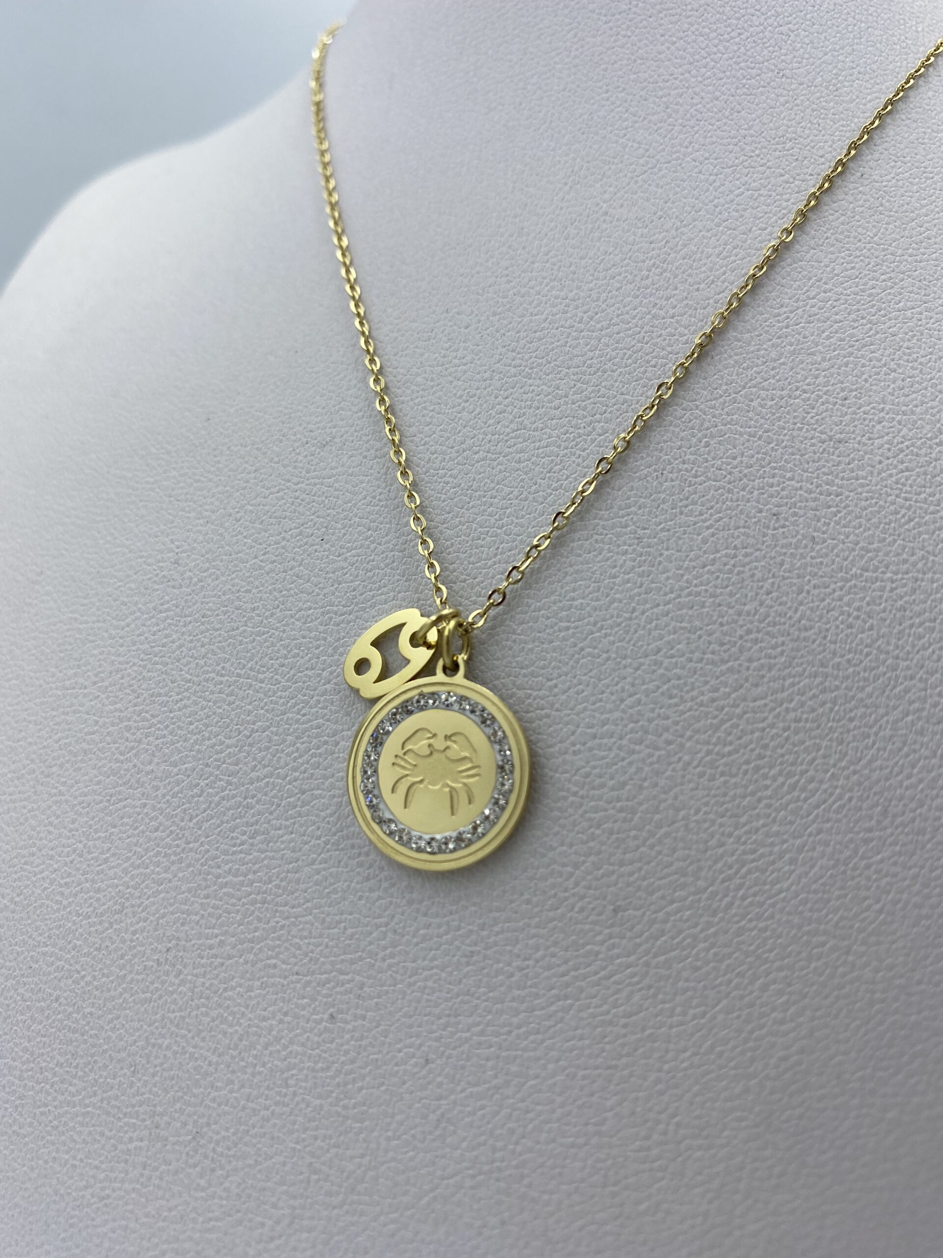 Naszyjnik celebrytka ZODIAK Rak złoty cyrkonie stal 316L