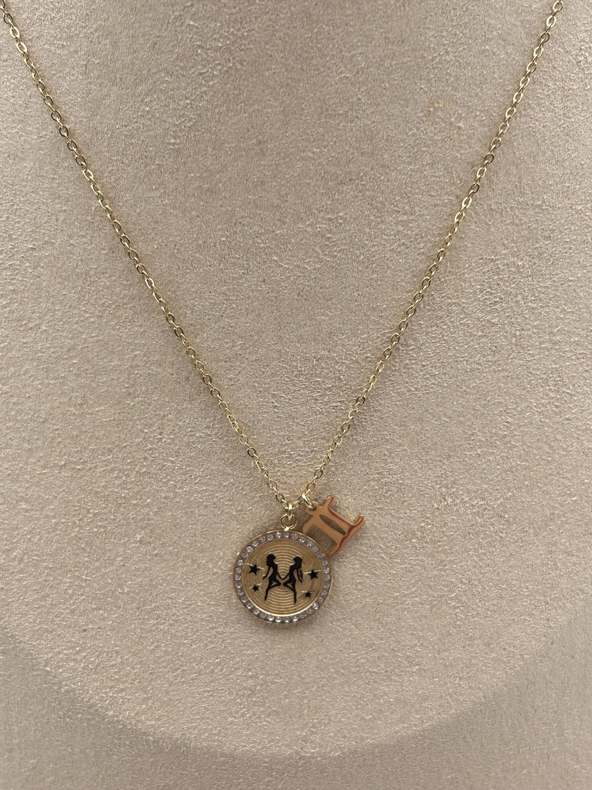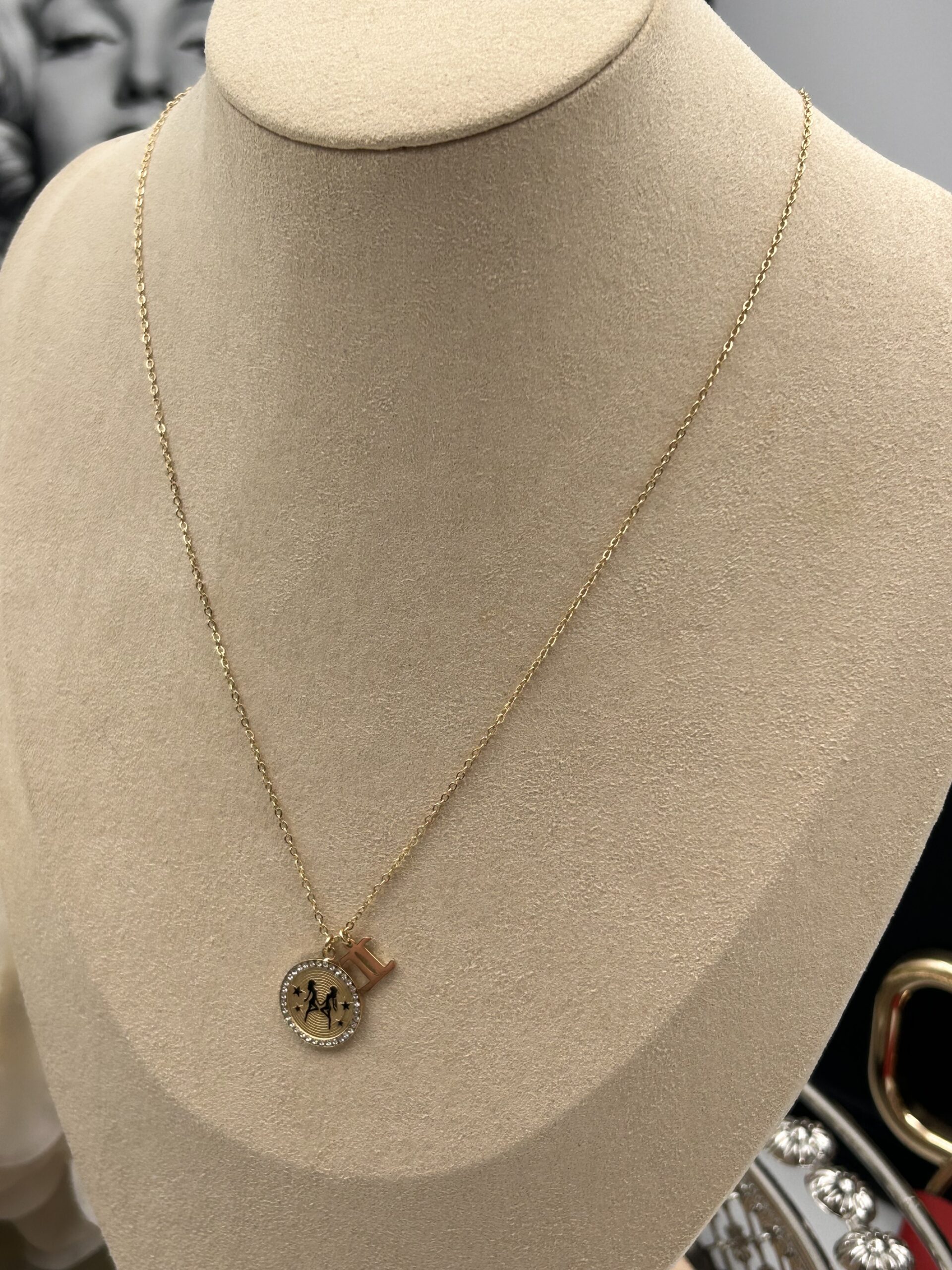 Naszyjnik celebrytka ZODIAK Bliźnięta złoty cyrkonie stal 316L