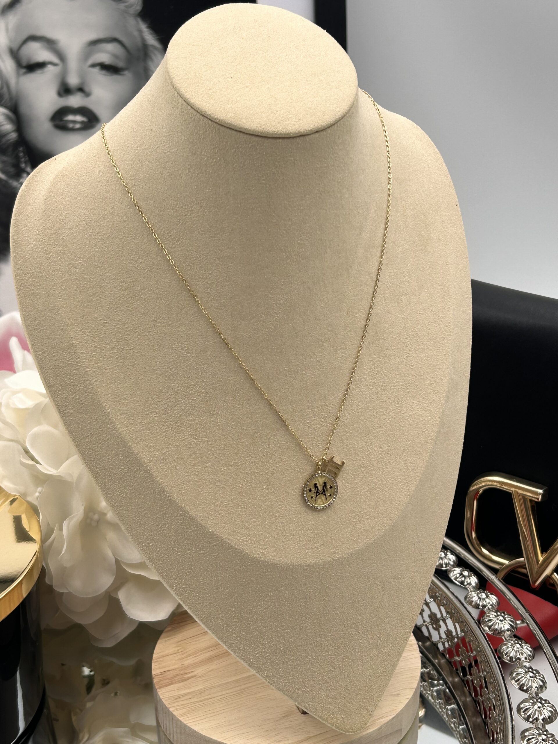 Celebrytka ze znakiem zodiaku w kolorze czarnym – bliźnięta. Kolor złoty z cyrkoniami dookoła.