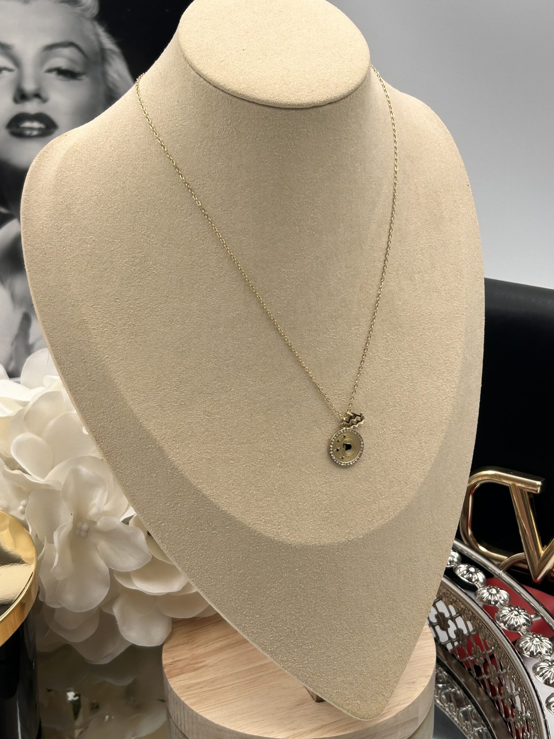 Celebrytka ze znakiem zodiaku w kolorze czarnym – wodnik. Kolor złoty z cyrkoniami dookoła.