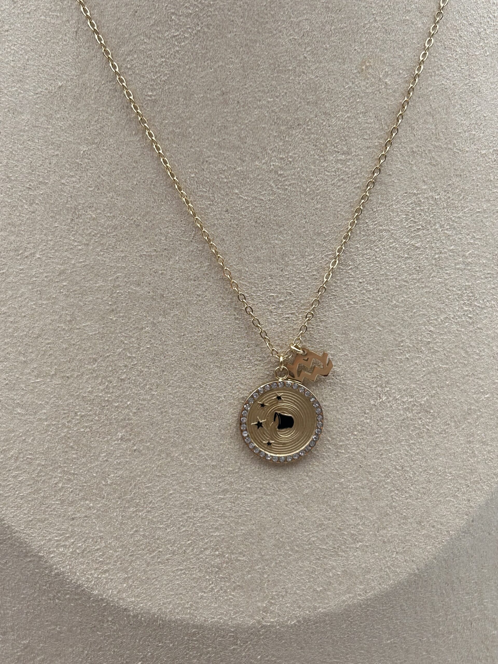 Naszyjnik celebrytka ZODIAK Wodnik złoty cyrkonie stal 316L