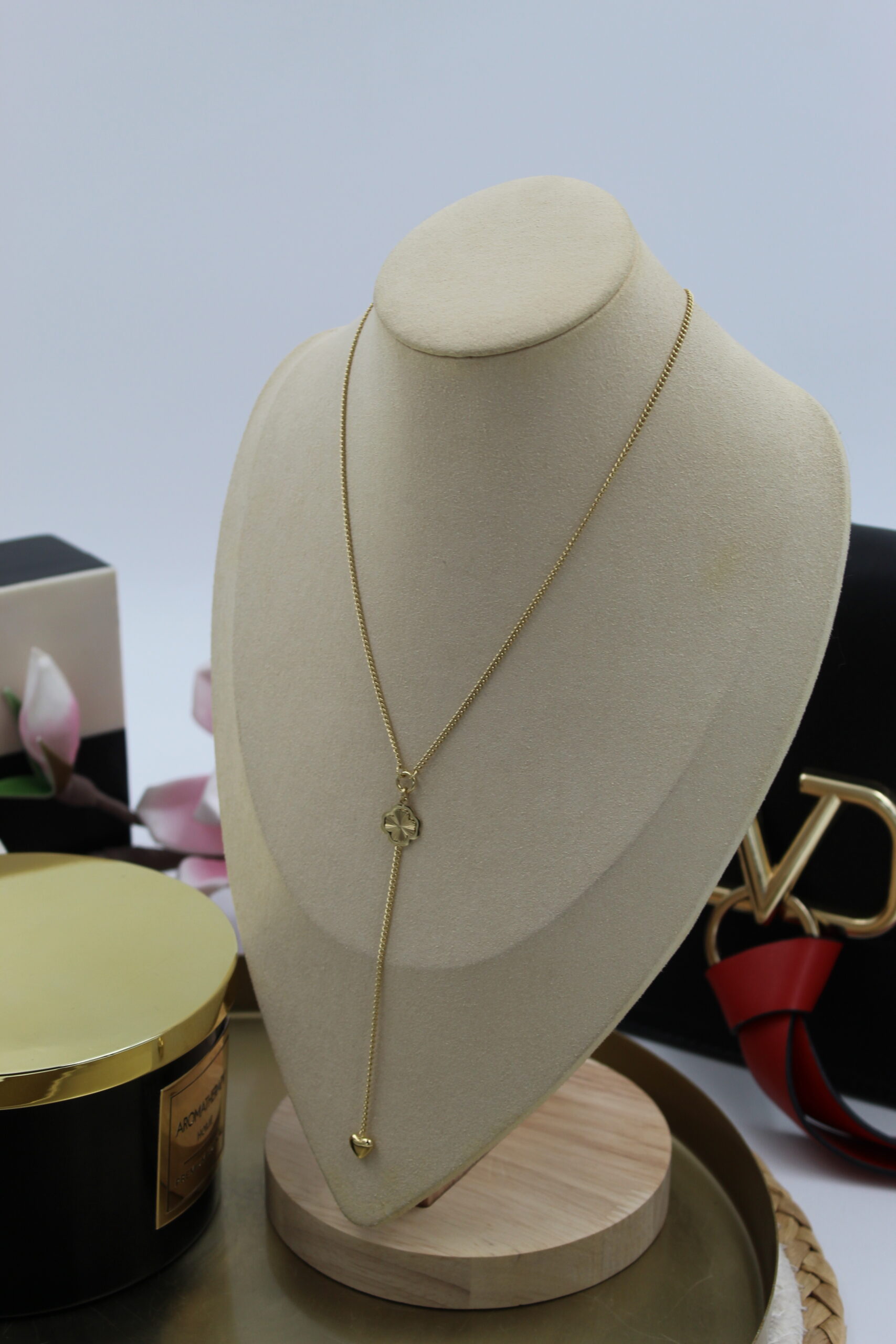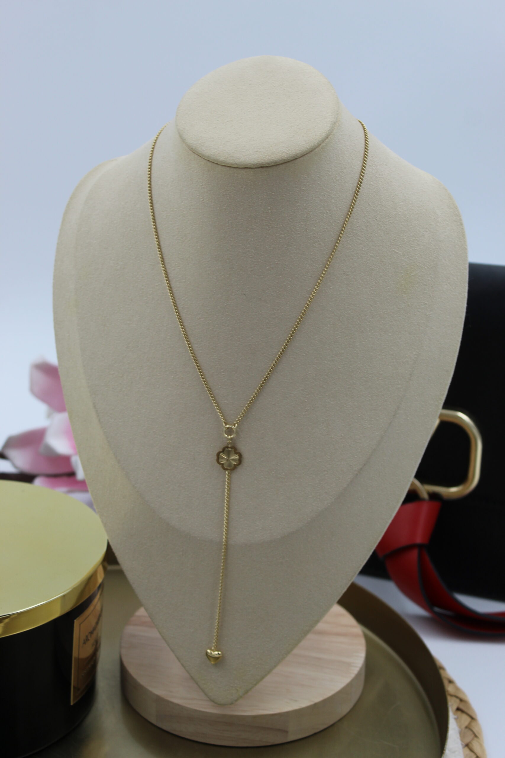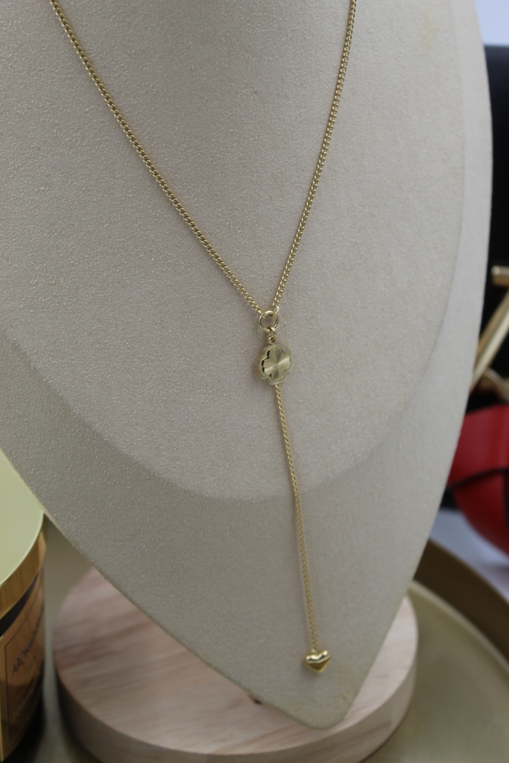 Piękny łańcuszek typu drobna pancerka, z koniczynką i sercem kolor złoty.