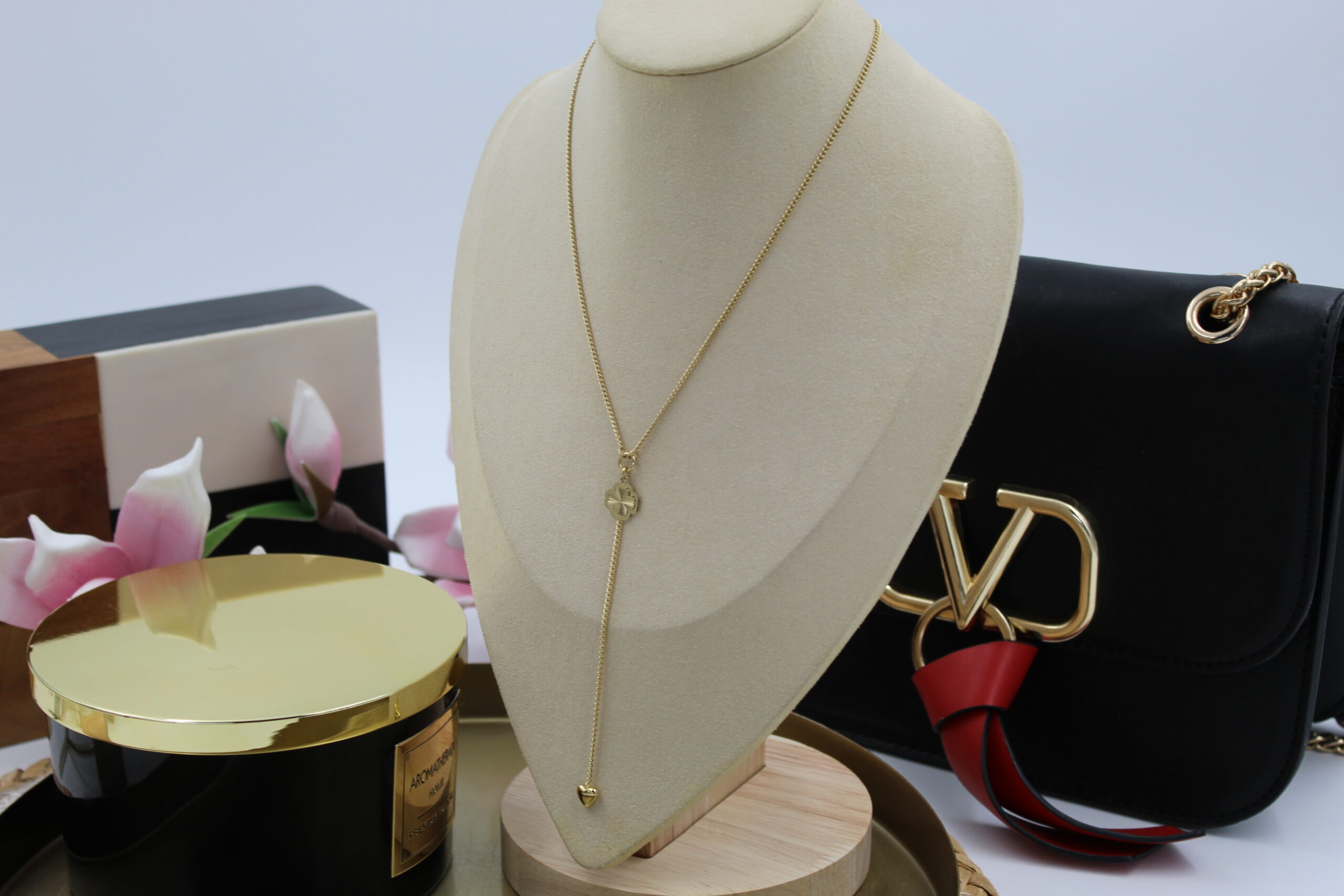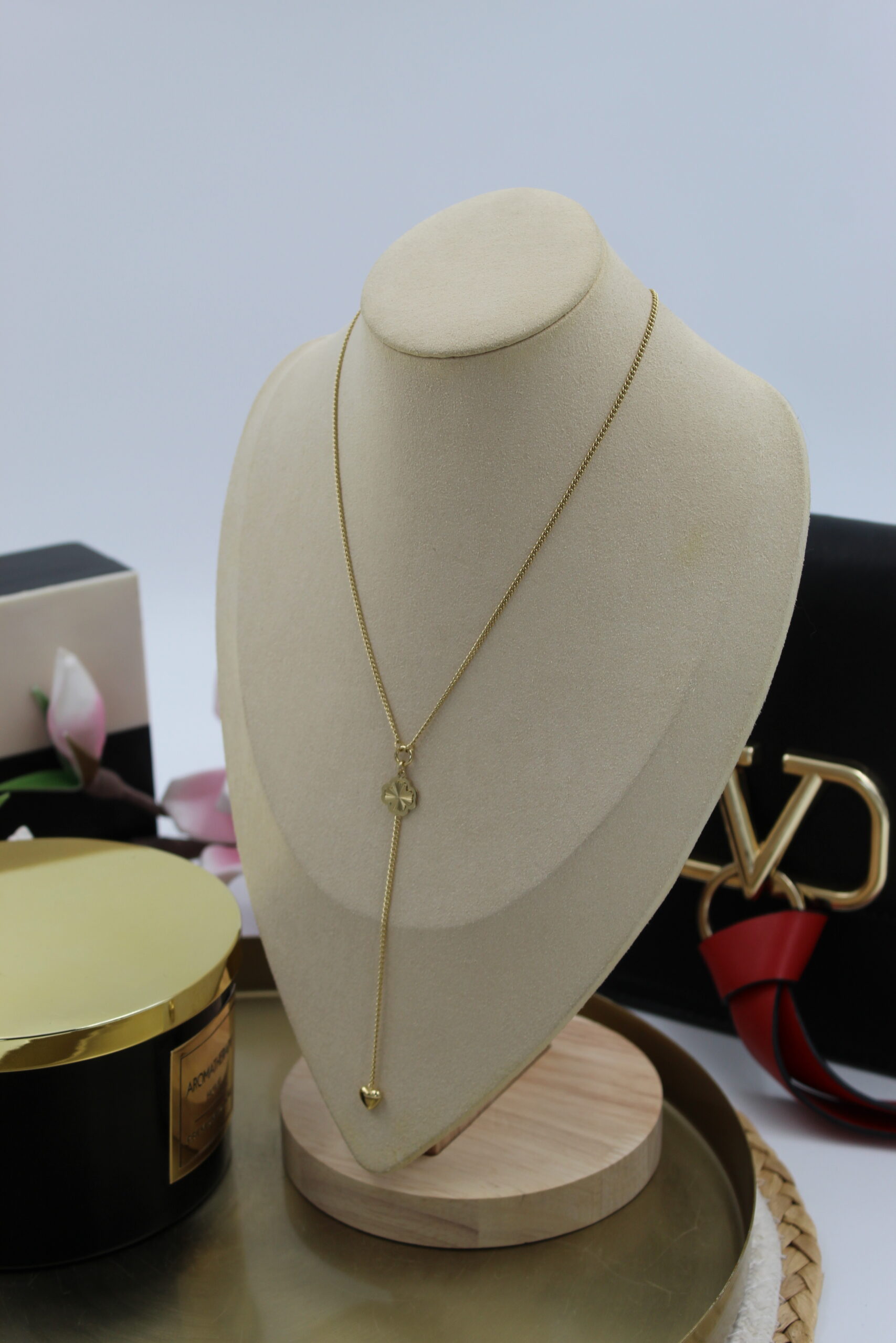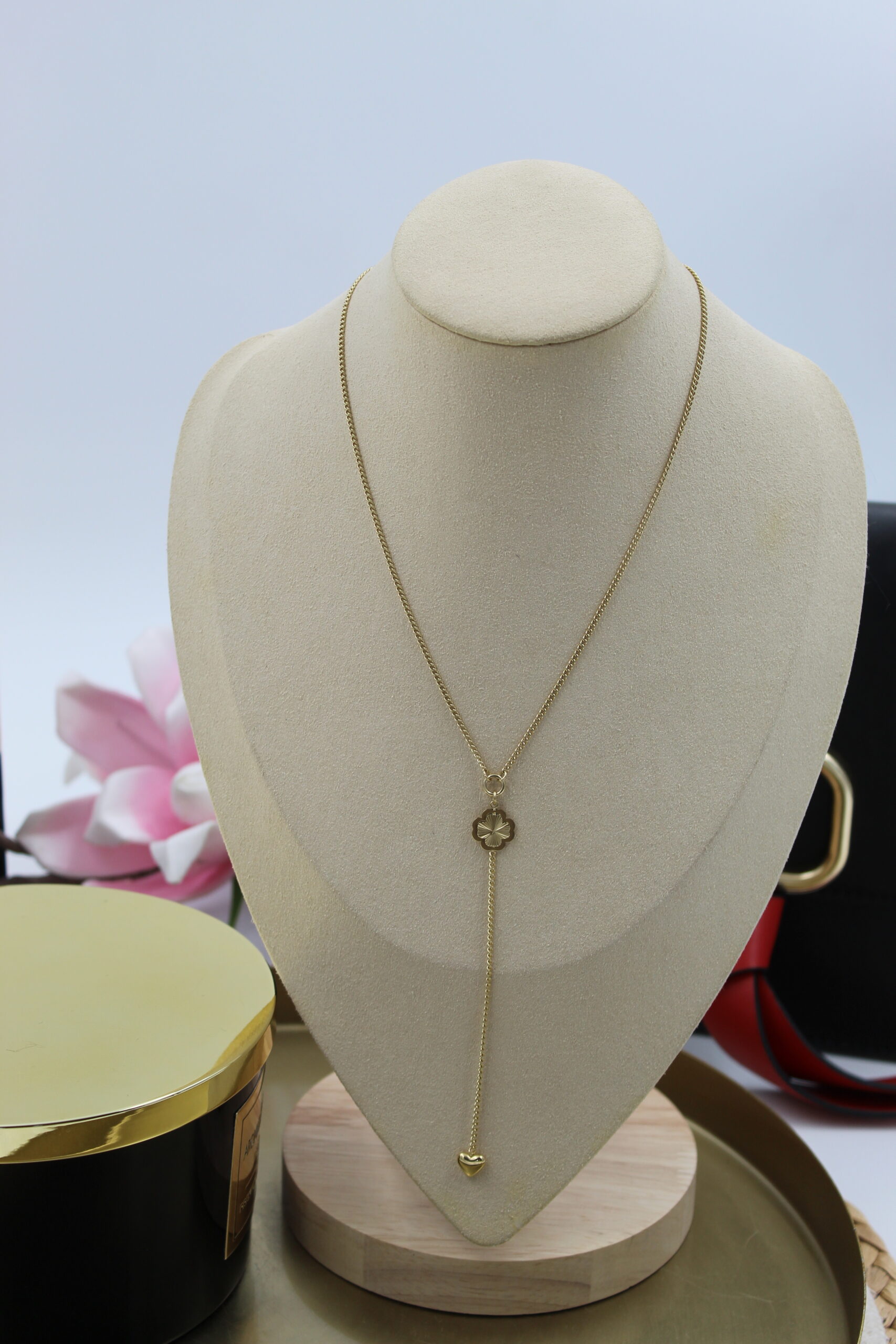 Piękny łańcuszek typu drobna pancerka, z koniczynką i sercem kolor złoty.