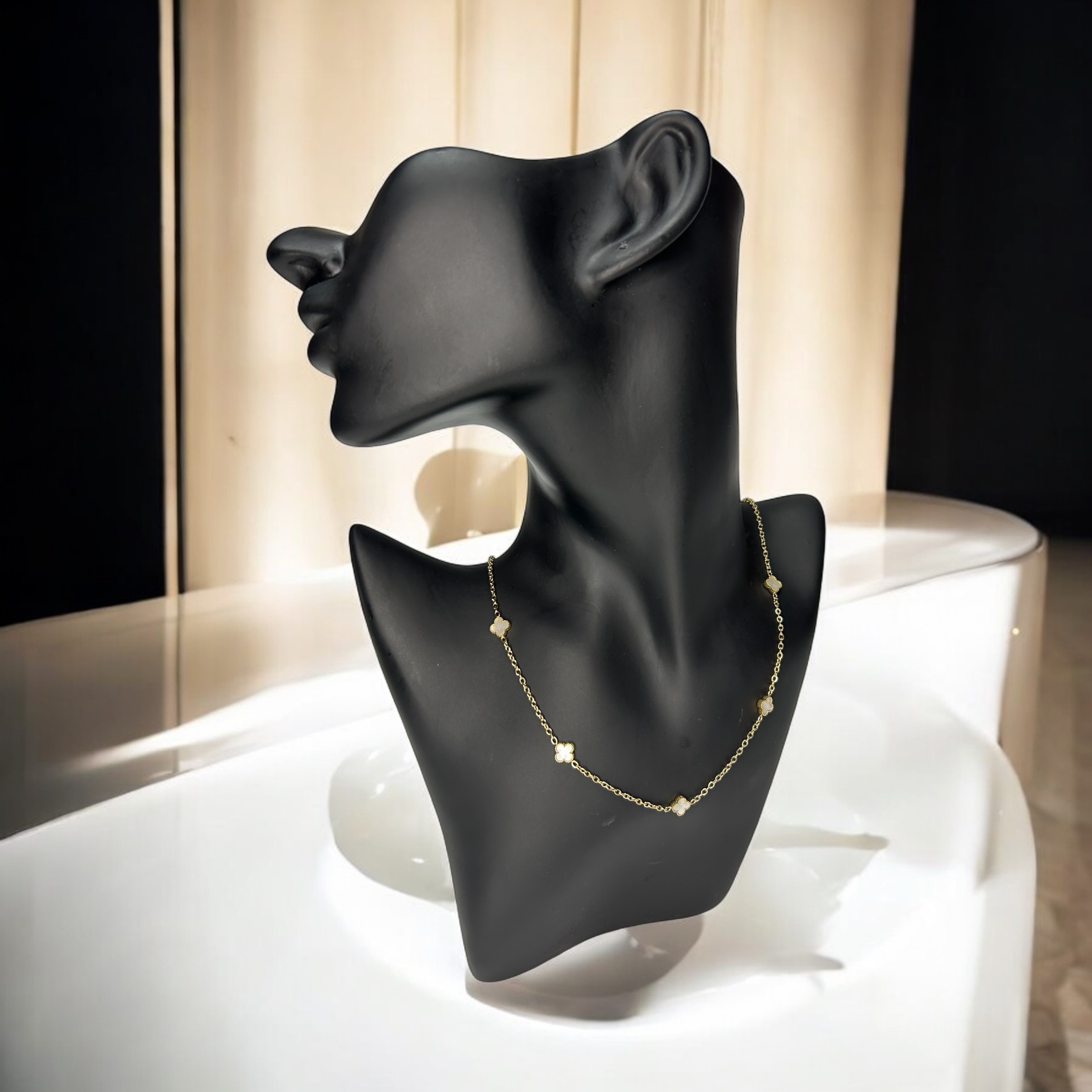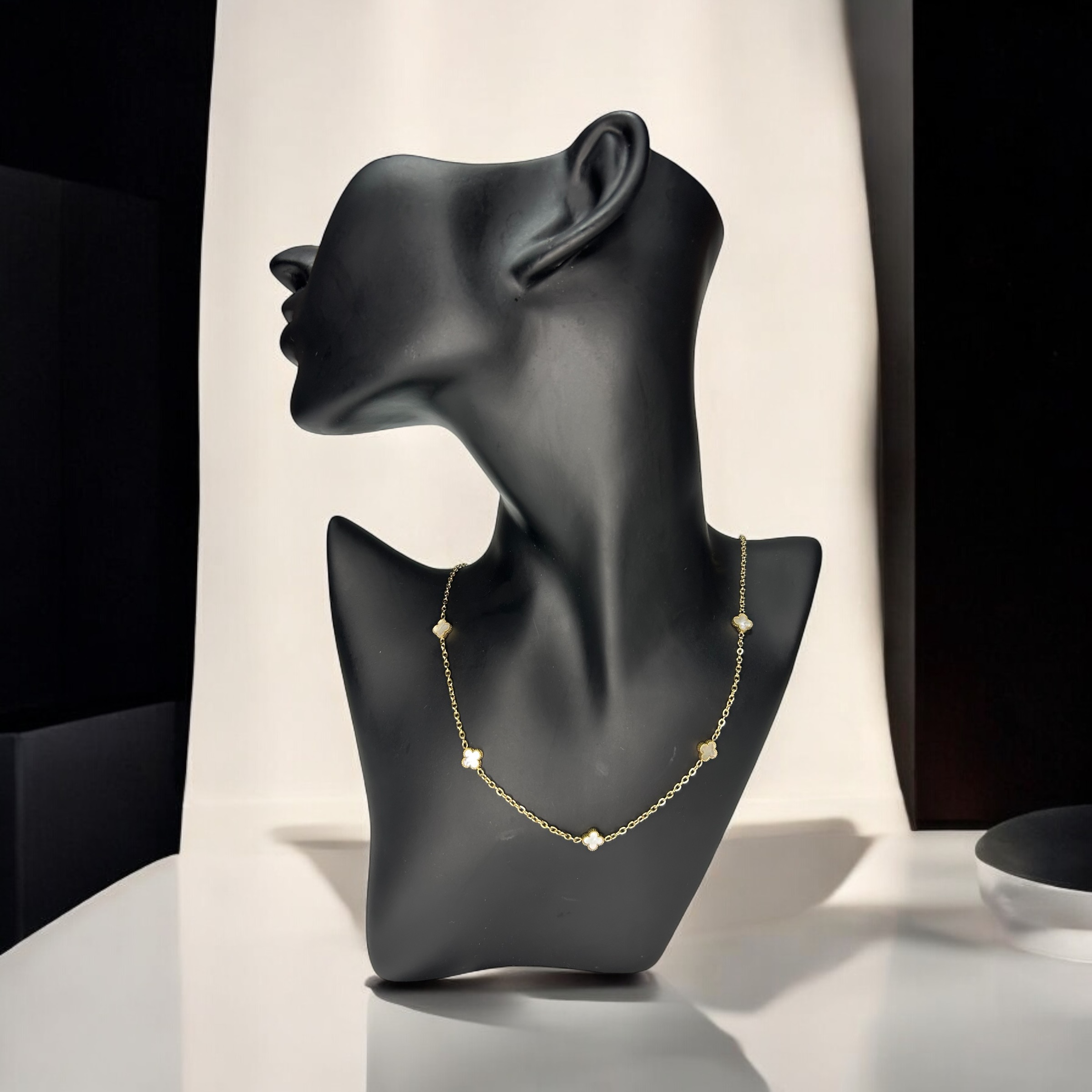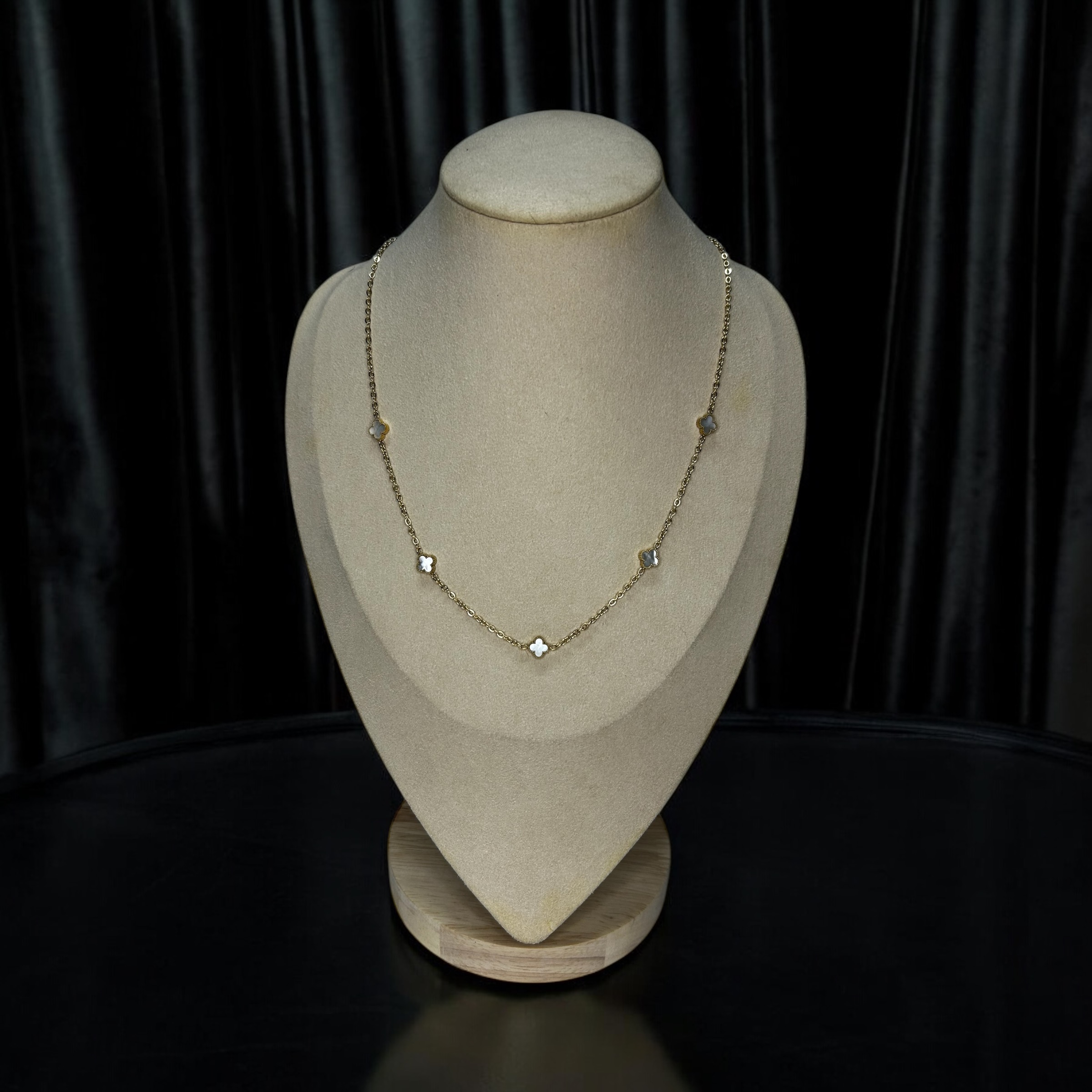 Piękny klasyczny łańcuszek z koniczynkami z masą perłową, kolor złoty.