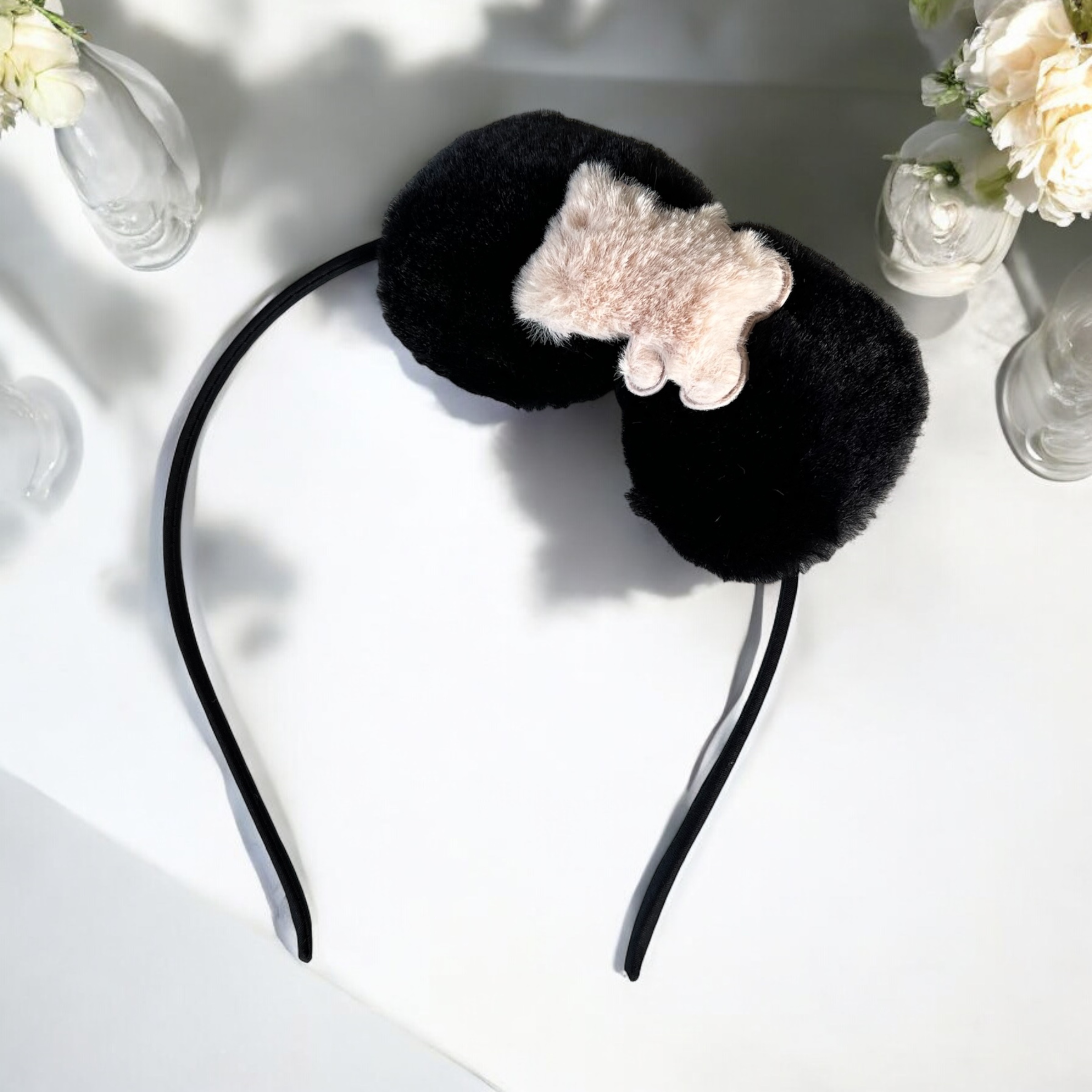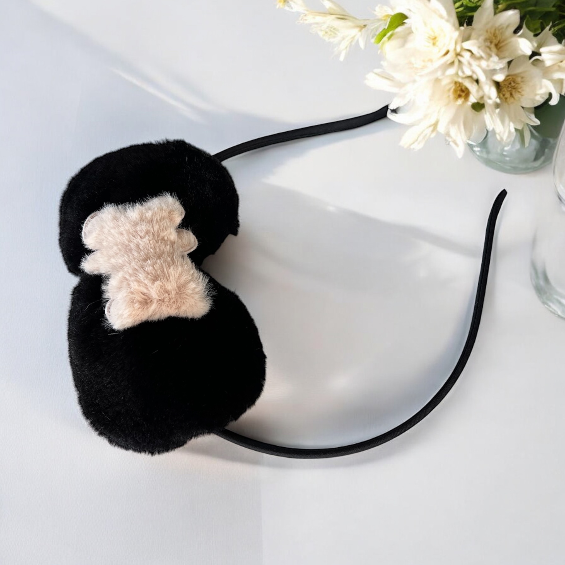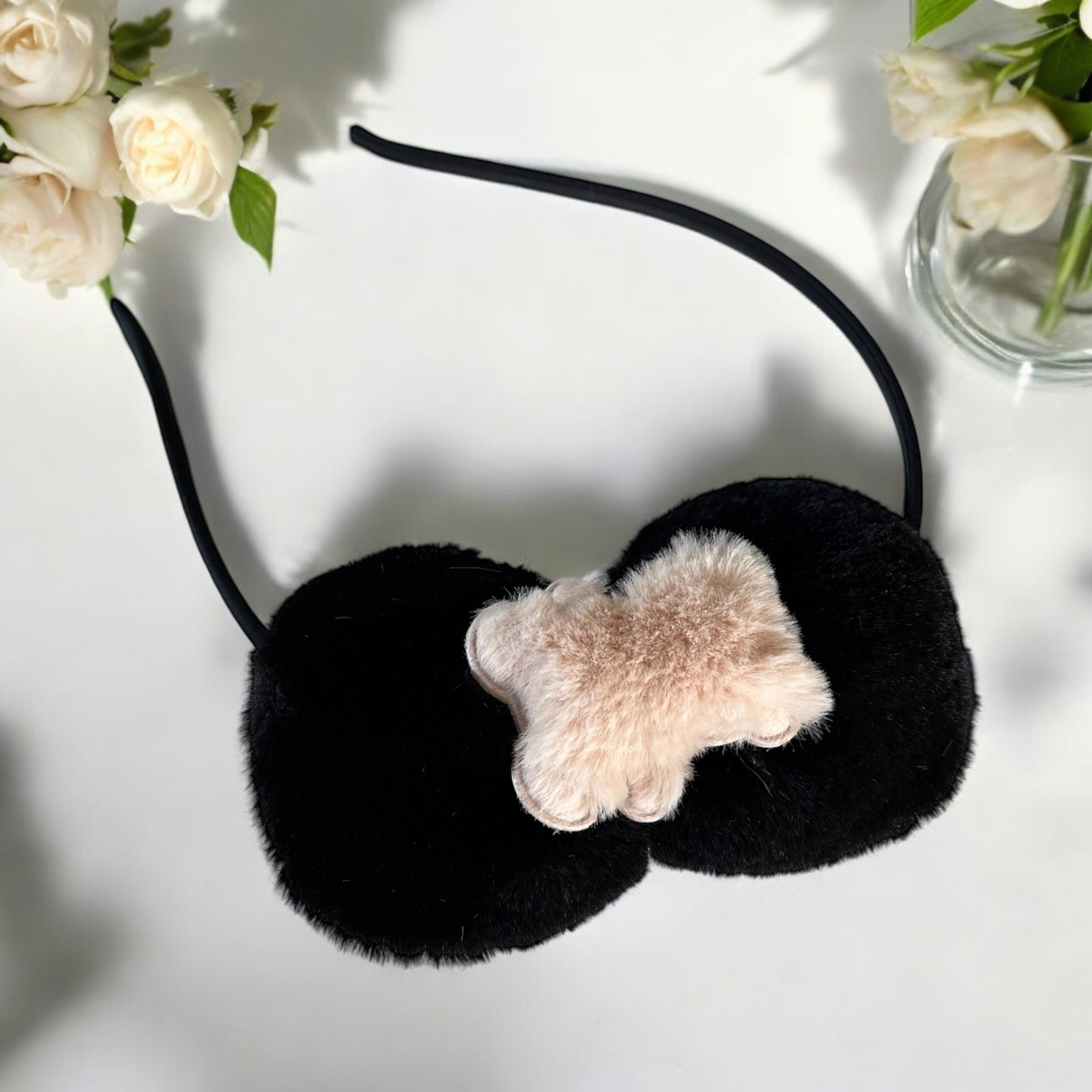 Opaska do włosów dziecięca dla dziewczynki czarna kokardka miś misiek