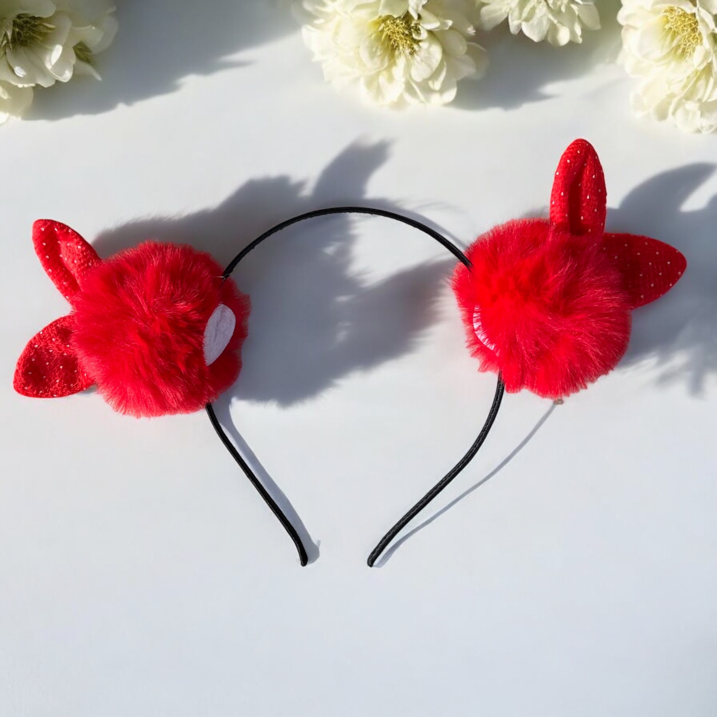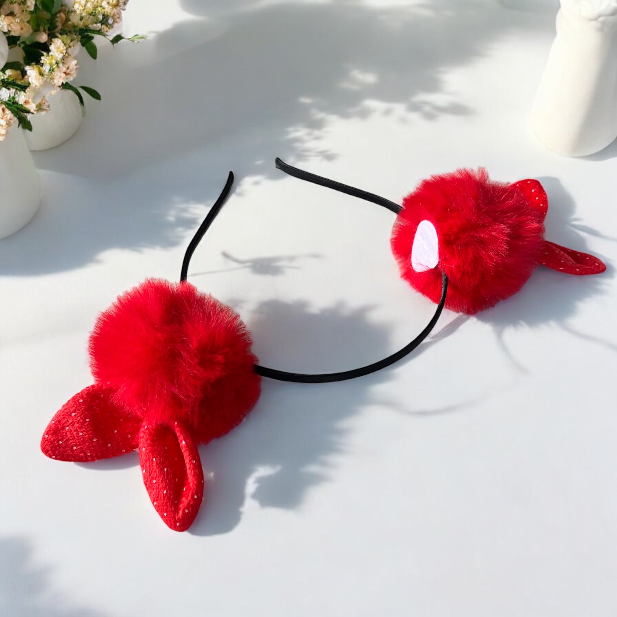 Opaska do włosów dziecięca dla dziewczynki czerwone pompony uszy królik