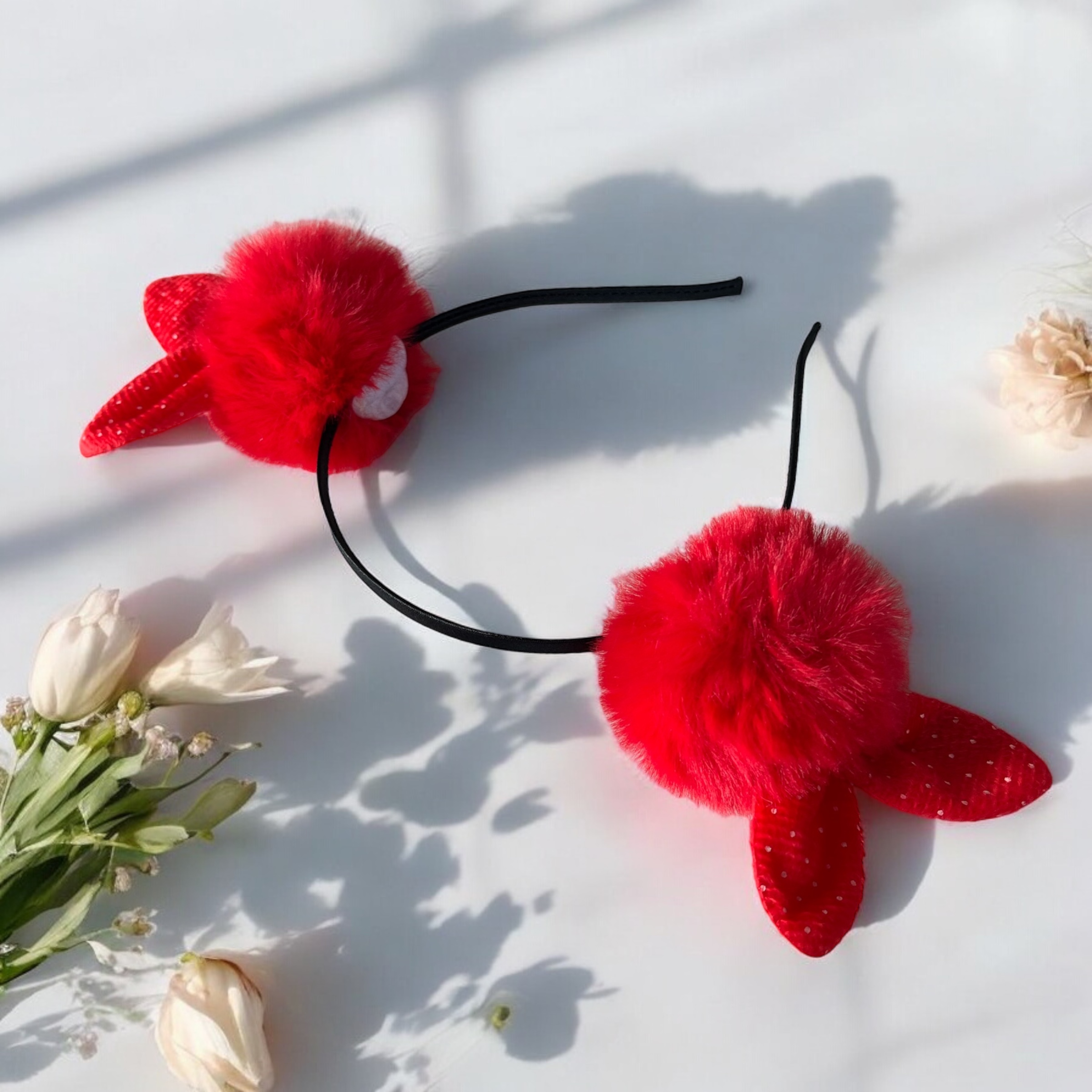 Opaska w kolorze czarnym, pompony w kolorze czerwonym.