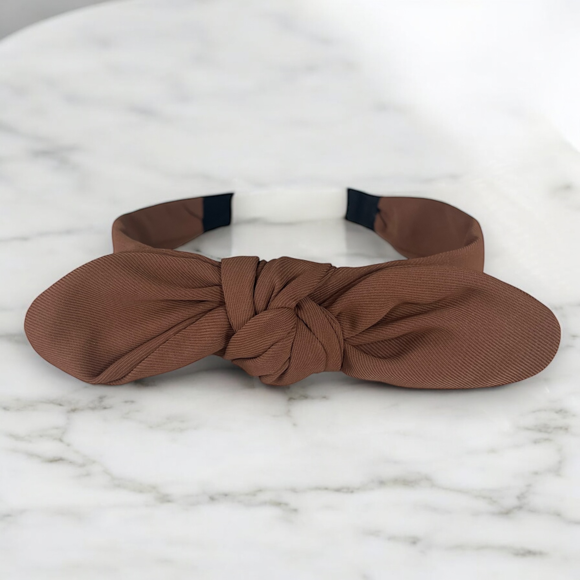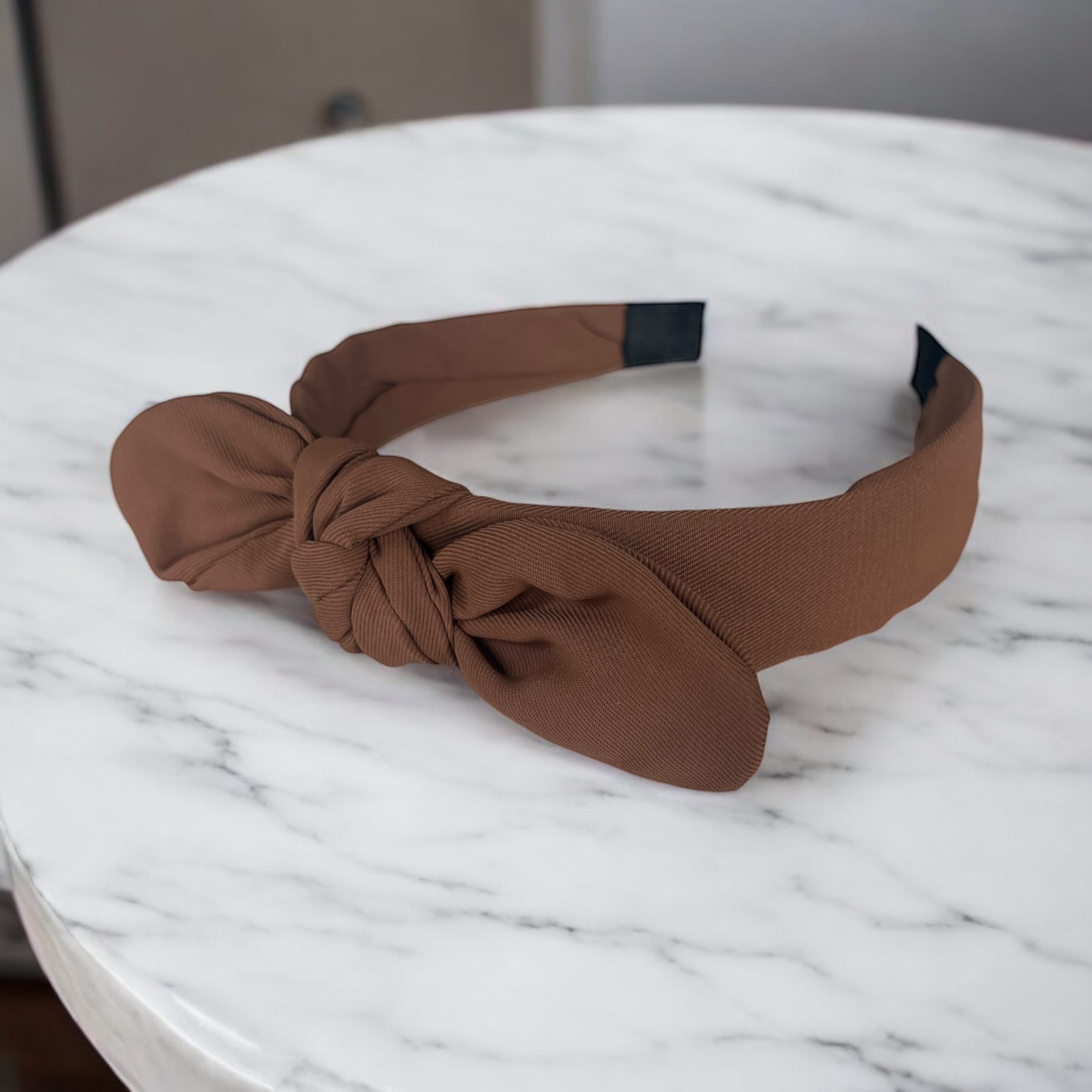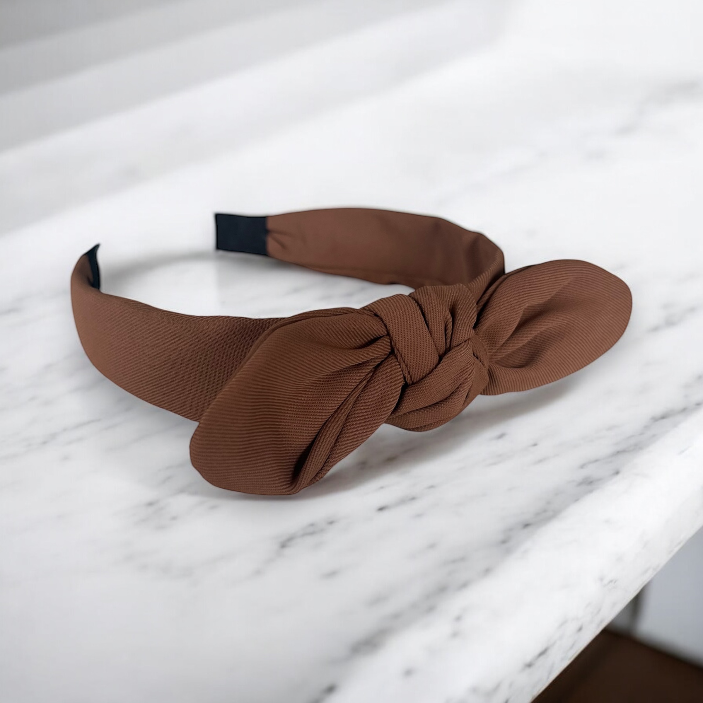 Opaska do włosów KOKARDKA węzeł brązowa klasyczna materiałowa