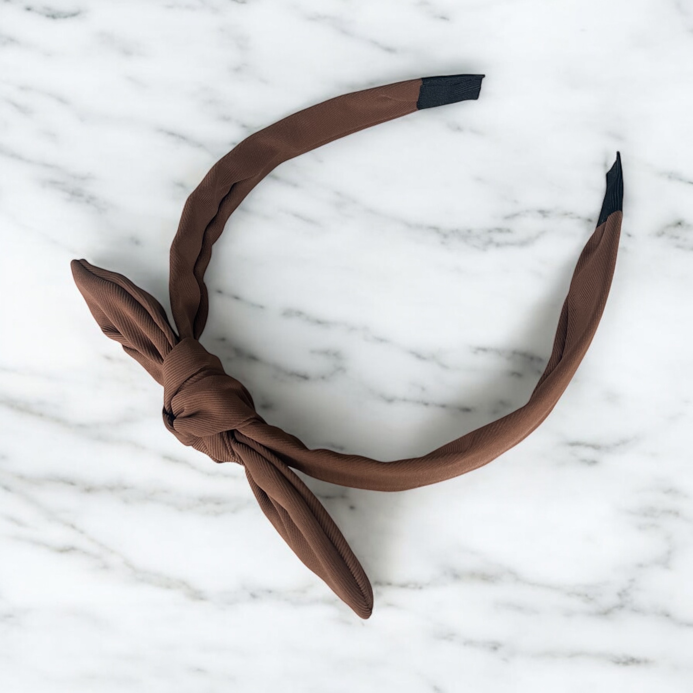 Klasyczna paska do włosów z kokardką w kolorze brązowym.