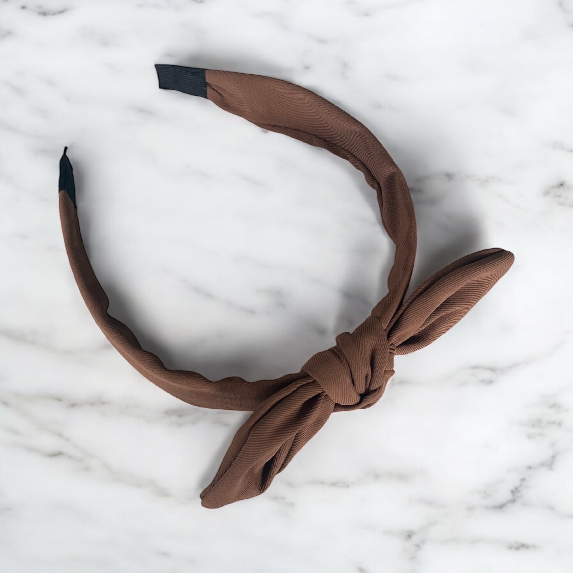 Opaska materiałowa w kolorze brązowym.