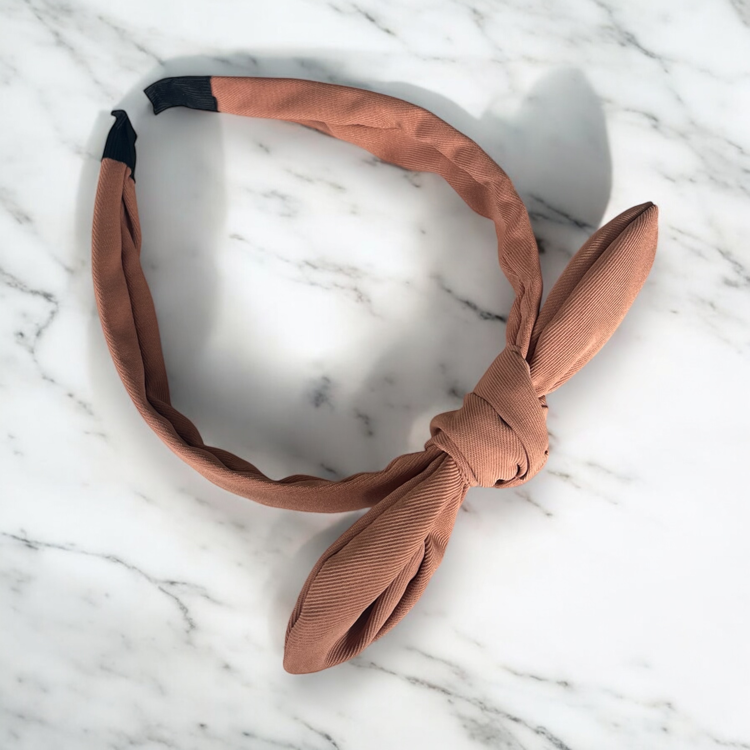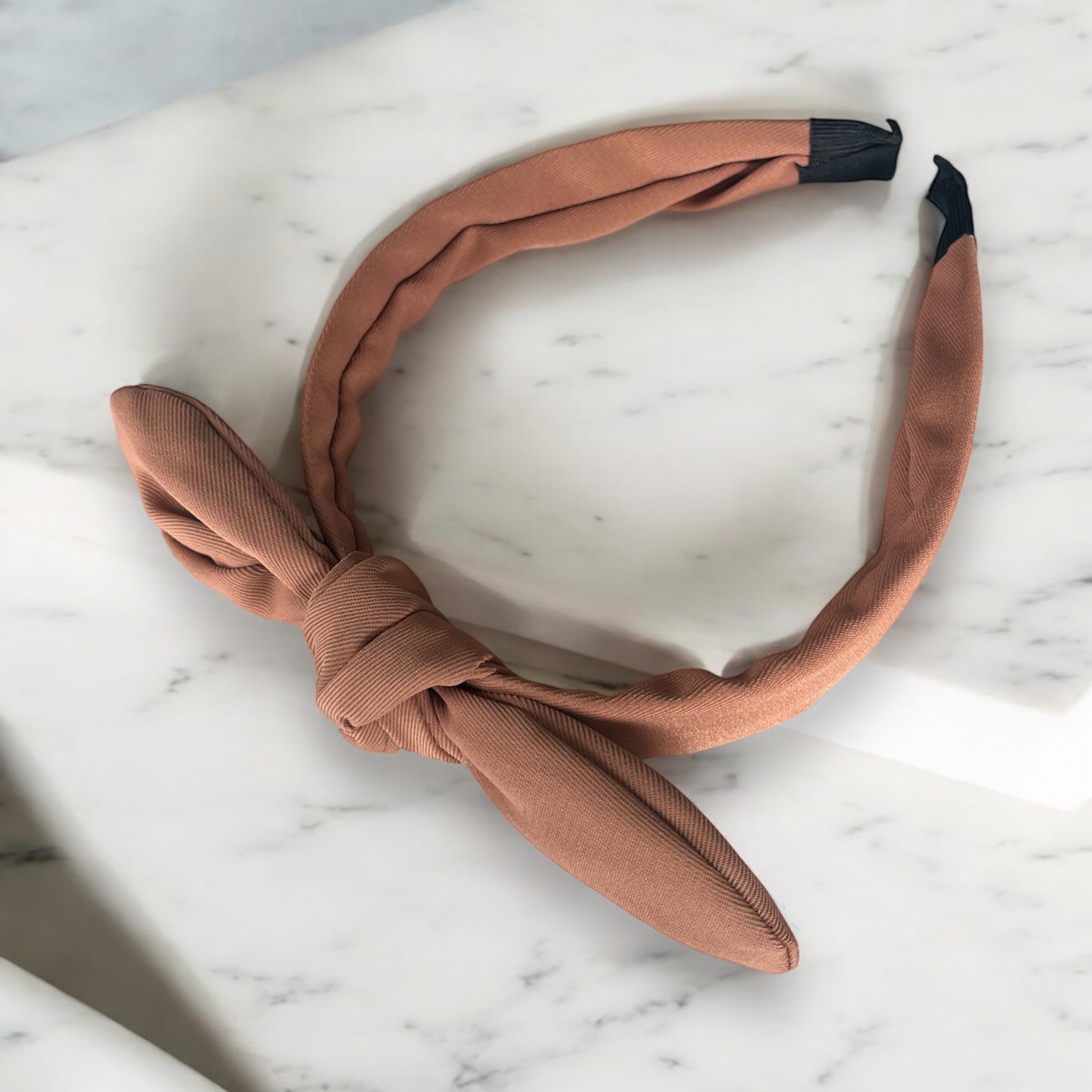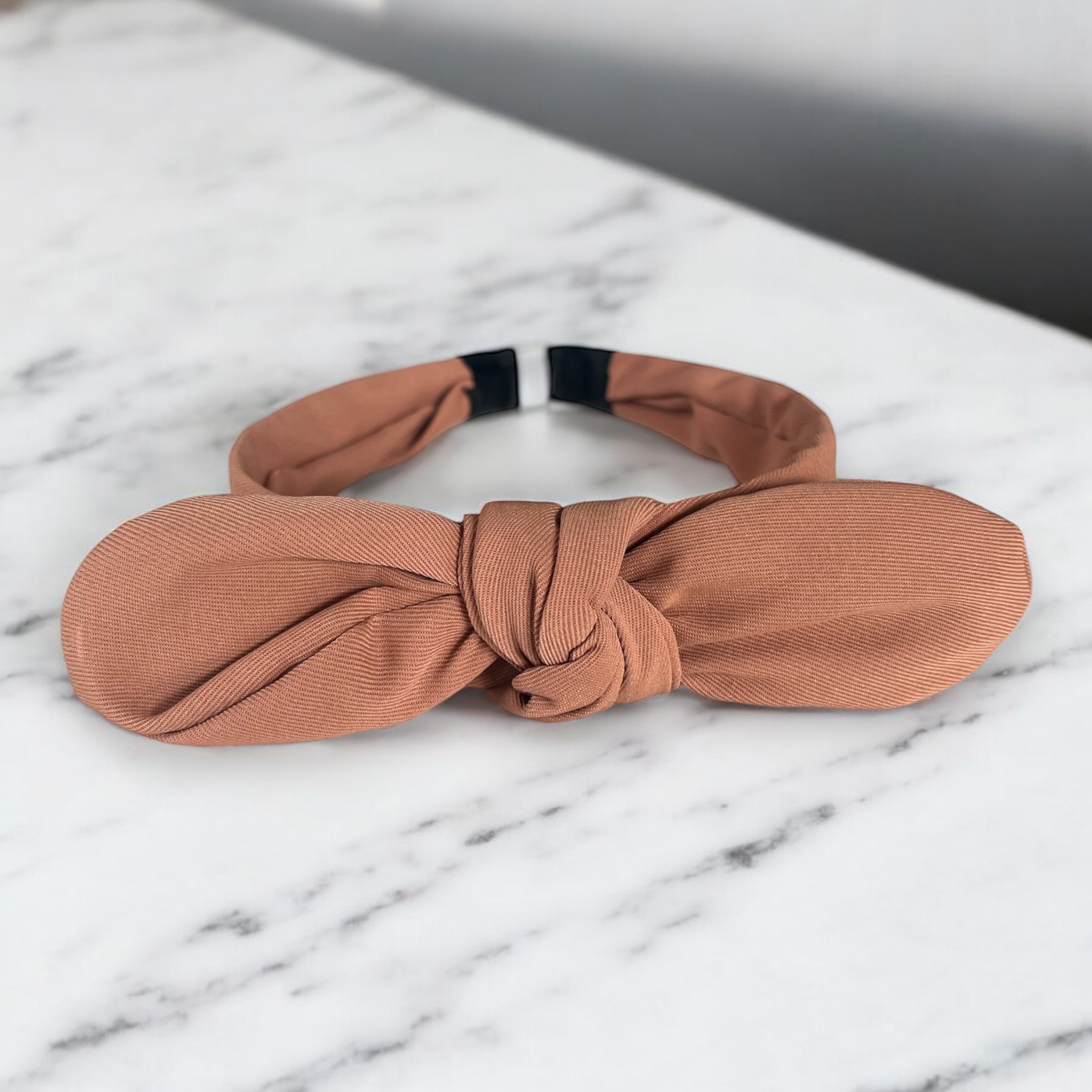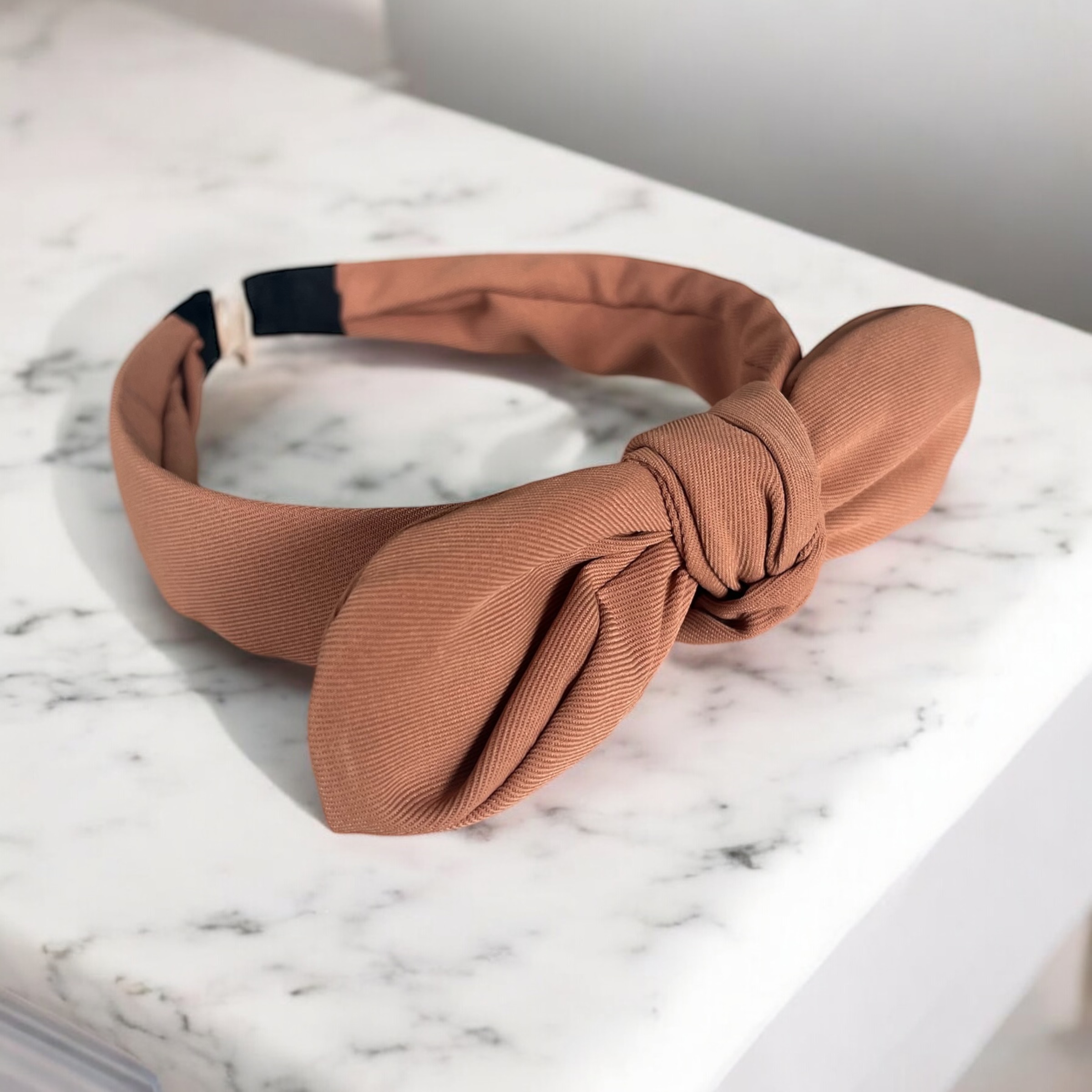 Klasyczna paska do włosów z kokardką w kolorze jasnym brązowym.