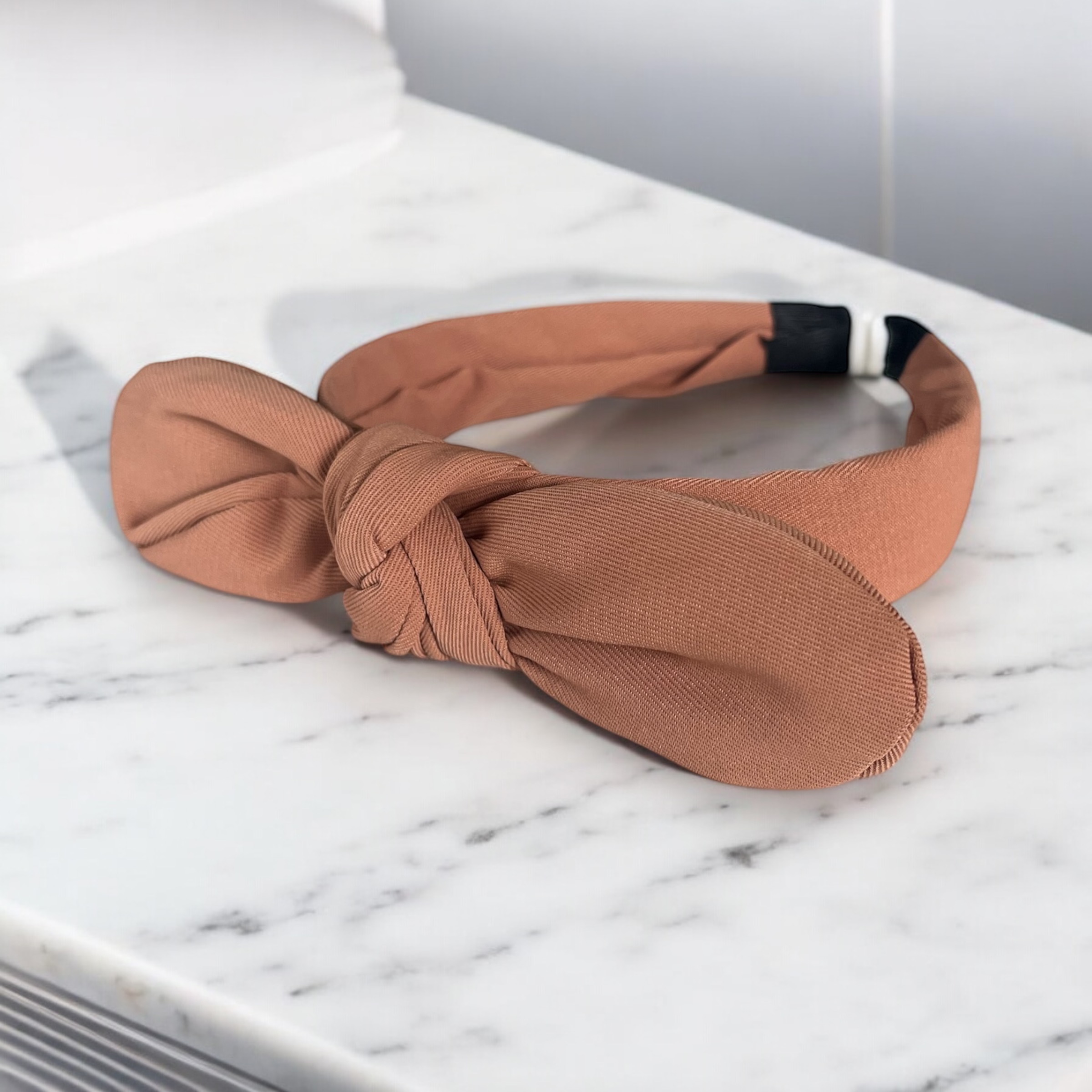 Opaska do włosów KOKARDKA węzeł jasna brązowa klasyczna materiałowa