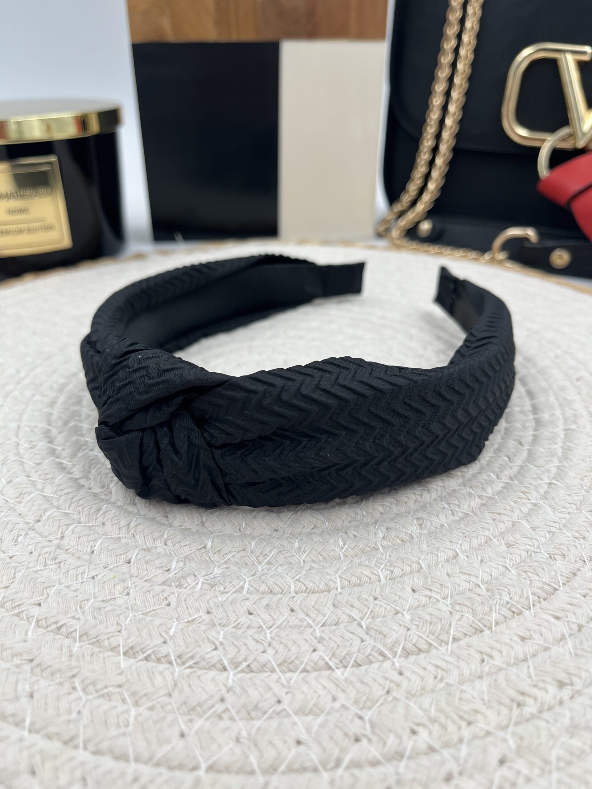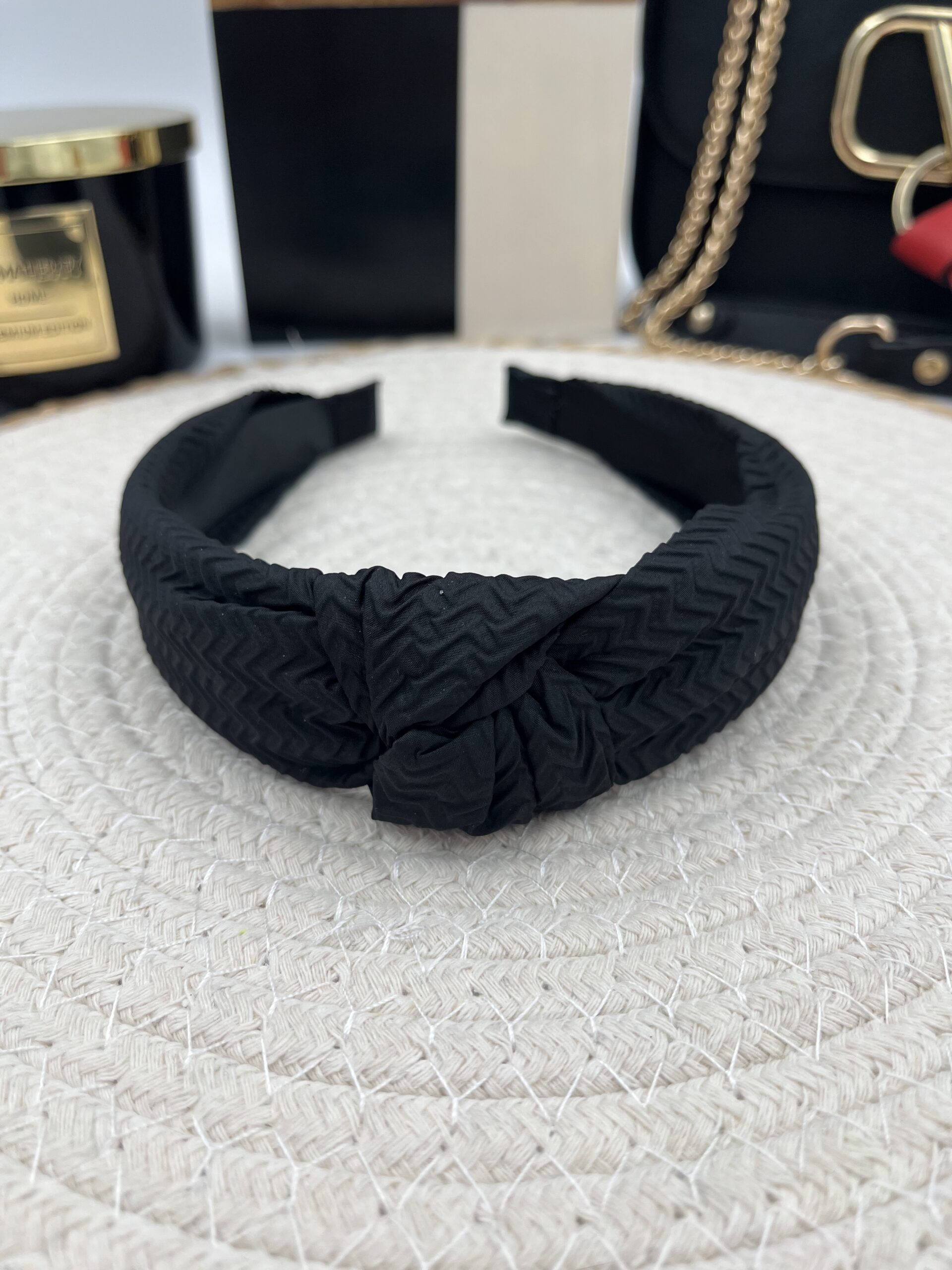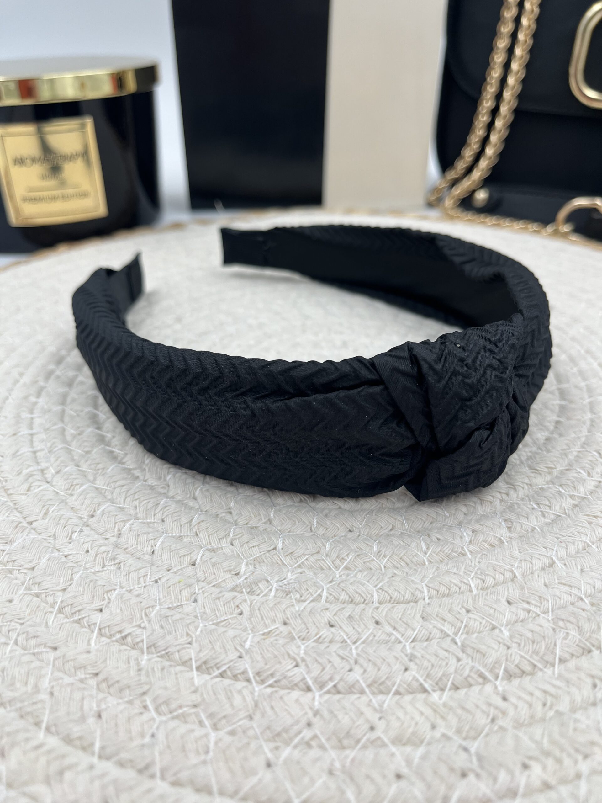 Opaska do włosów materiał supeł CZARNA sweterek