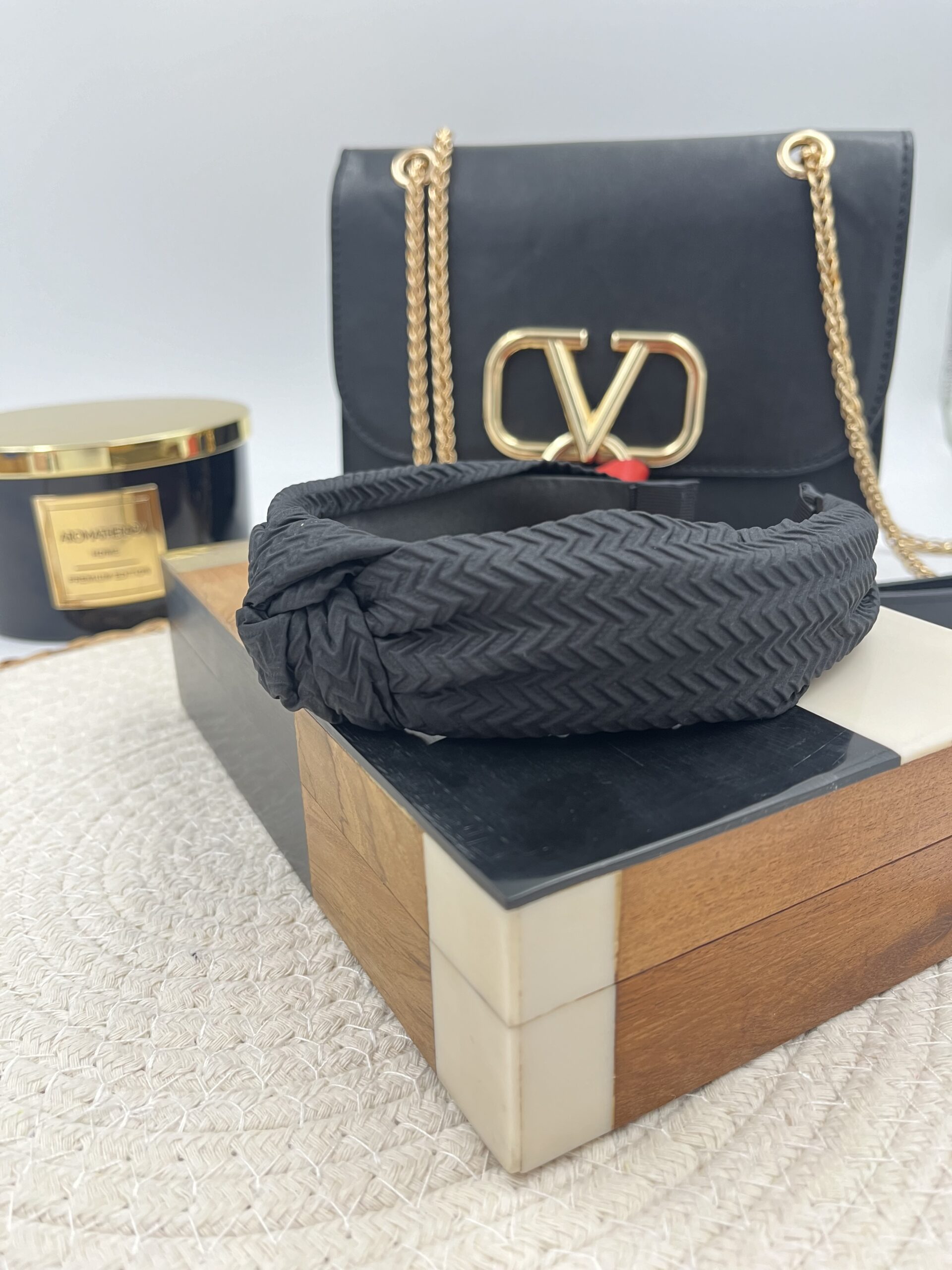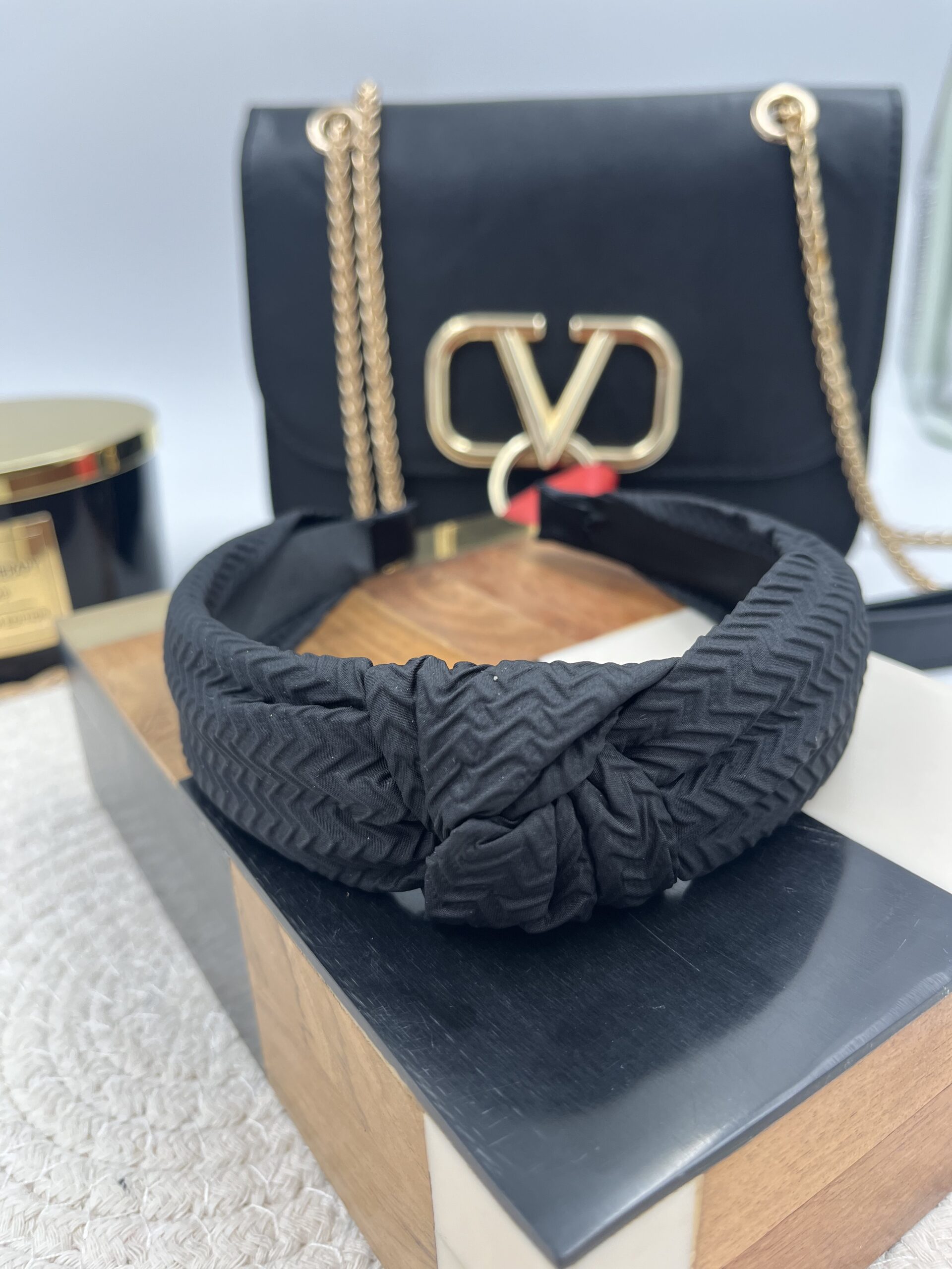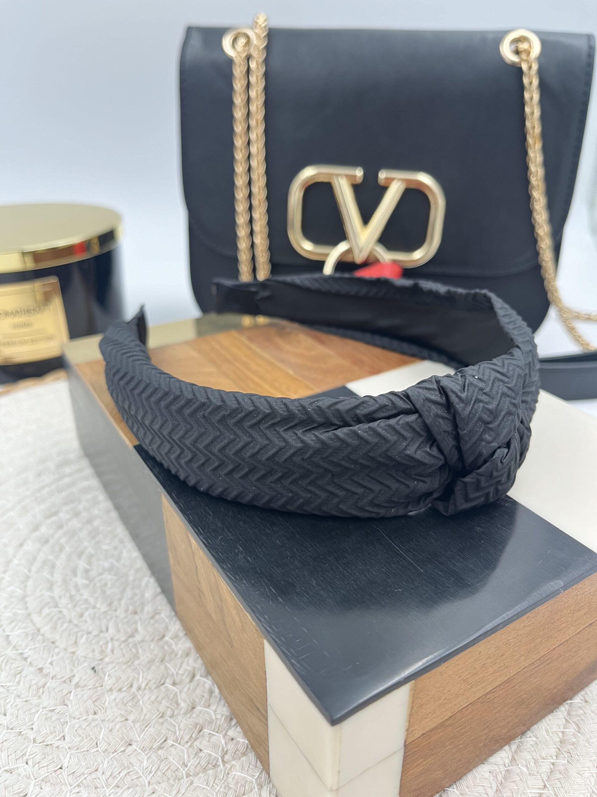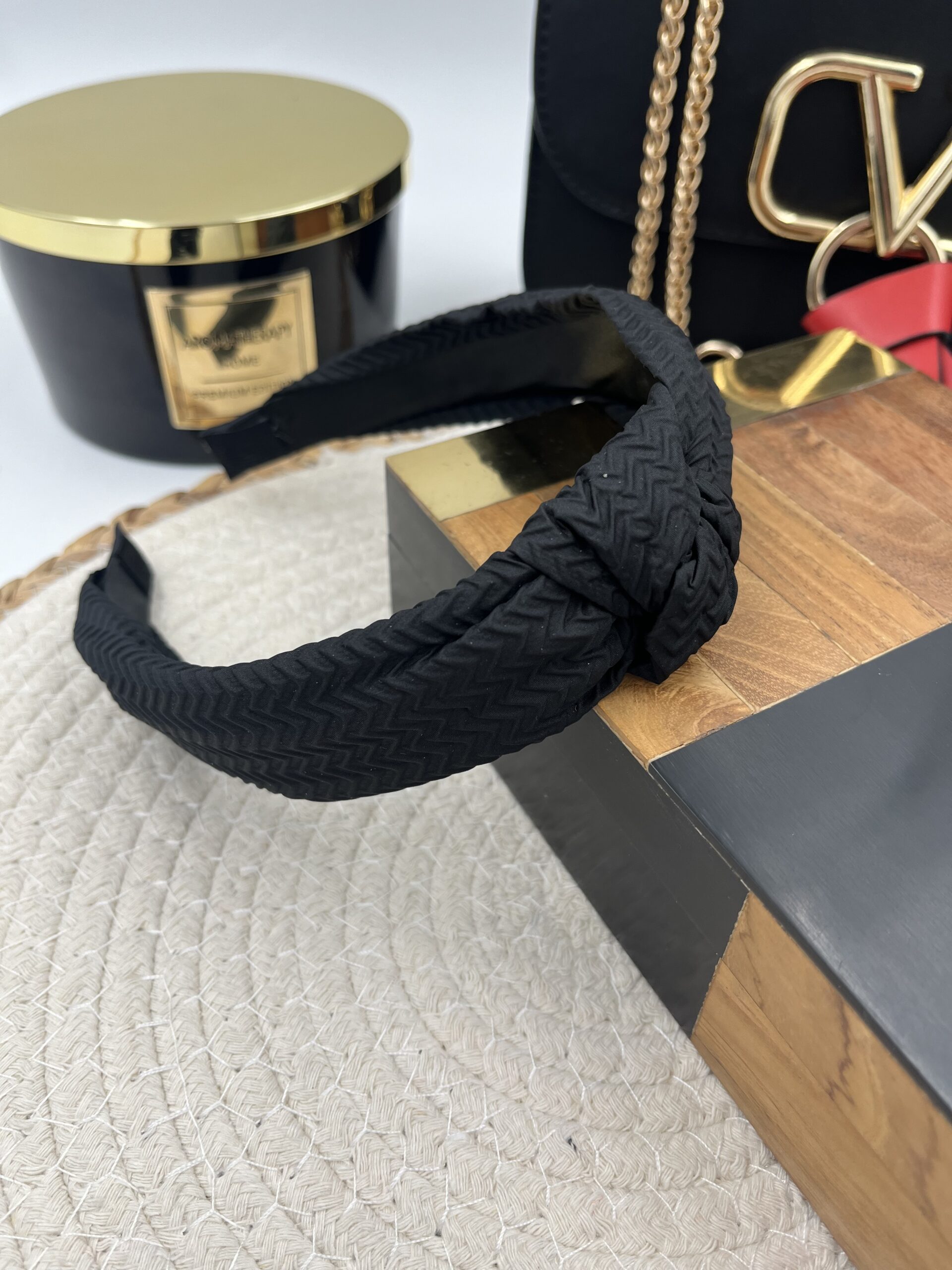 Opaska do włosów materiał supeł CZARNA sweterek