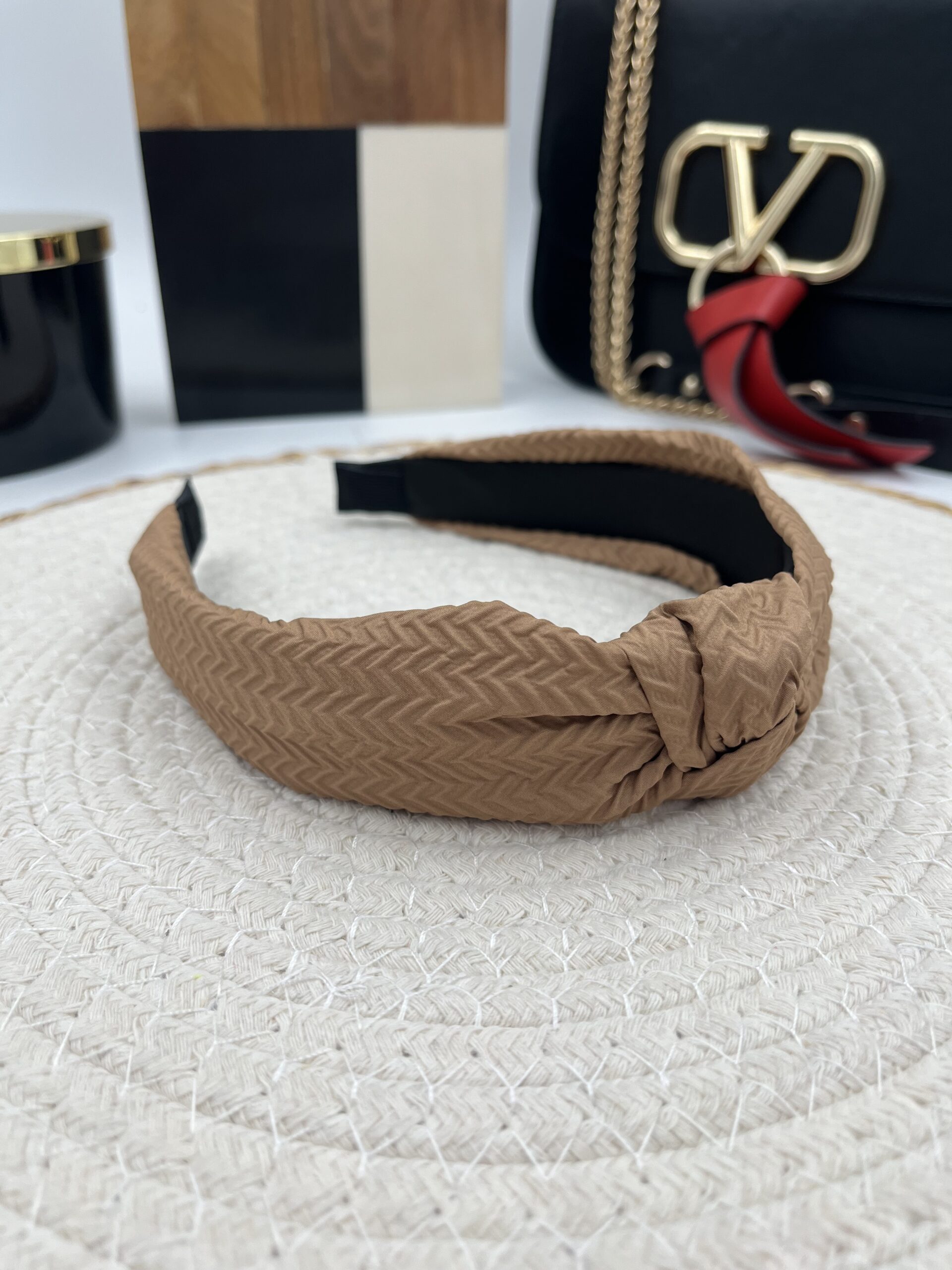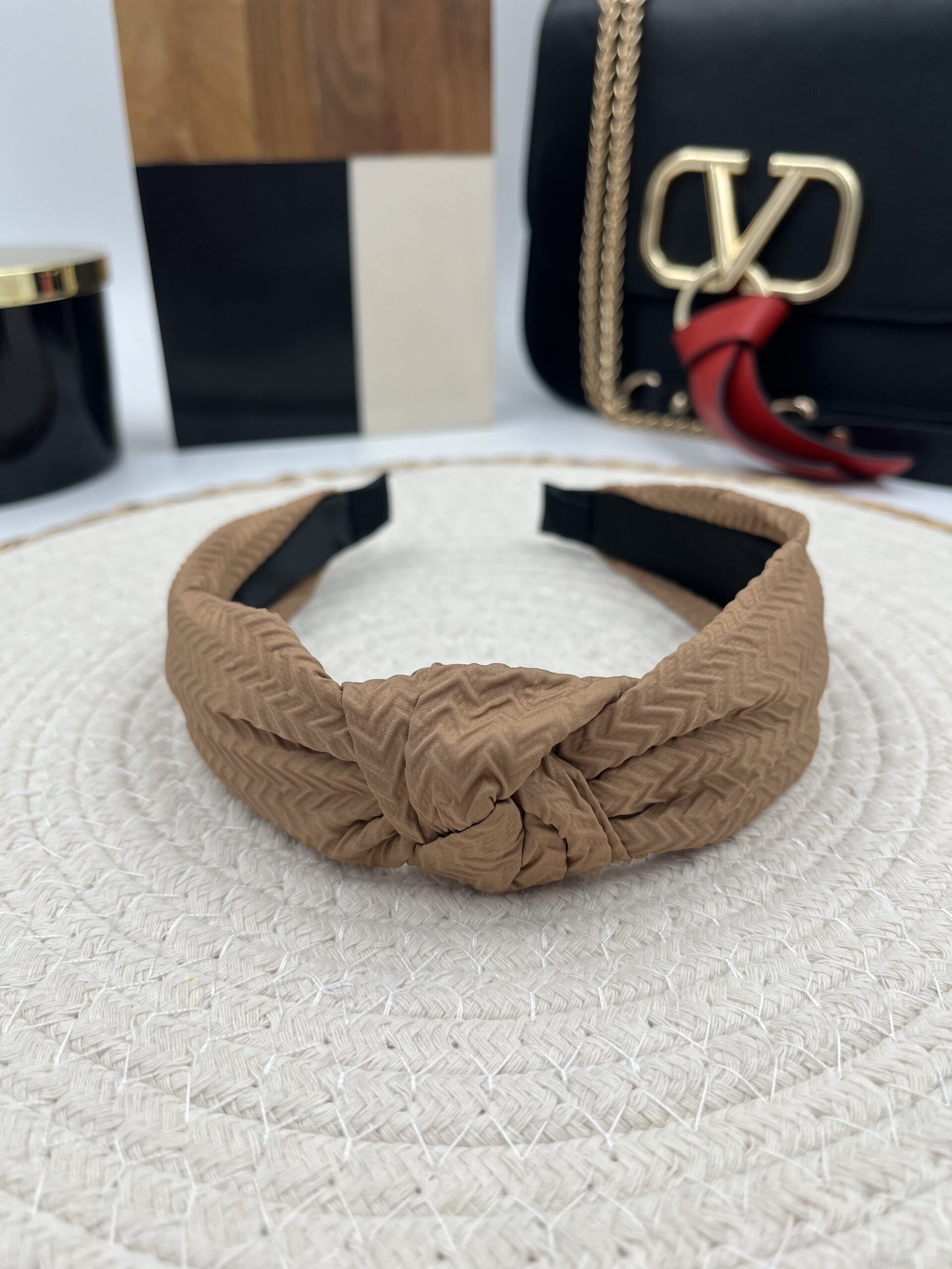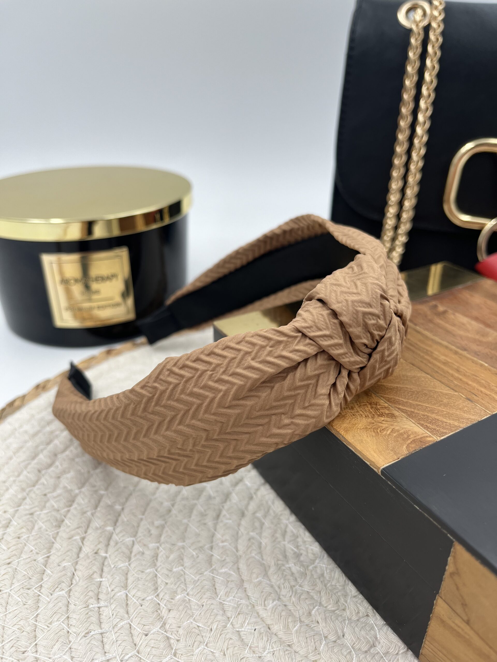Opaska do włosów materiał supeł JASNA BRĄZOWA sweterek