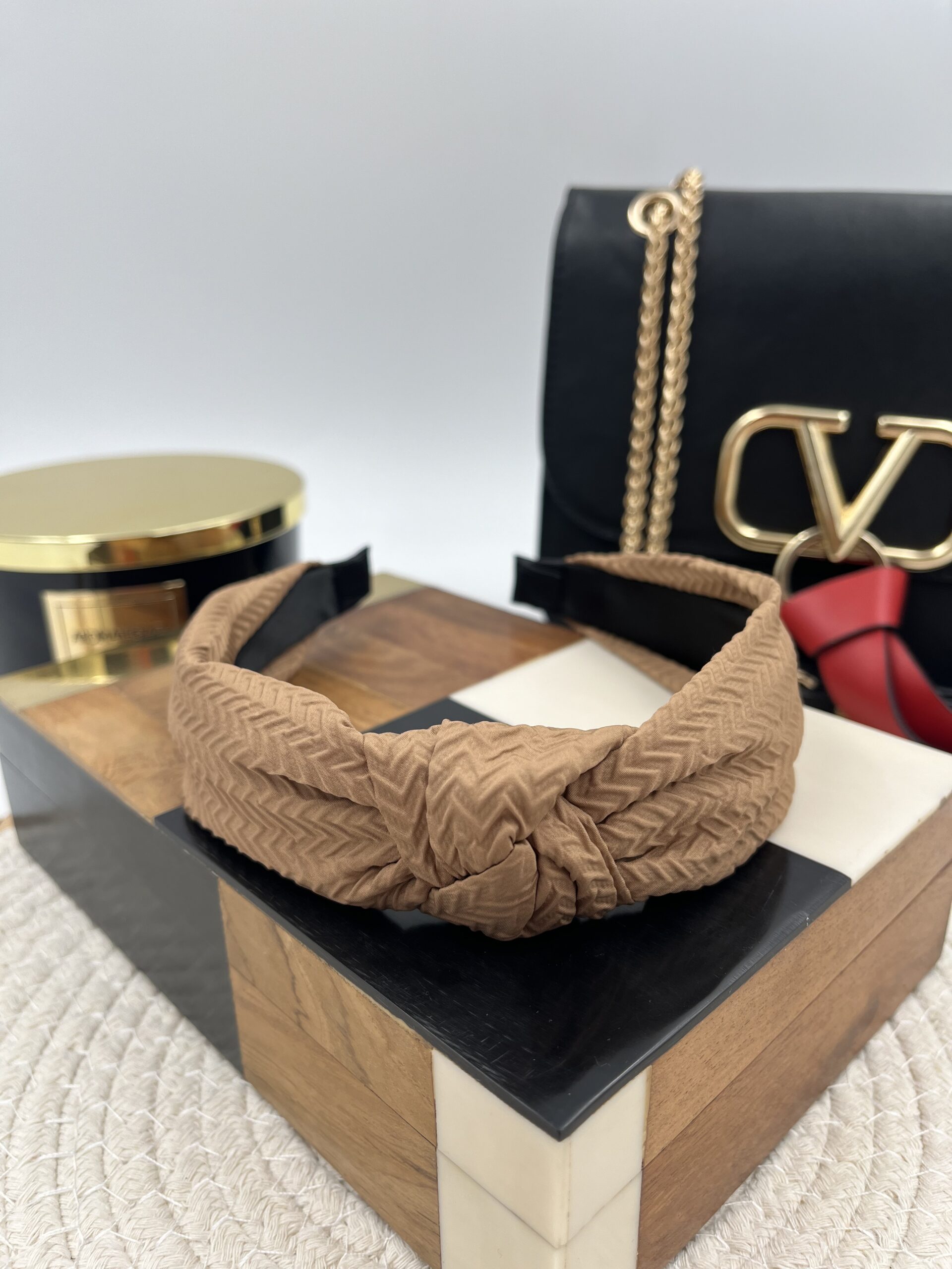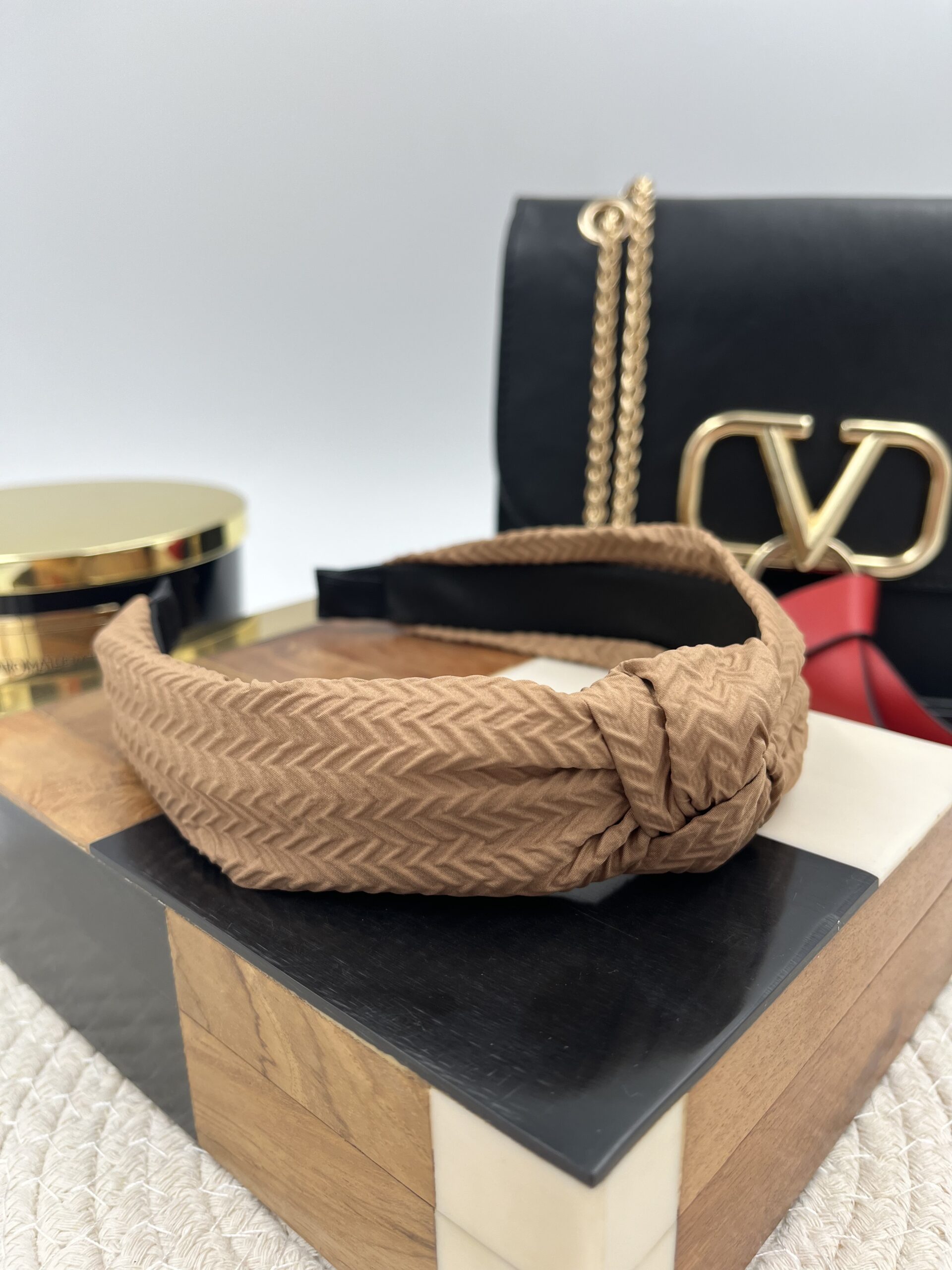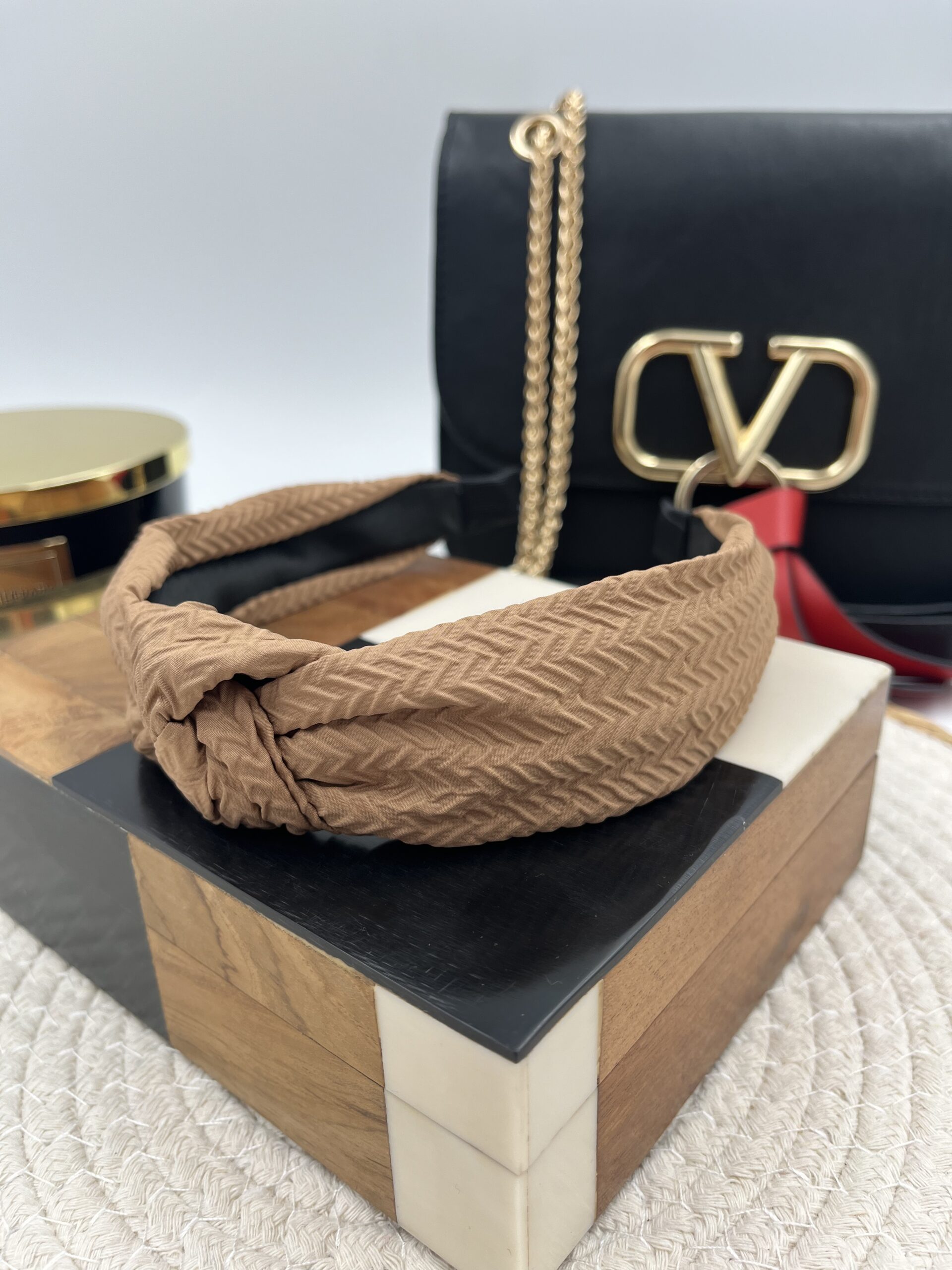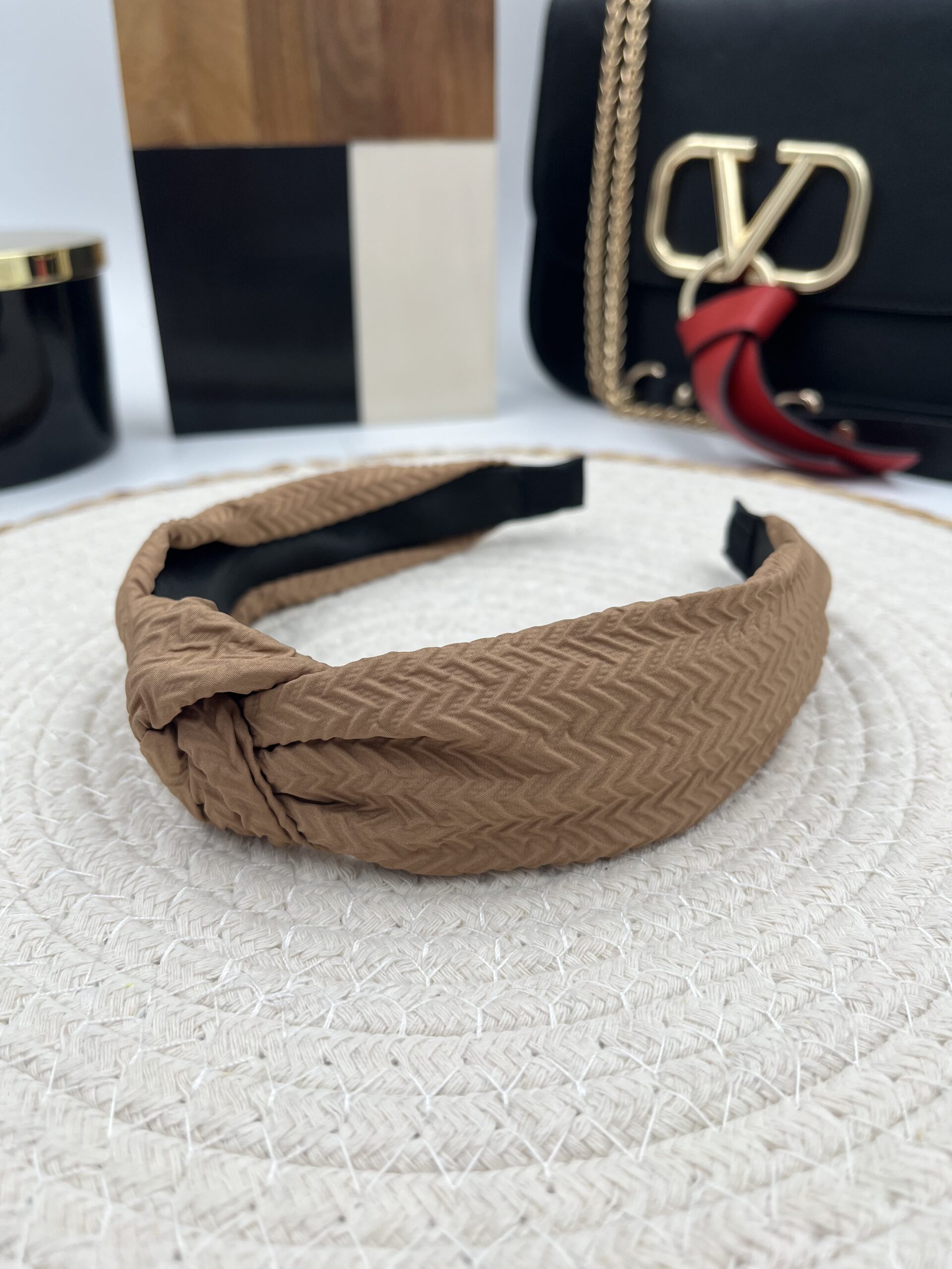 Opaska do włosów materiał supeł JASNA BRĄZOWA sweterek
