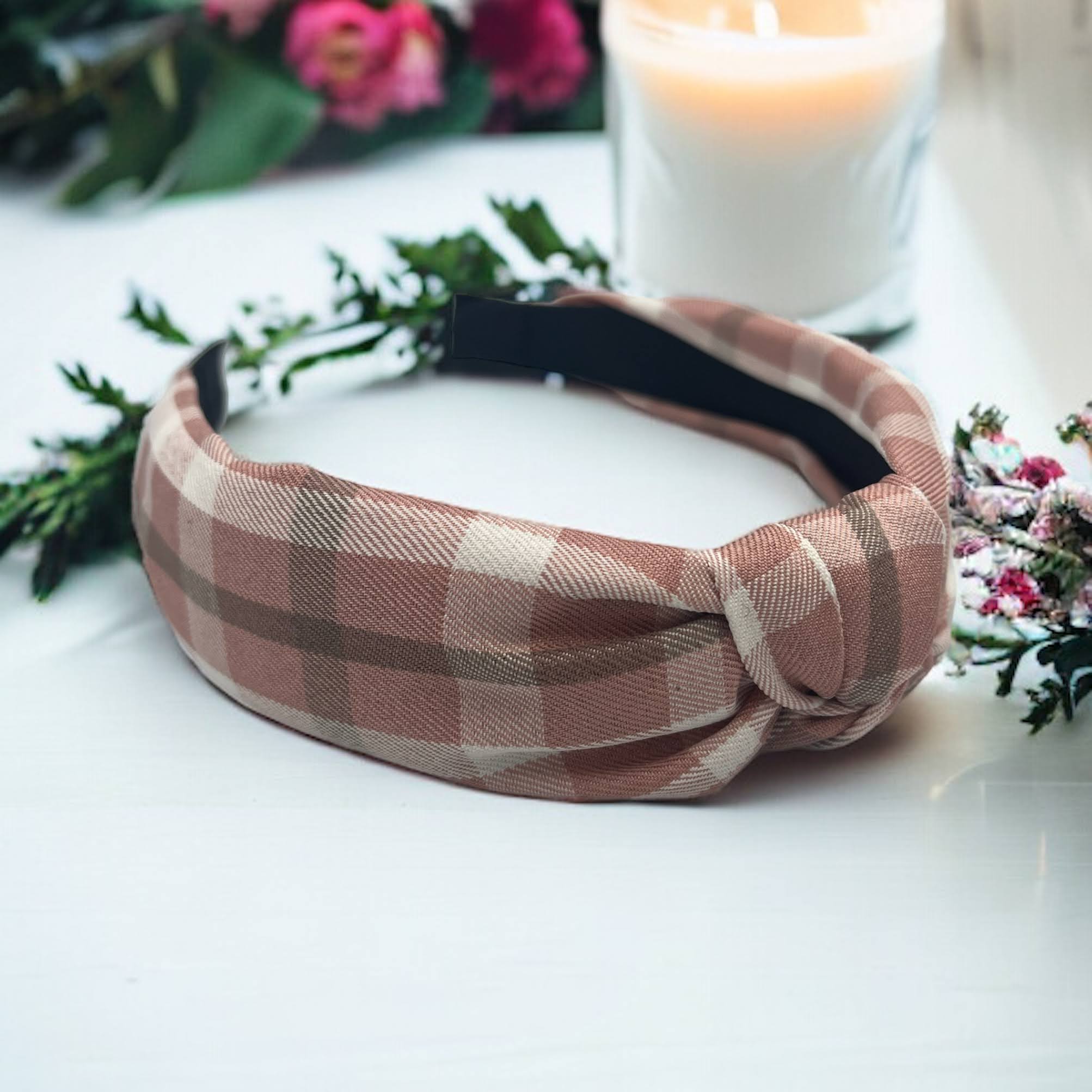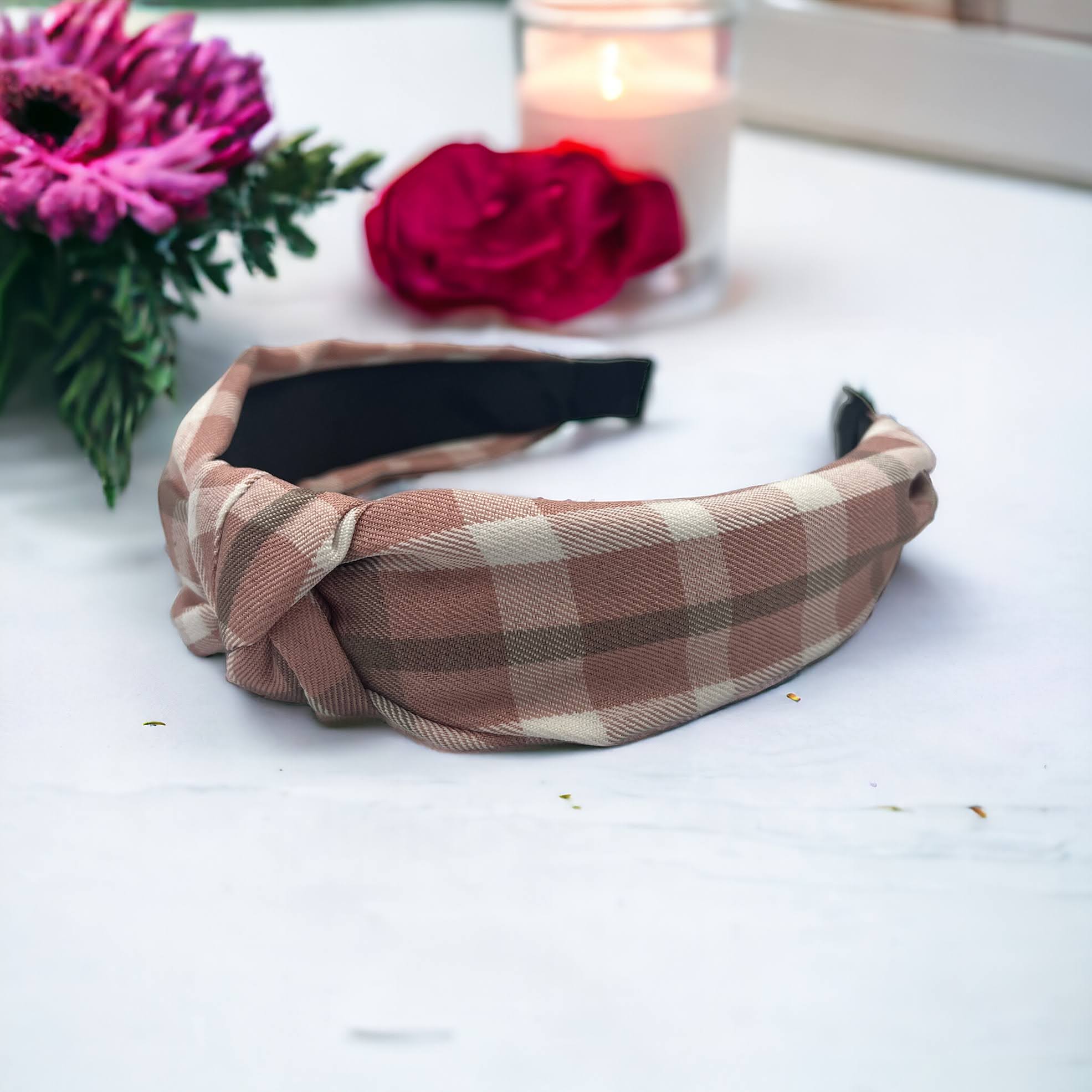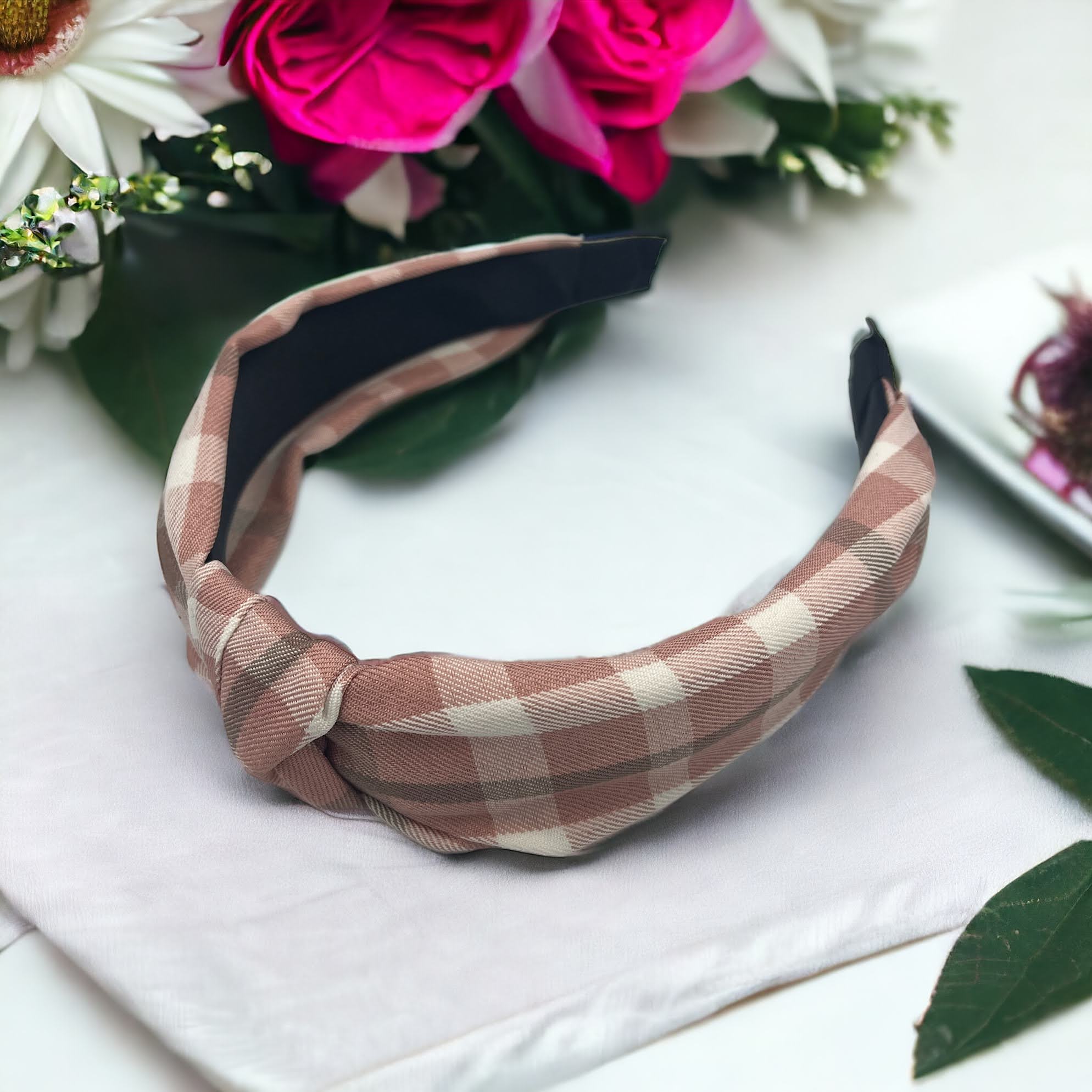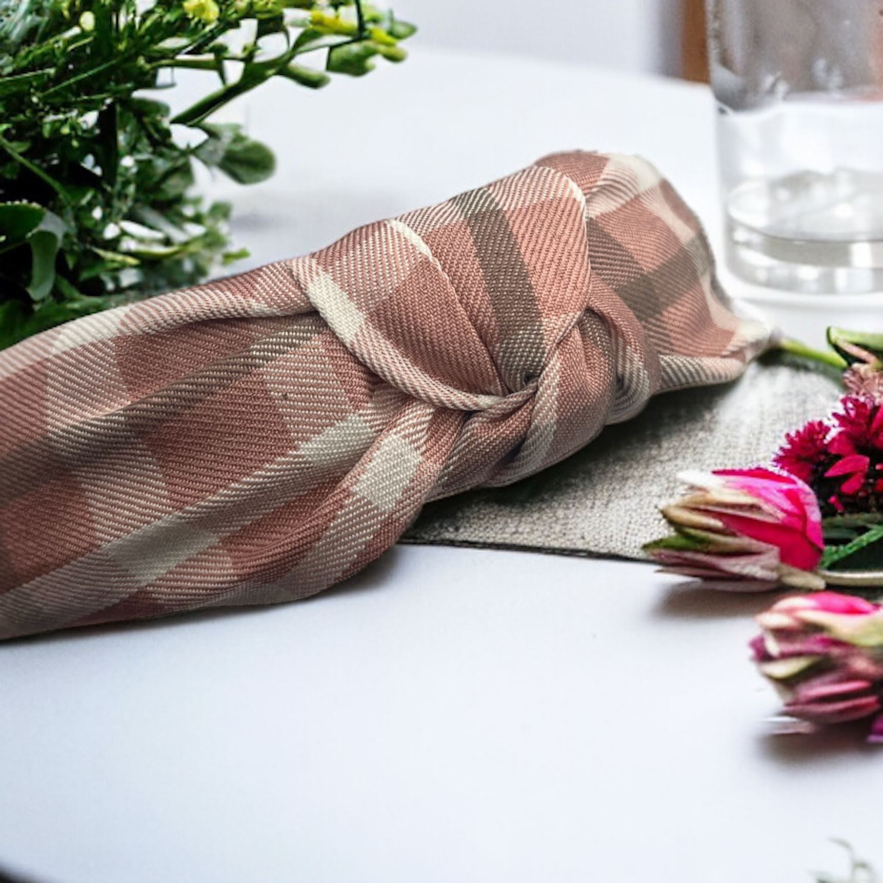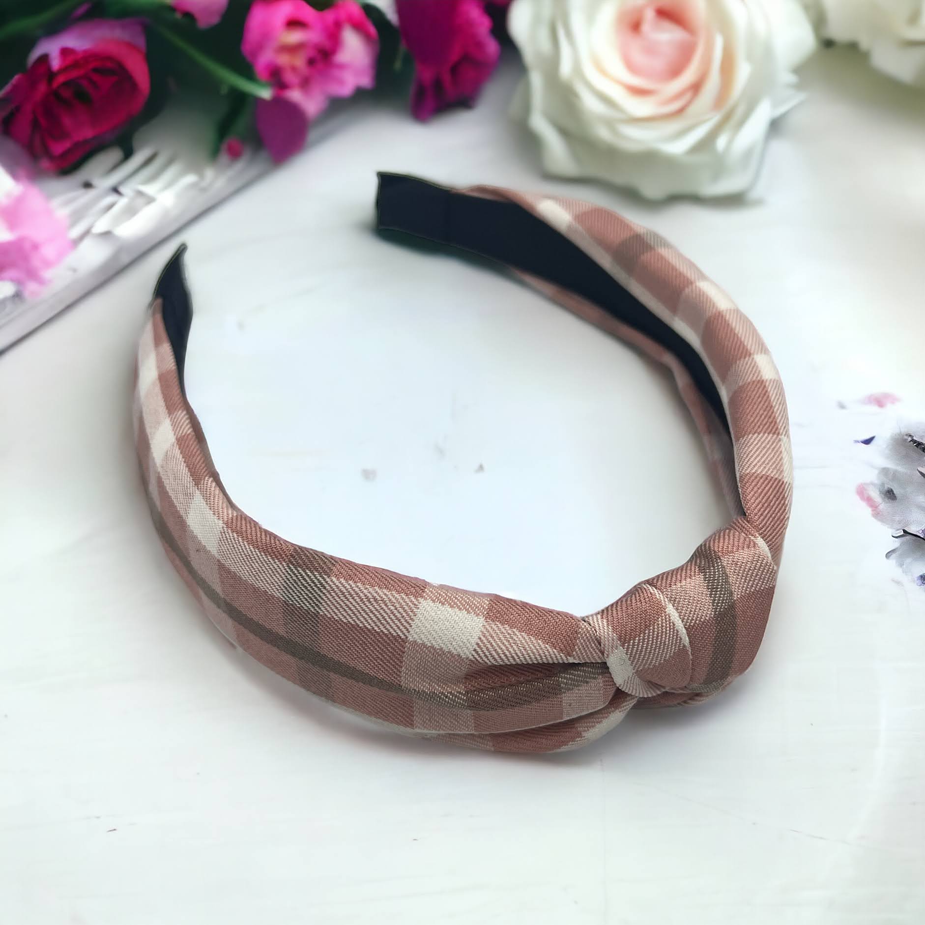 Opaska do włosów materiał supeł RÓŻOWA kratka krata