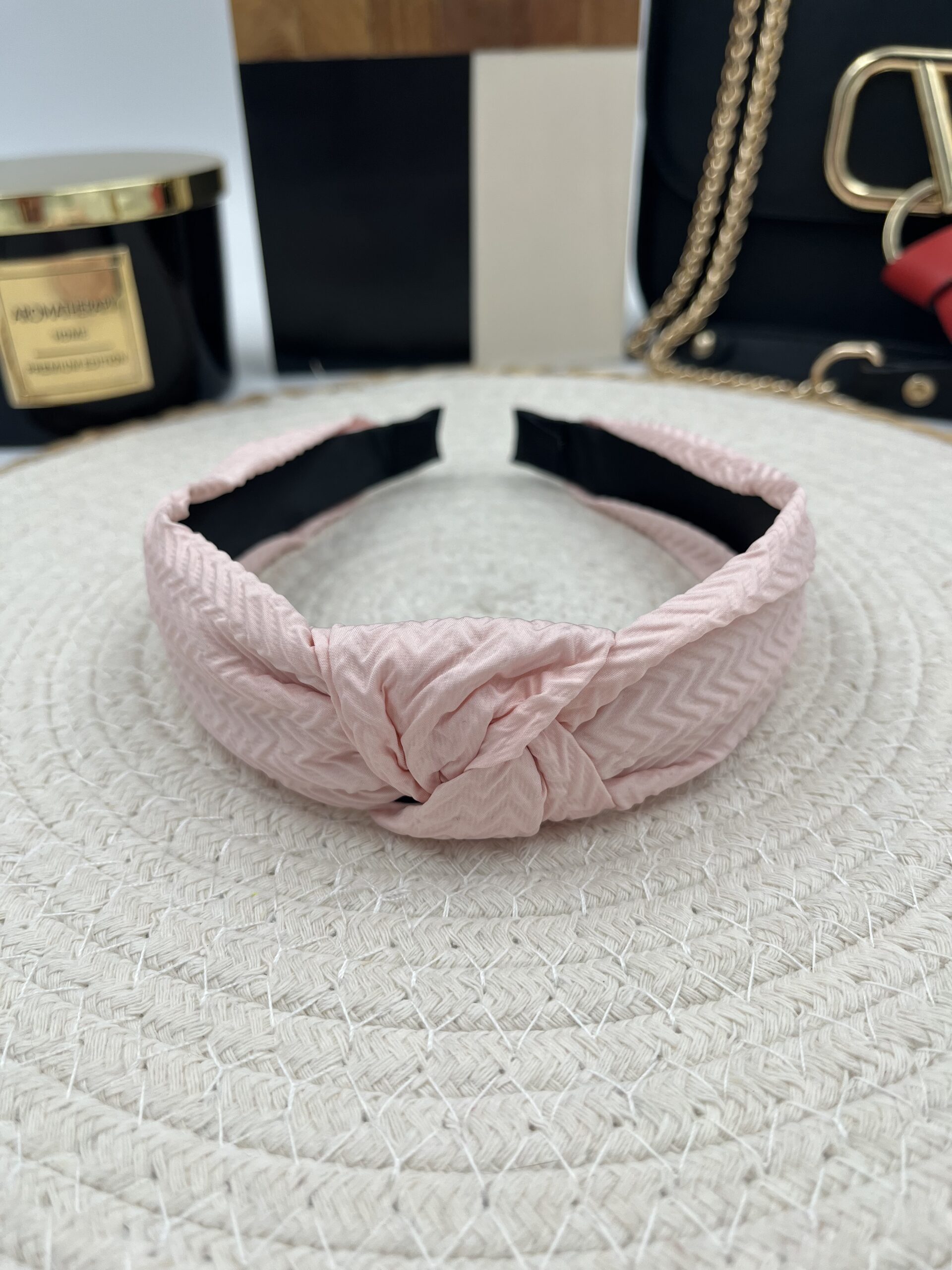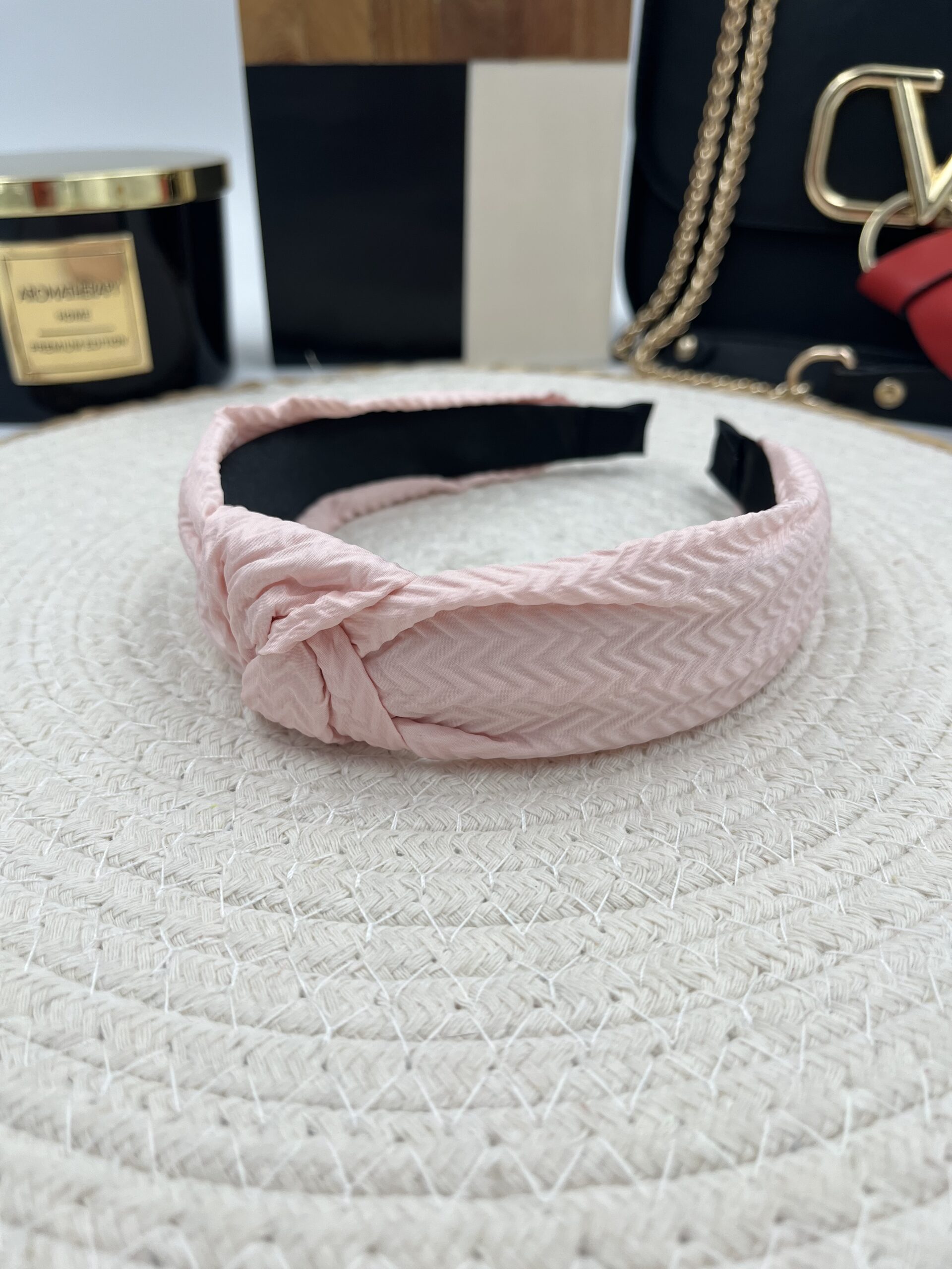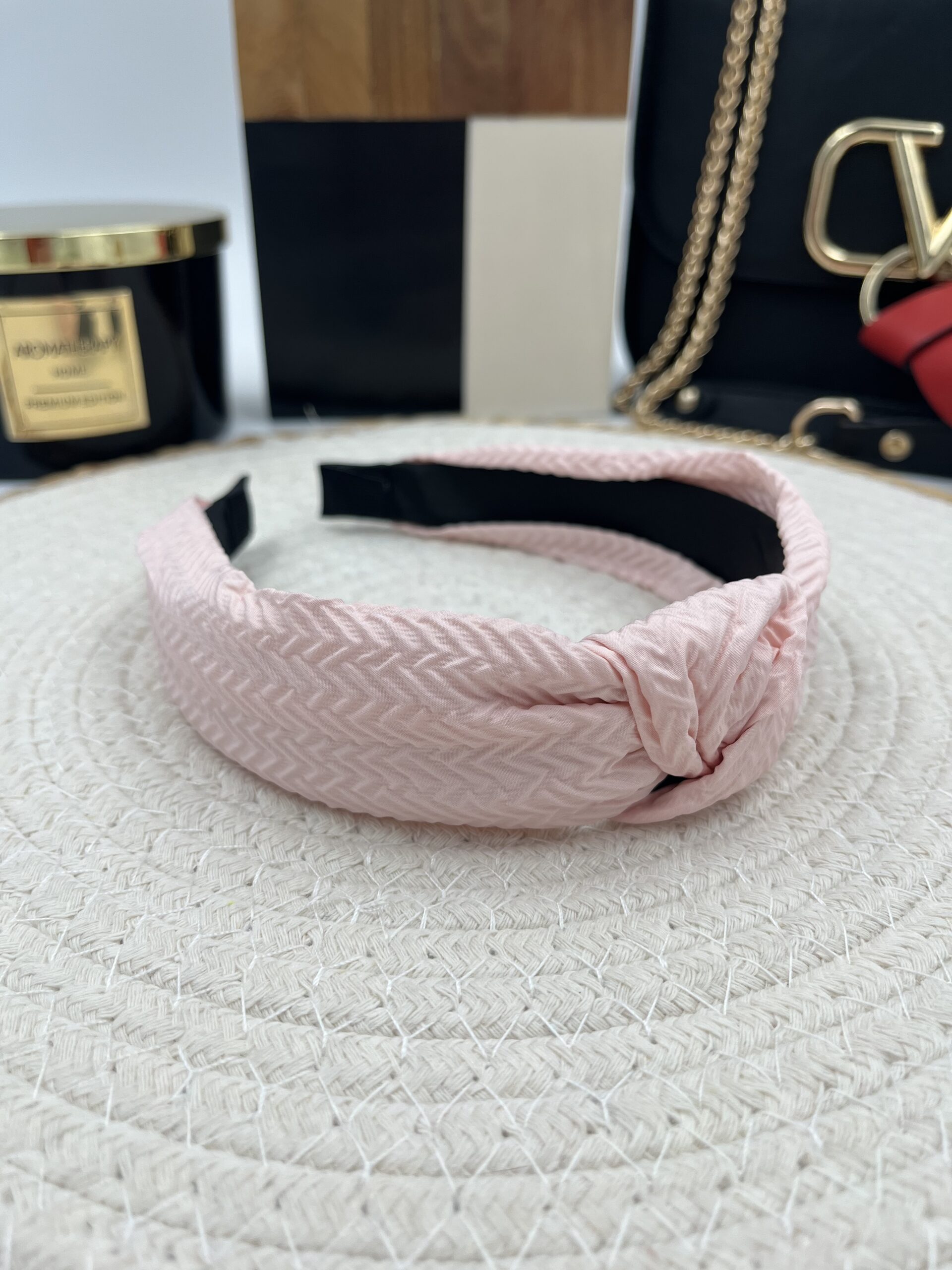 Opaska do włosów materiał supeł JASNA RÓŻOWA sweterek