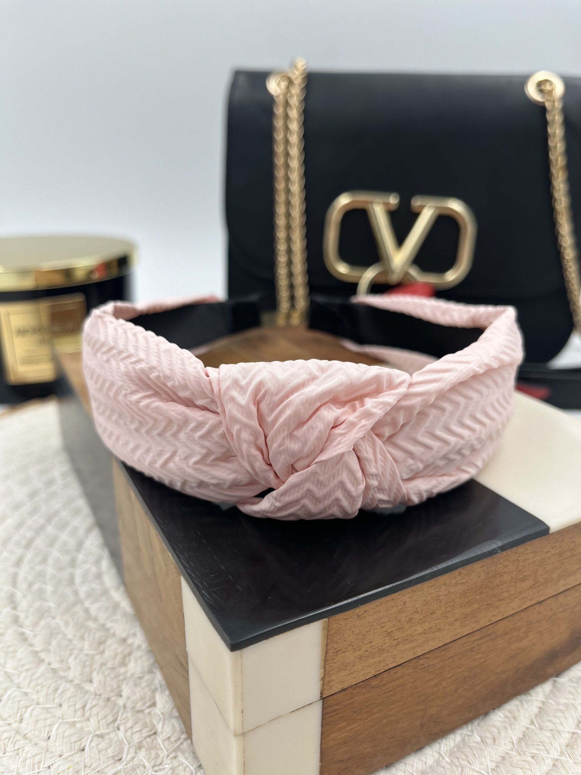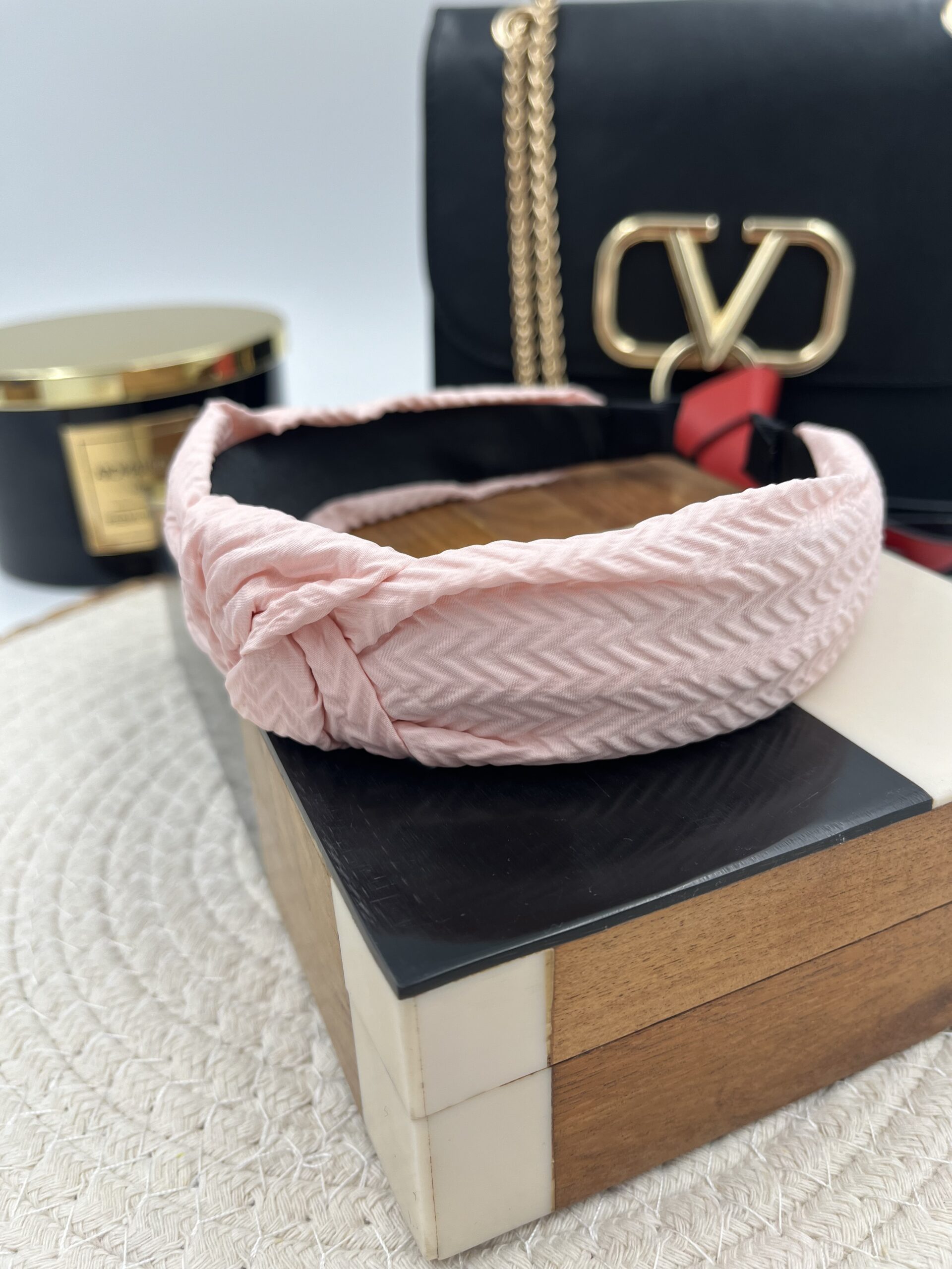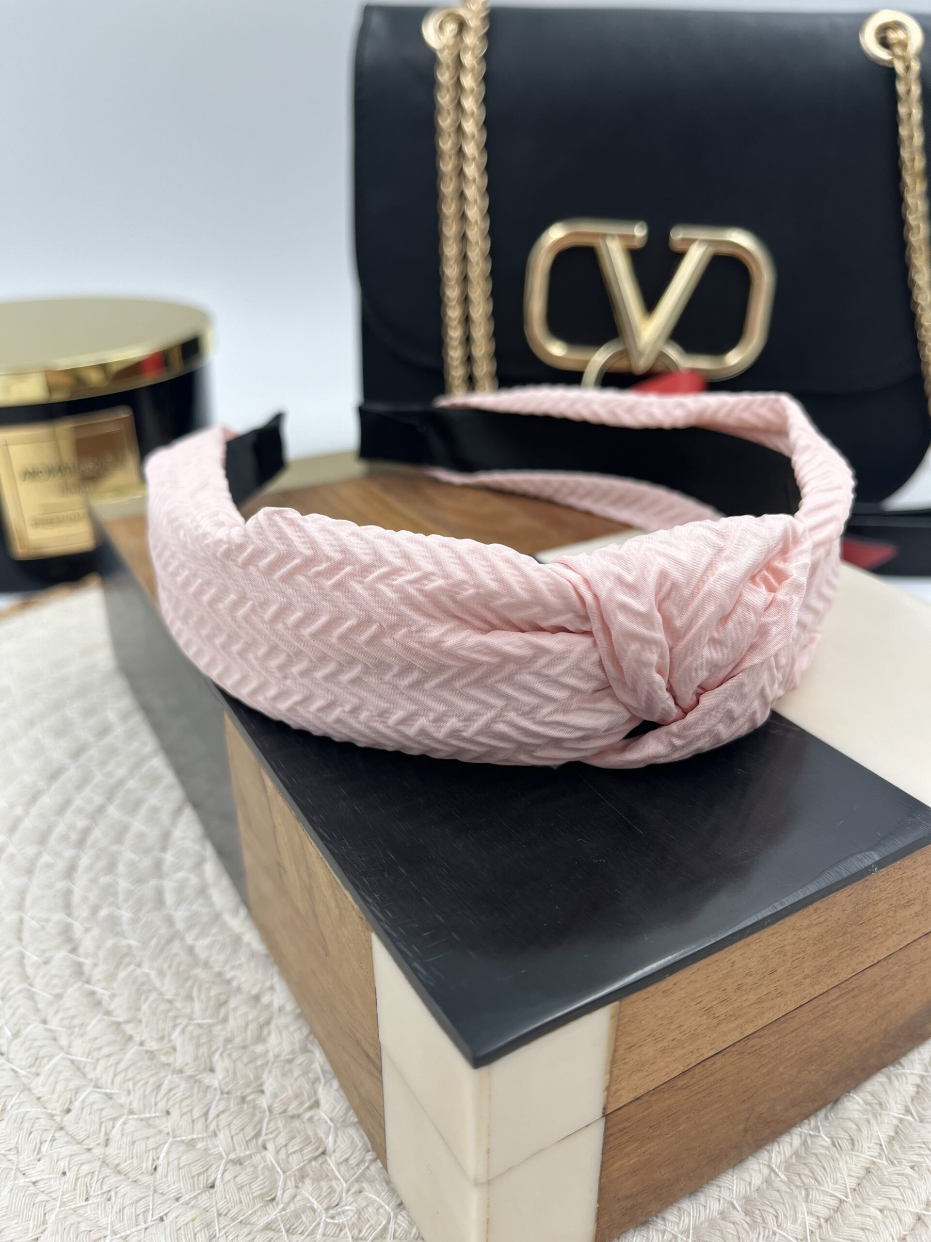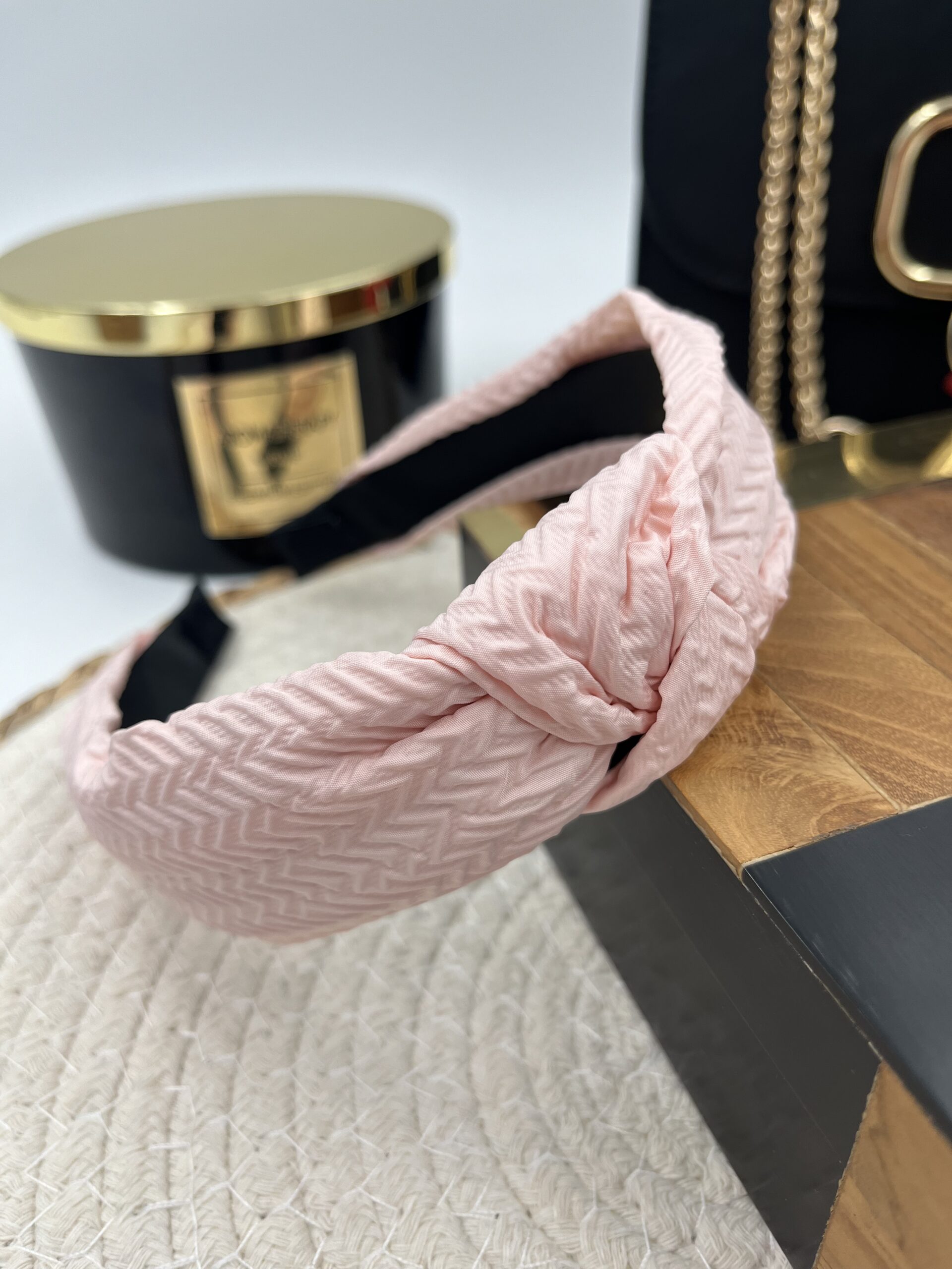 Opaska do włosów materiał supeł JASNA RÓŻOWA sweterek