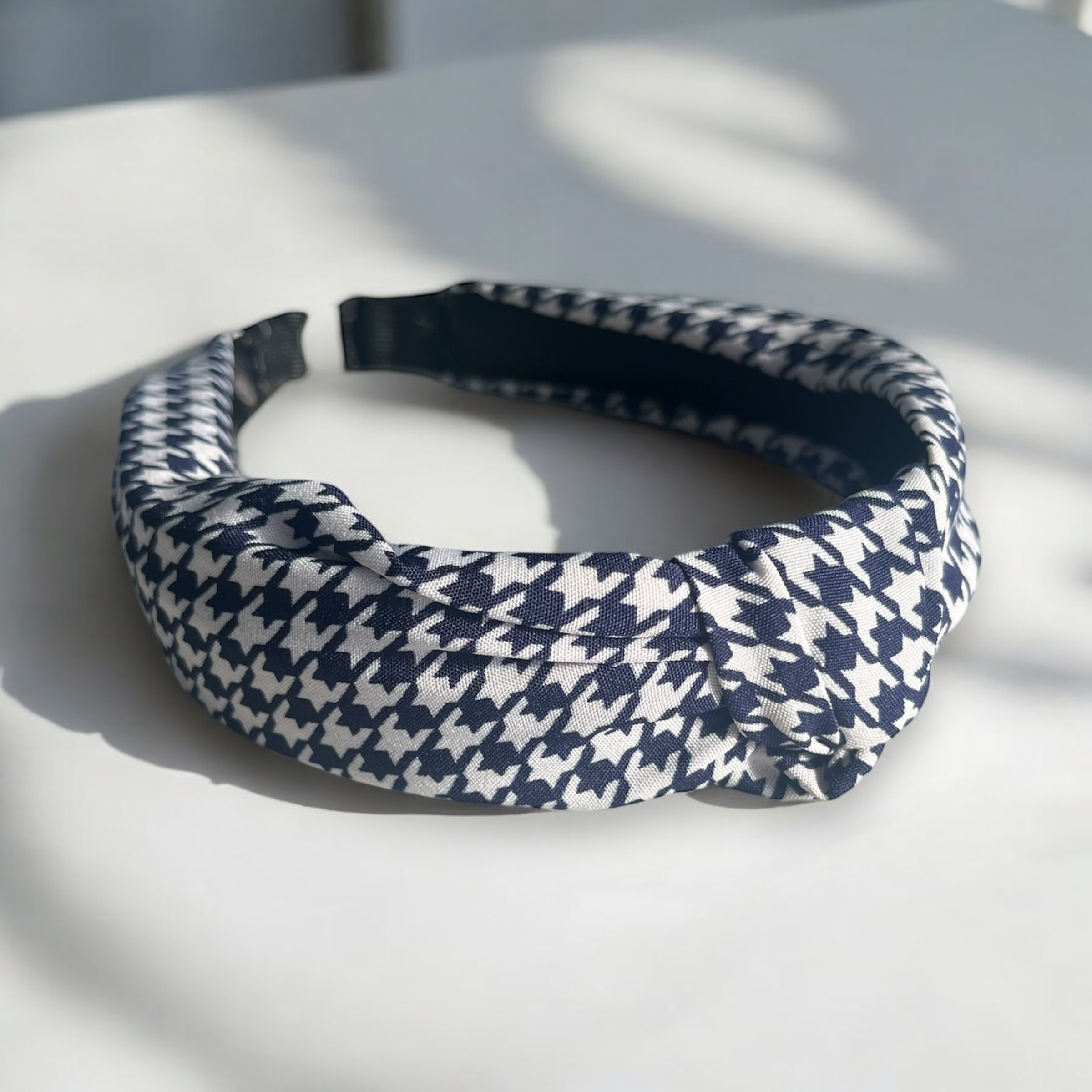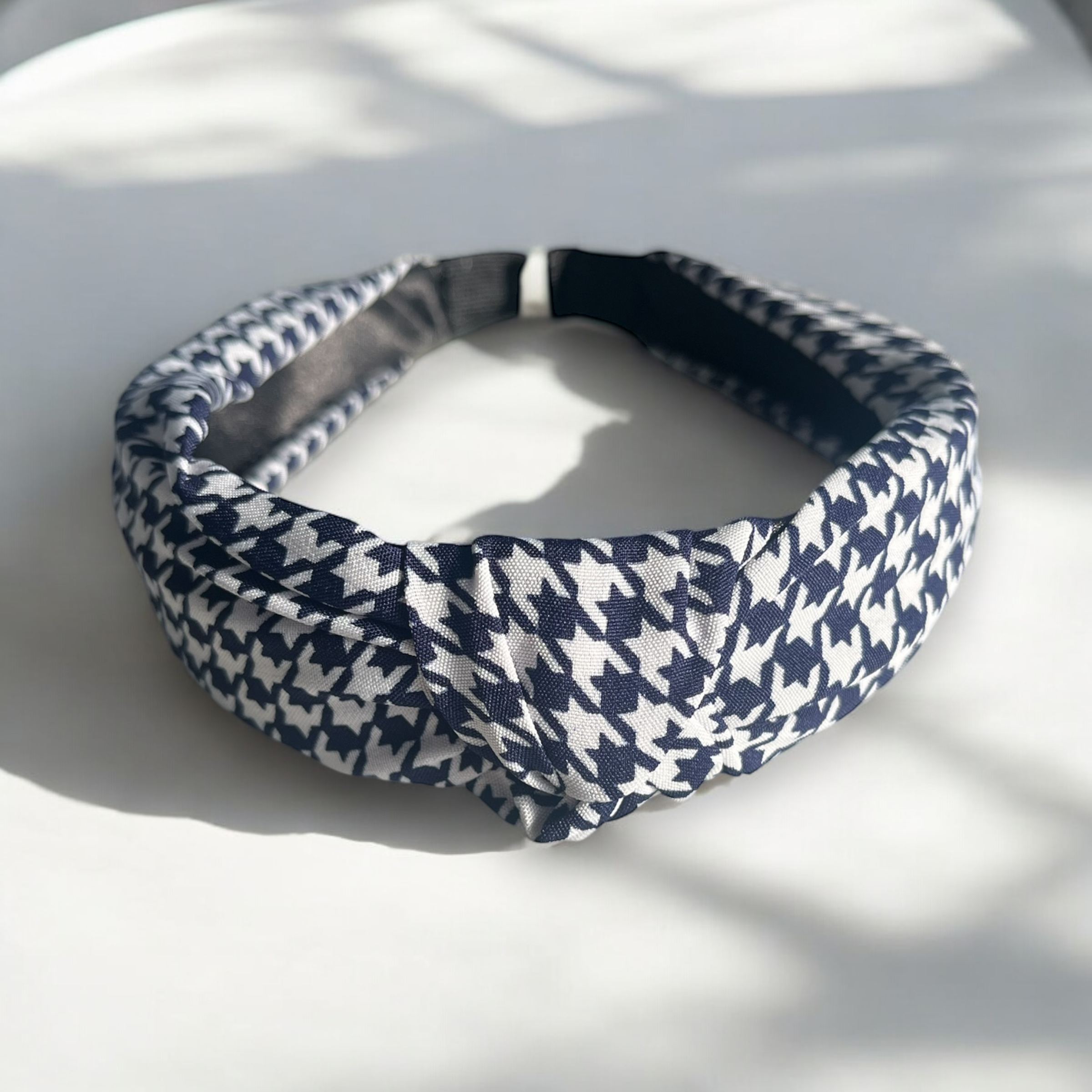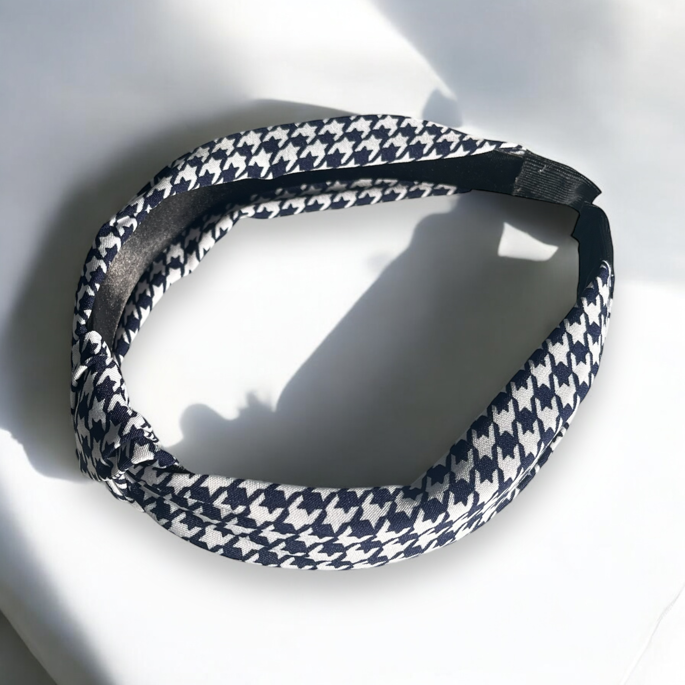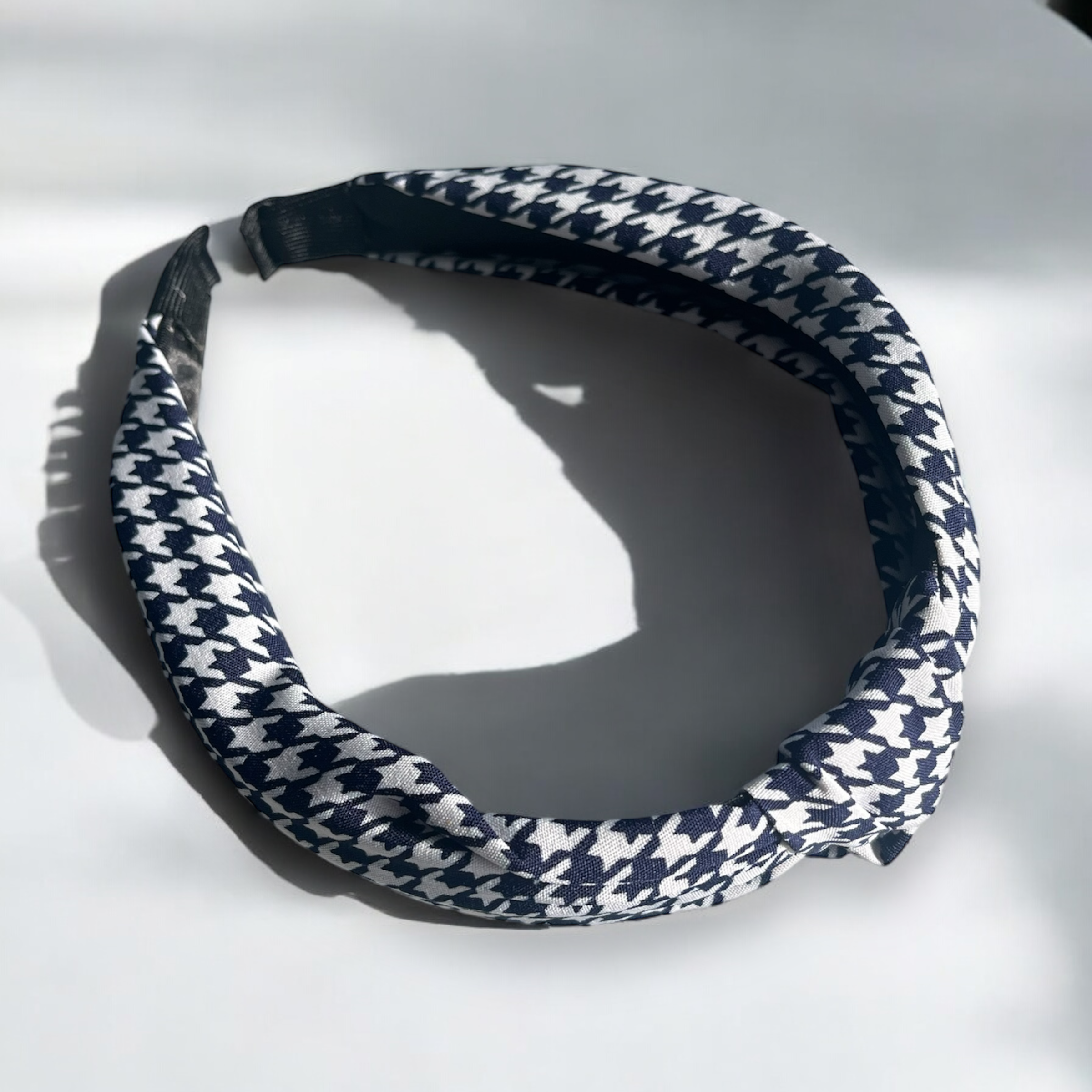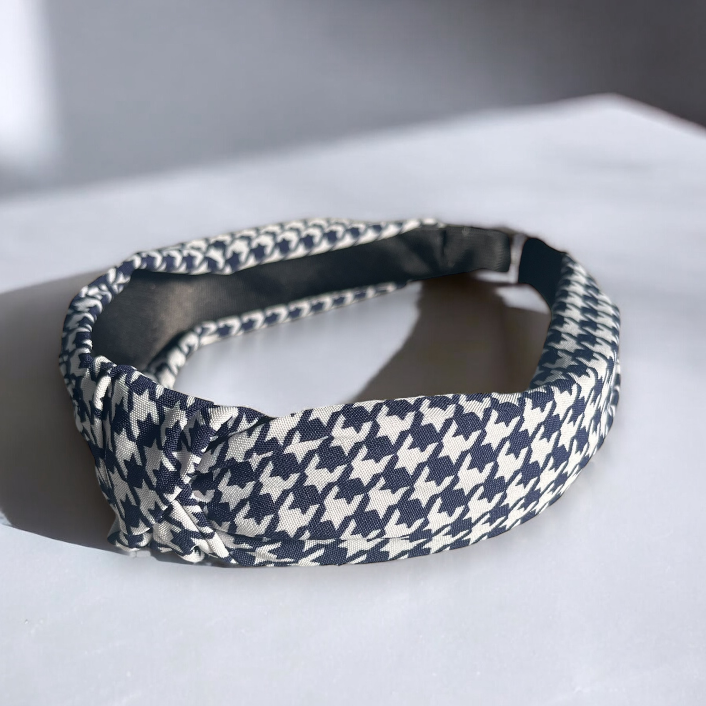 Opaska materiałowa w kolorze granatowym w pepitkę.
