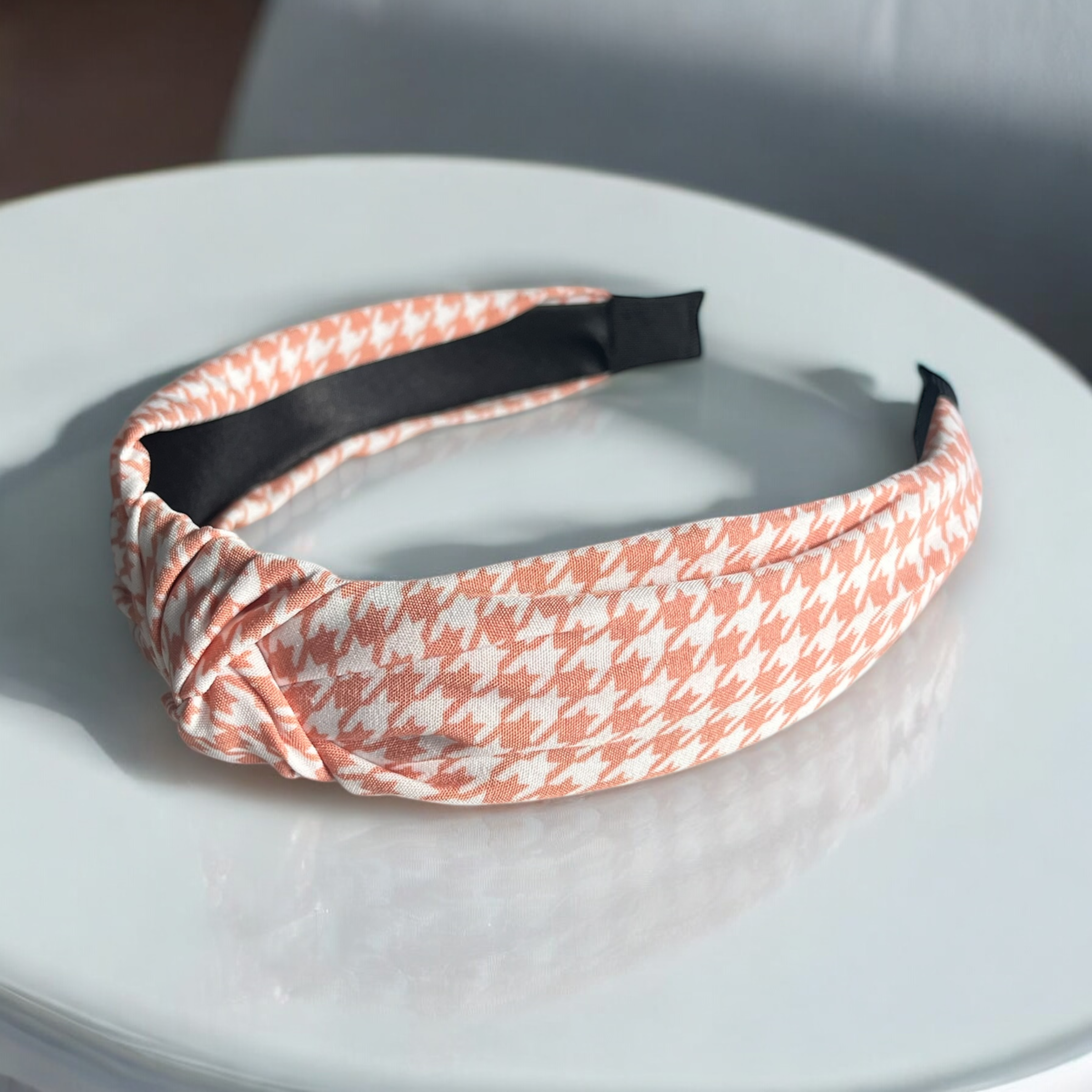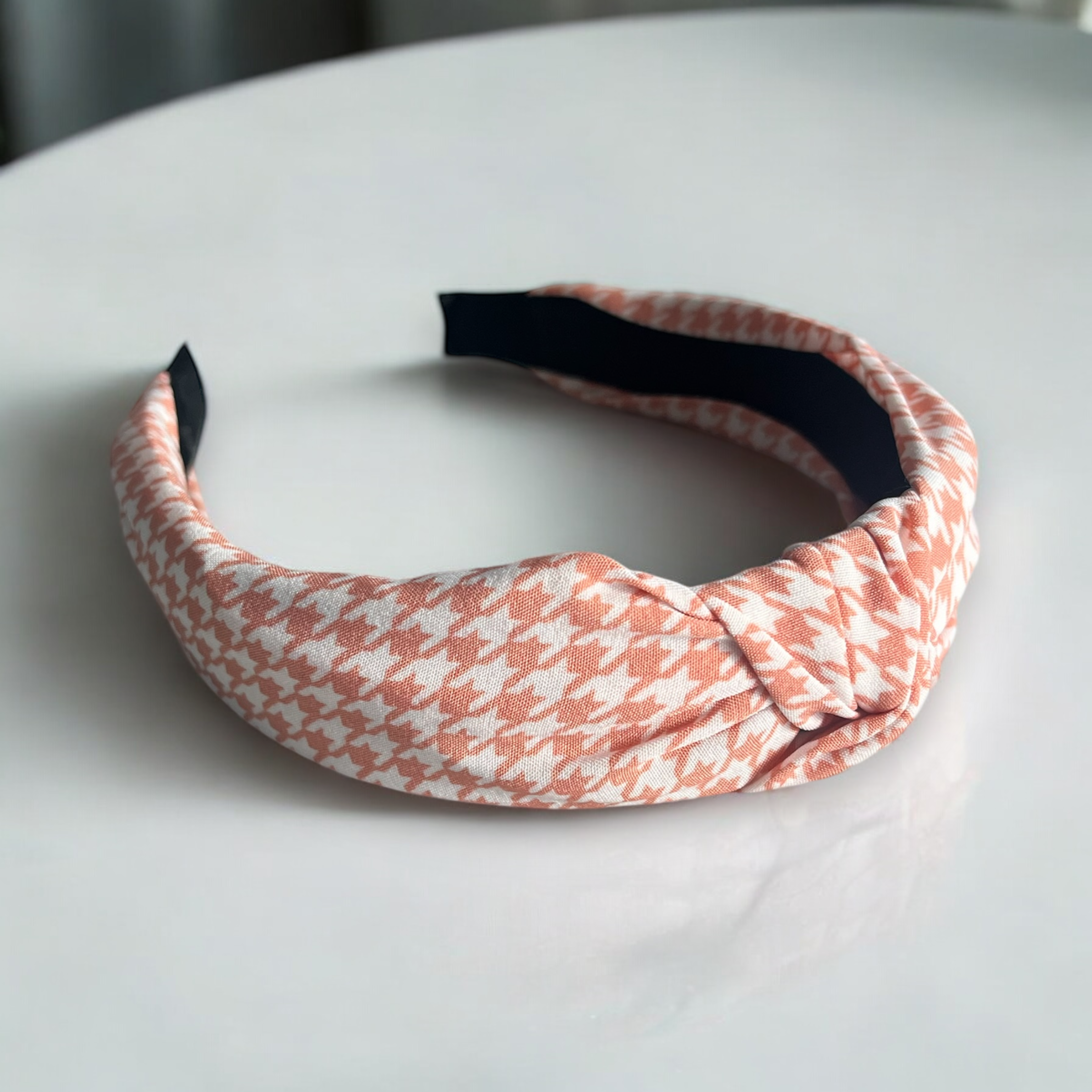 Opaska do włosów typu PIN UP w kolorze łososiowym w pepitkę.