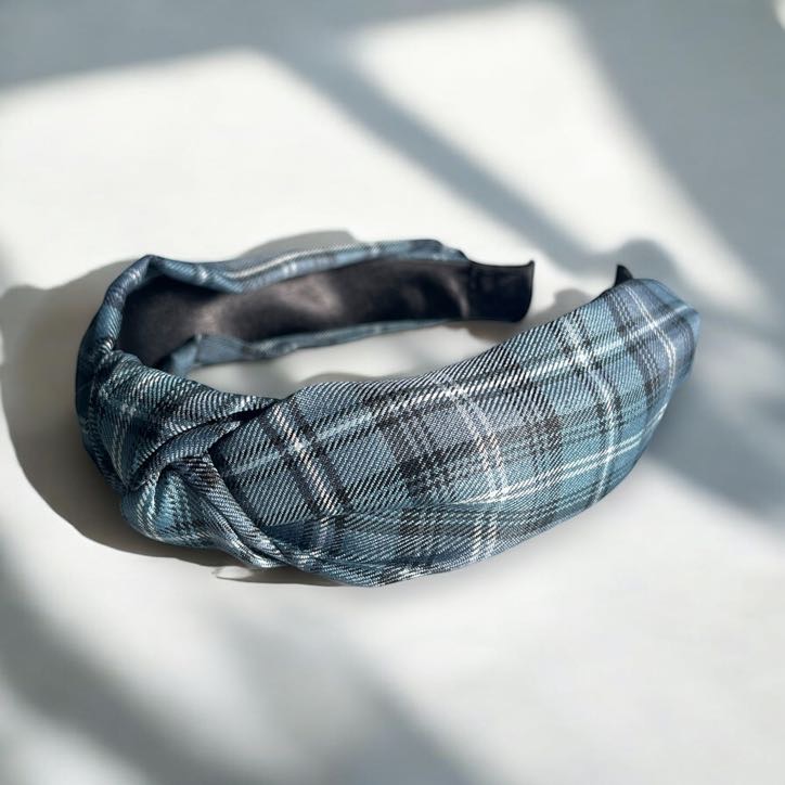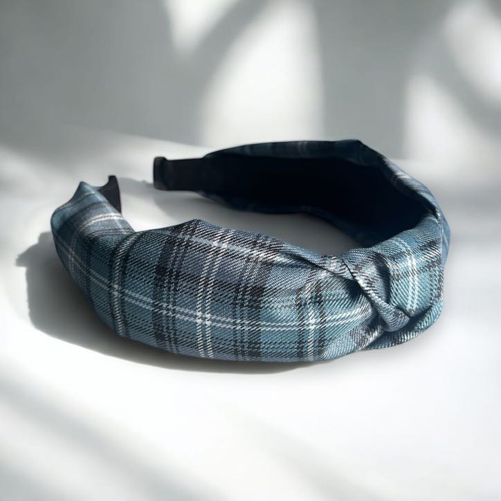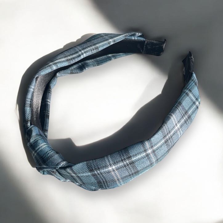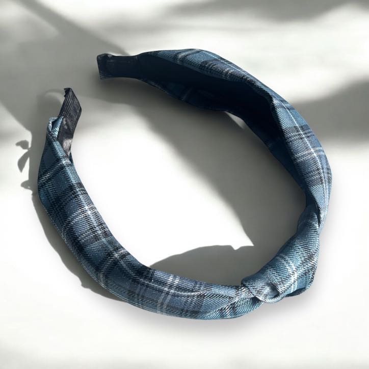Opaska do włosów materiał supeł turban NIEBIESKA kratka krata