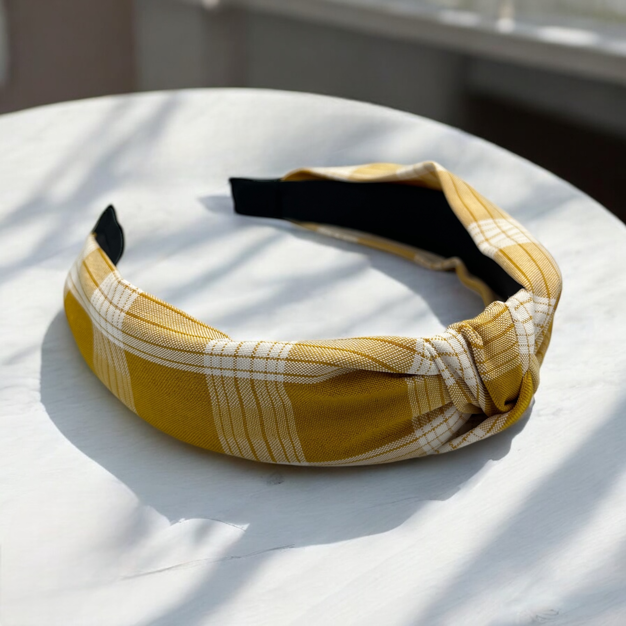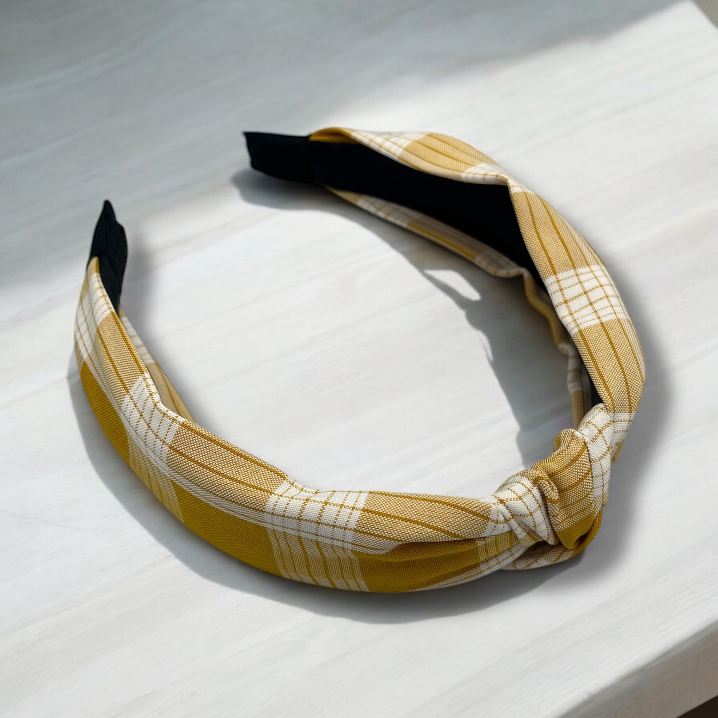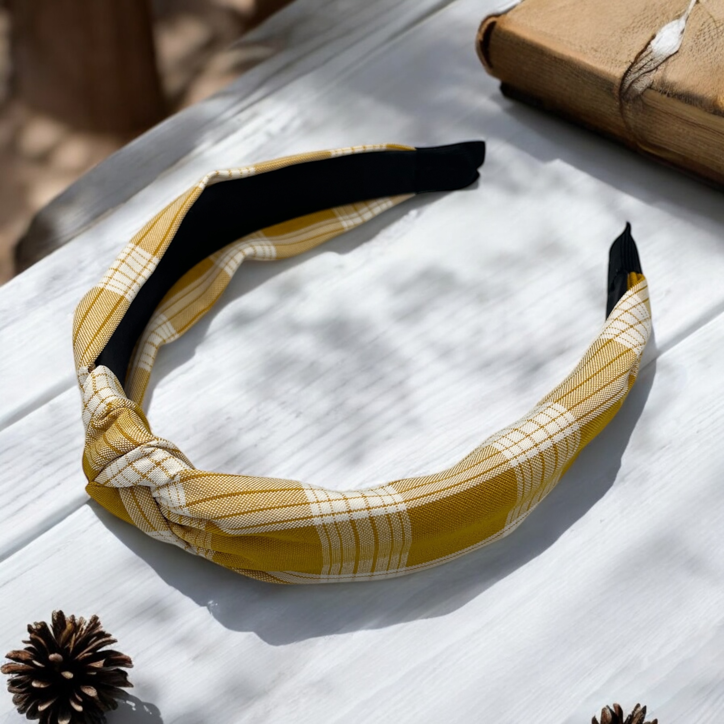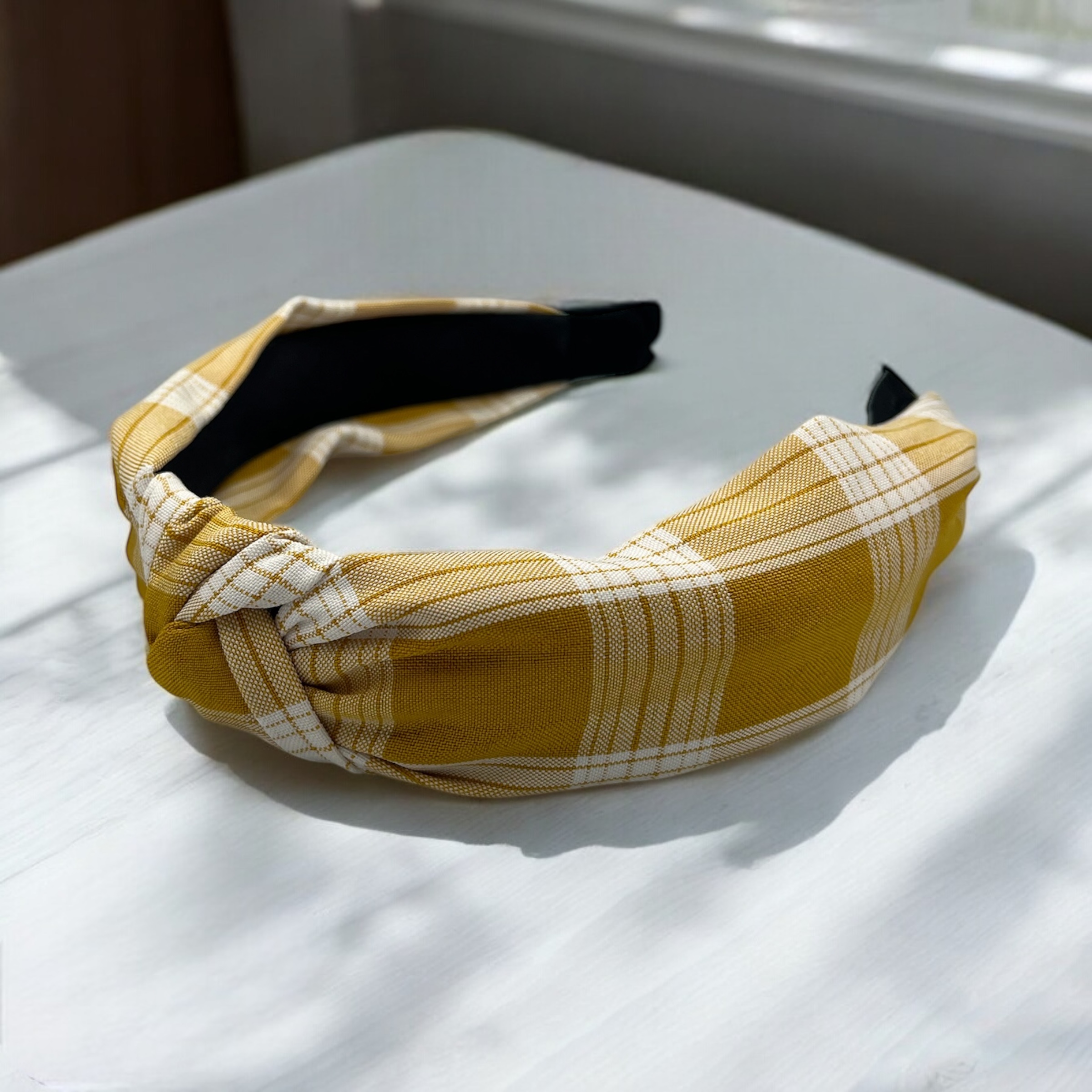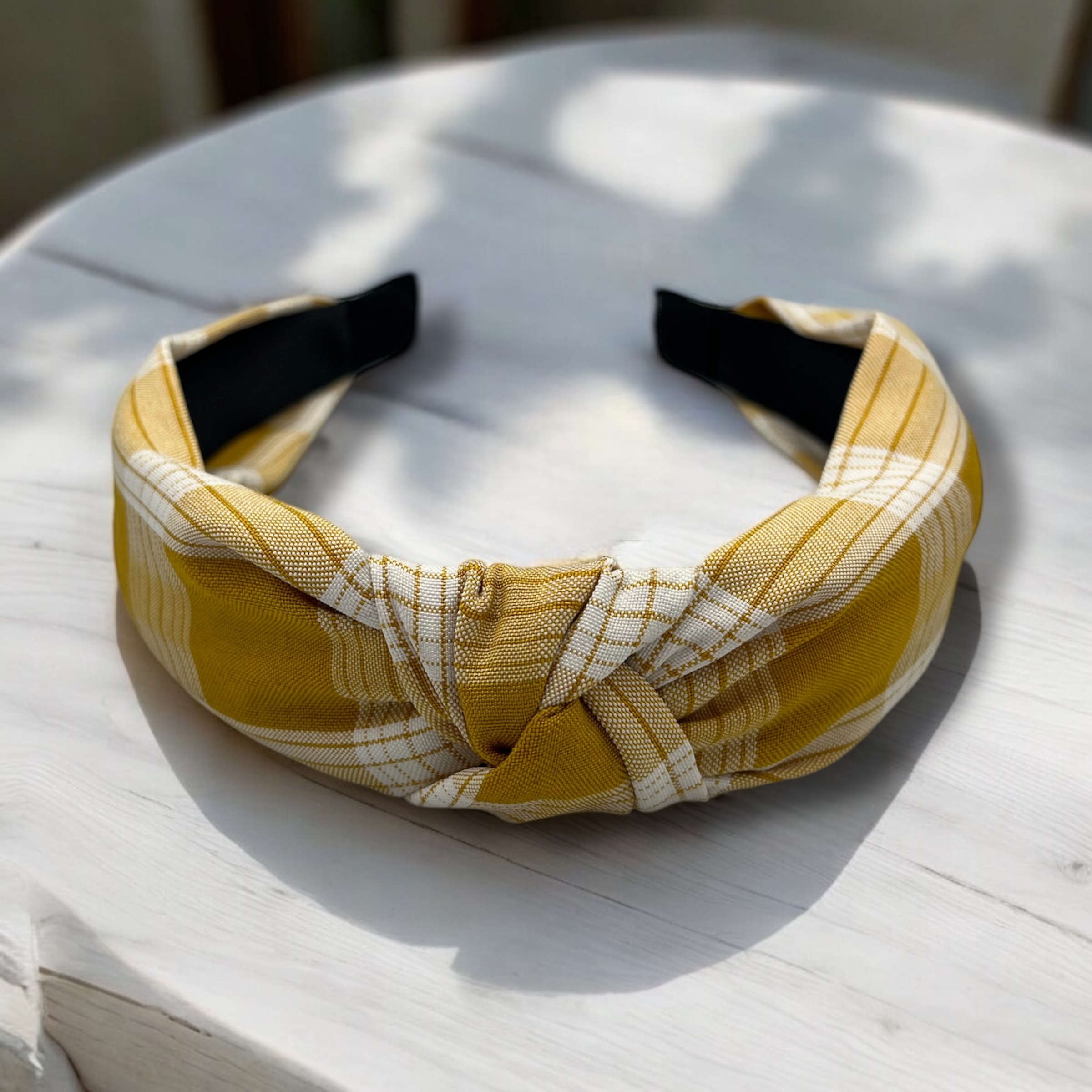 Opaska do włosów materiał supeł żółta kratka węzeł turban