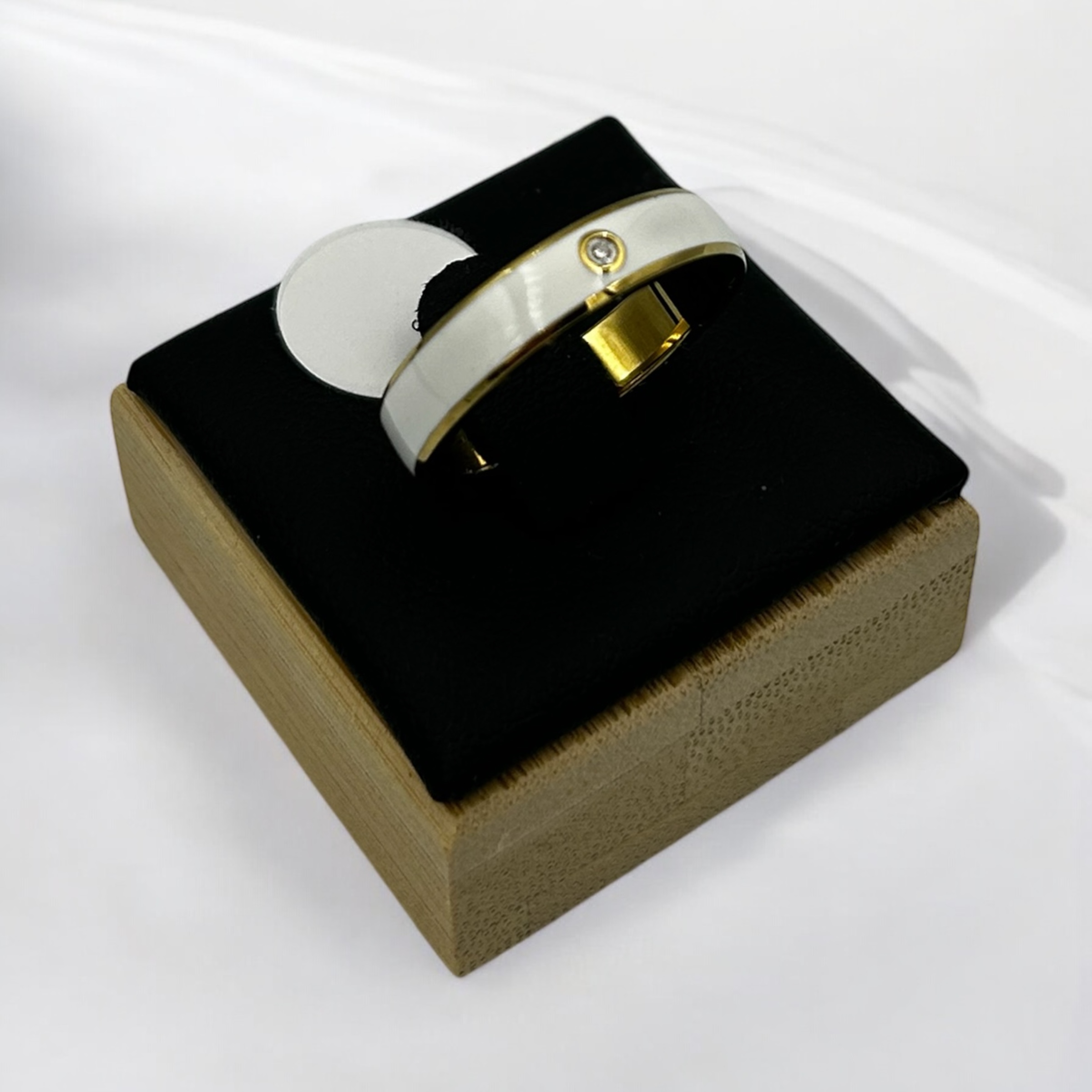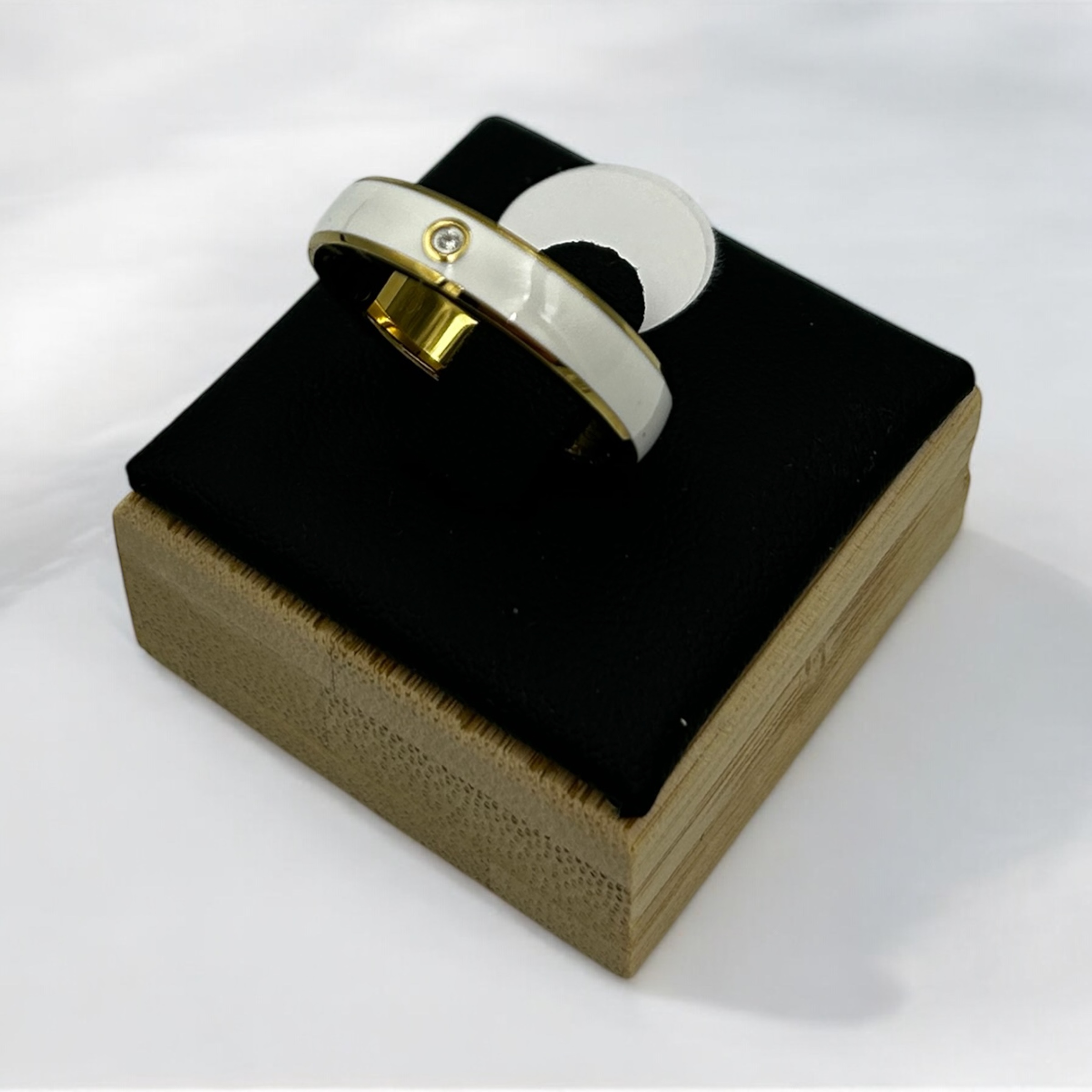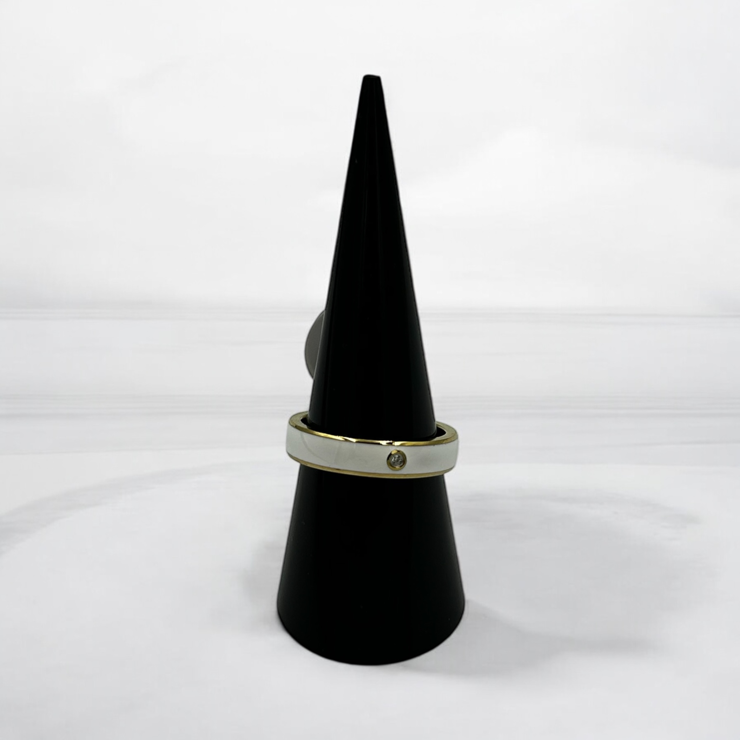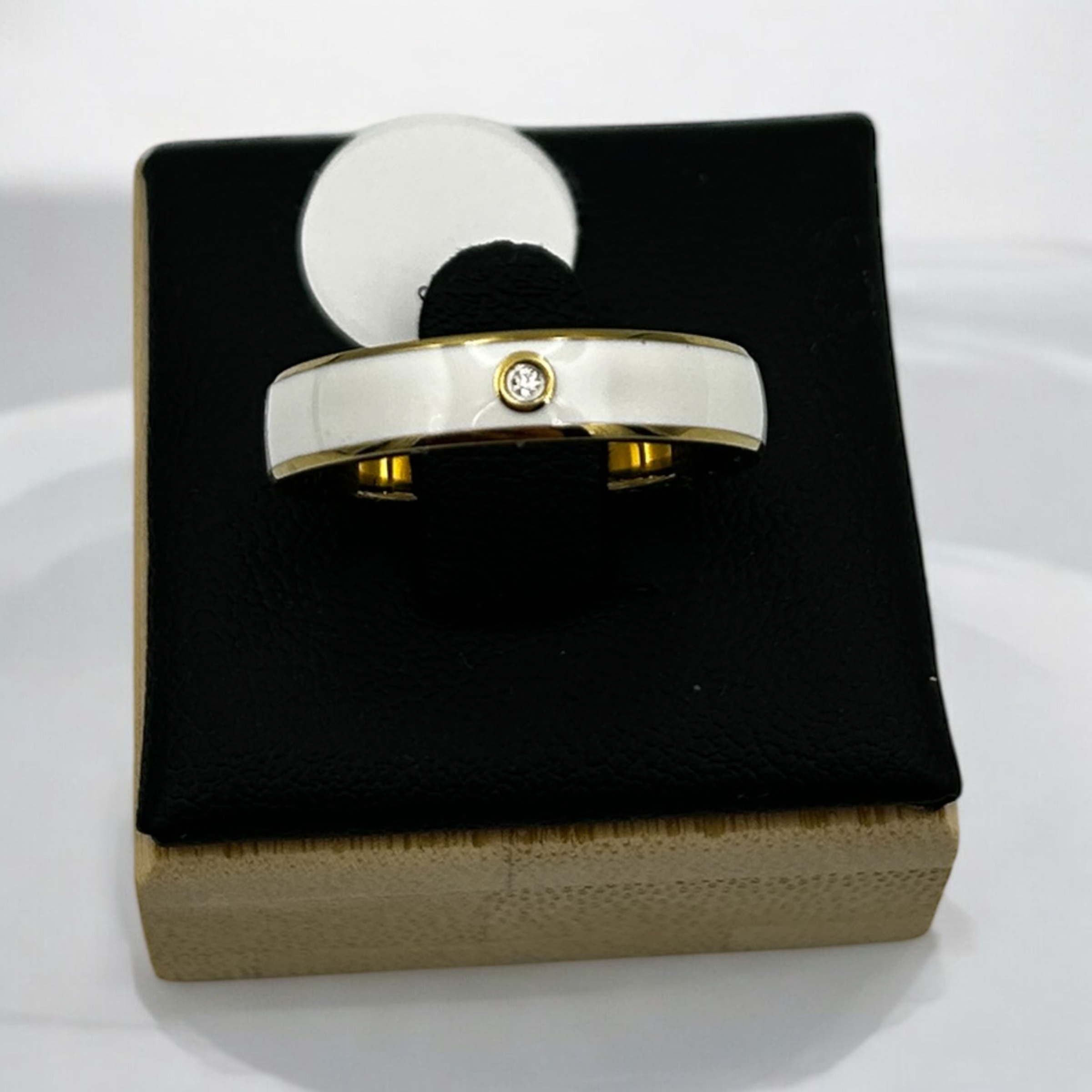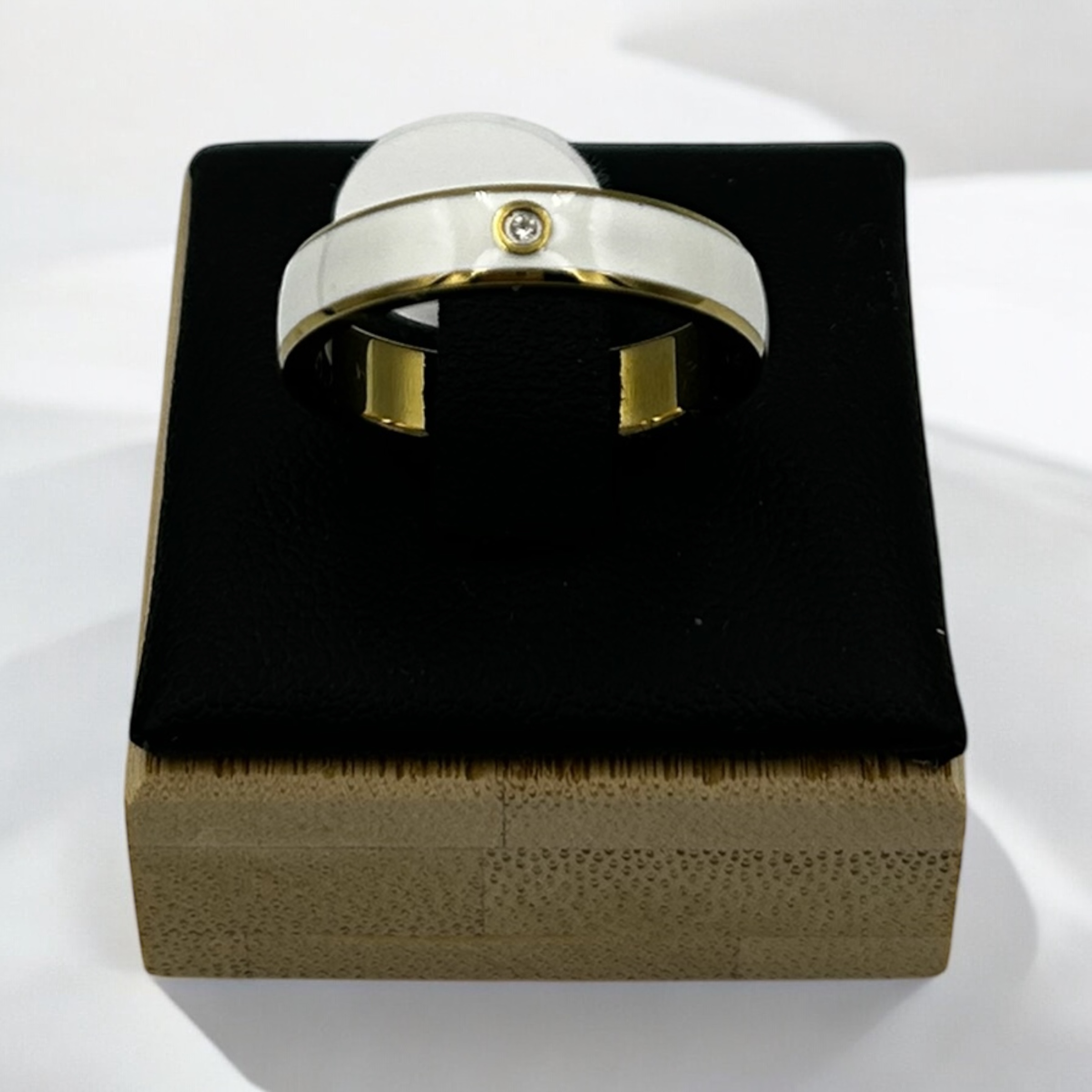 Pierścionek obrączka biała/złota cyrkonia 8/18 mm stal 316L