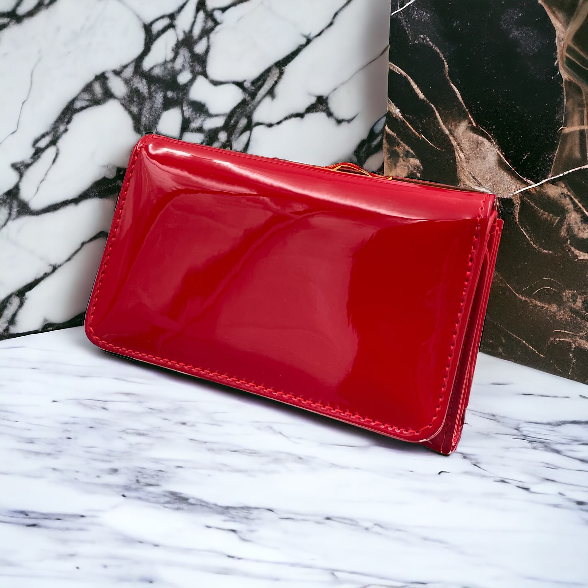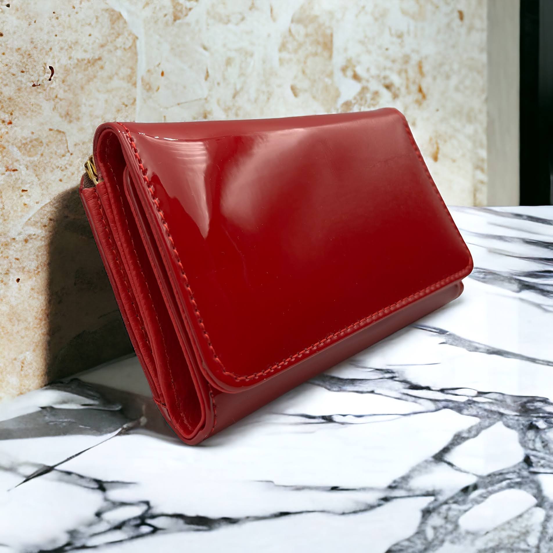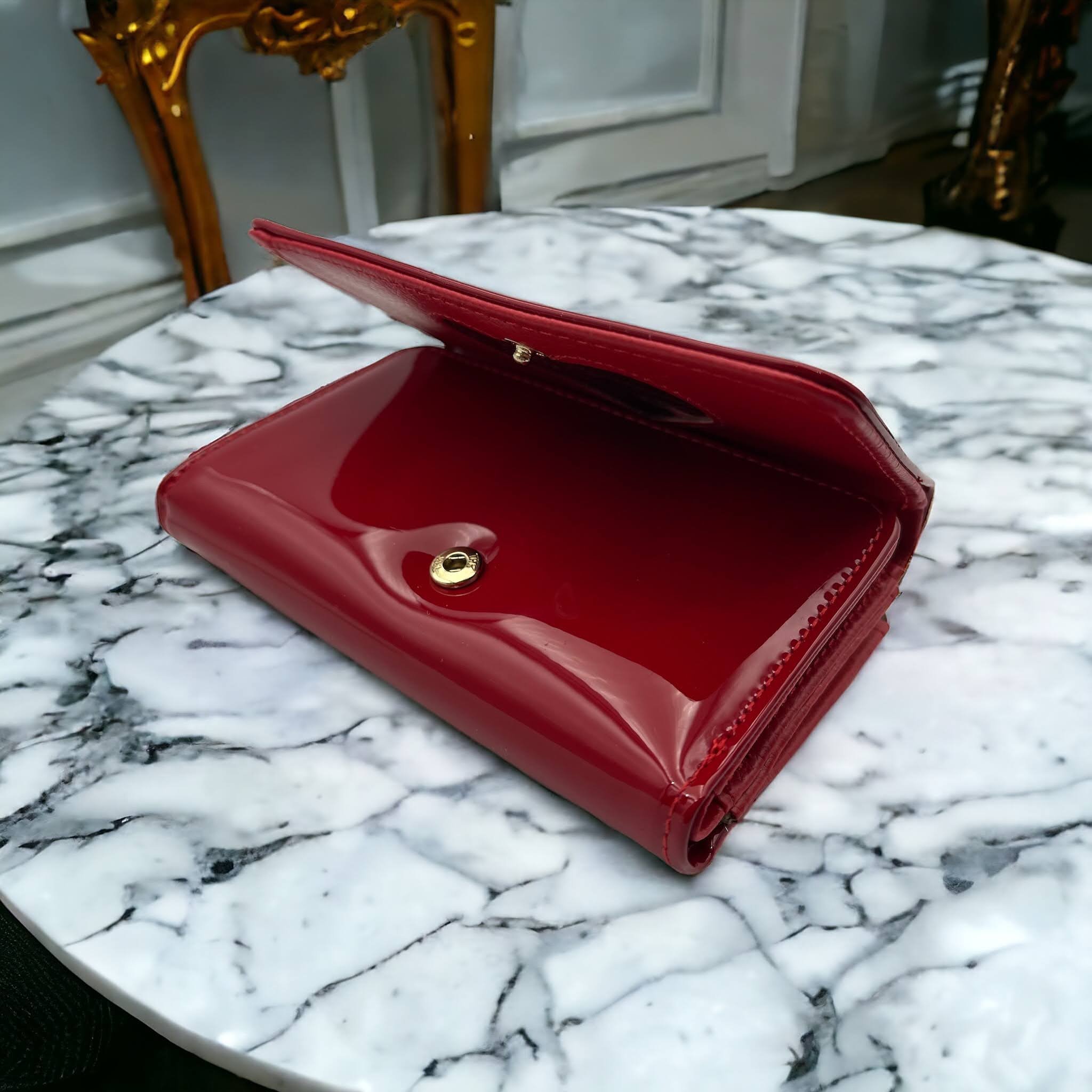 Portfel damski w kolorze czerwonym, lakierowany. Wykonany z wysokiej jakości skóry ekologicznej.