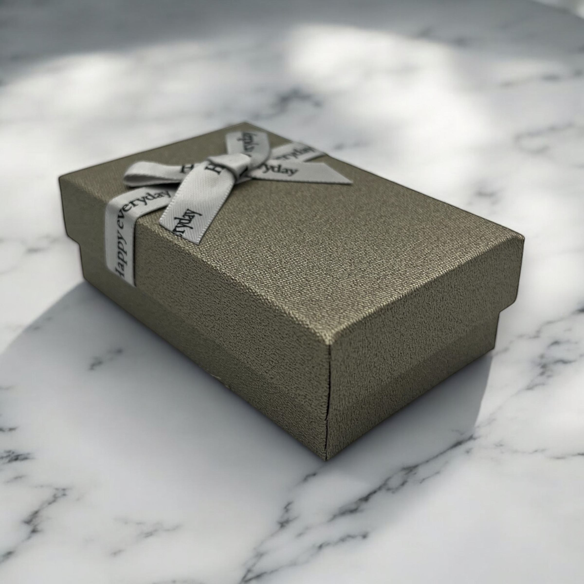 Pudełko prezentowe w kolorze złotym/szampańskim z kokardką.
