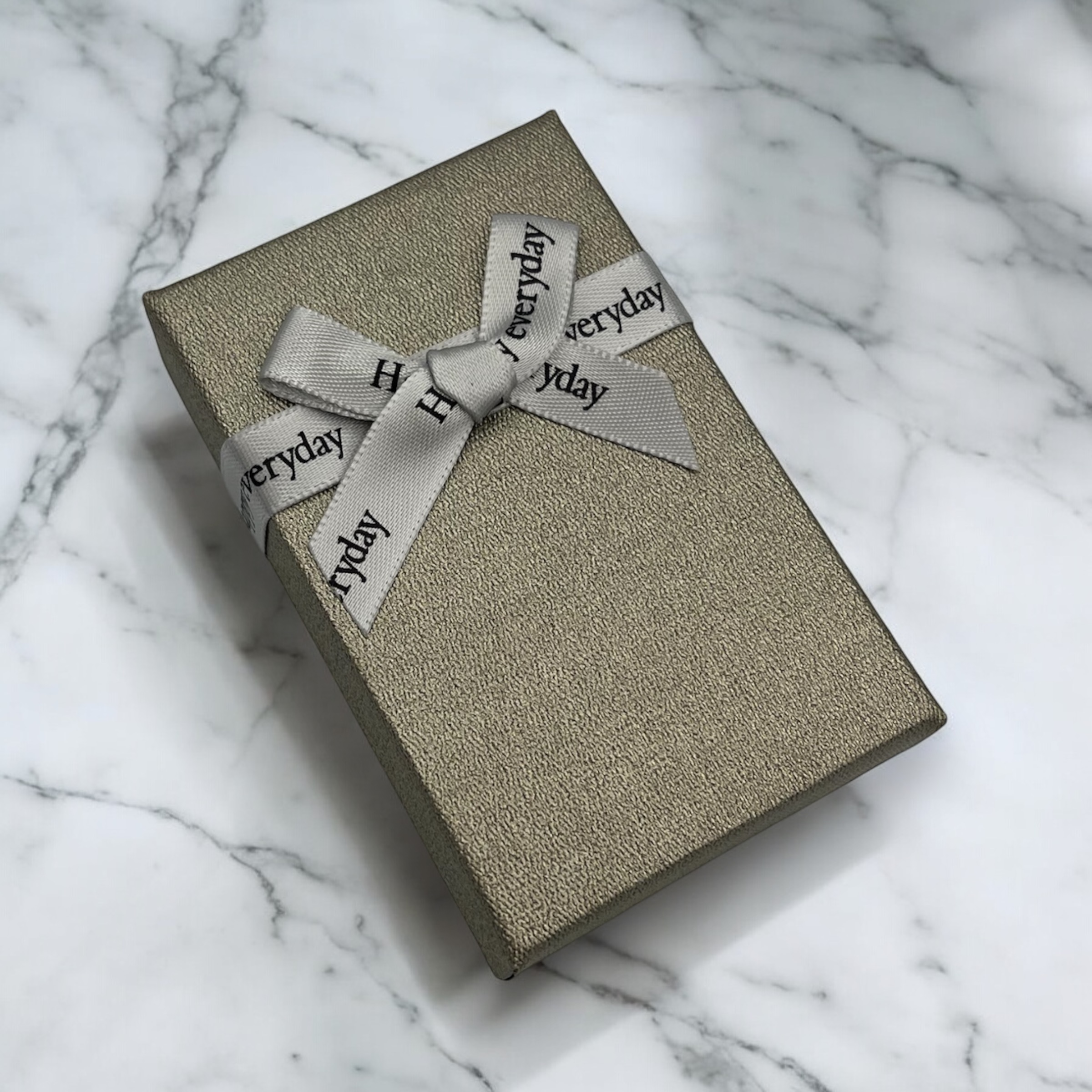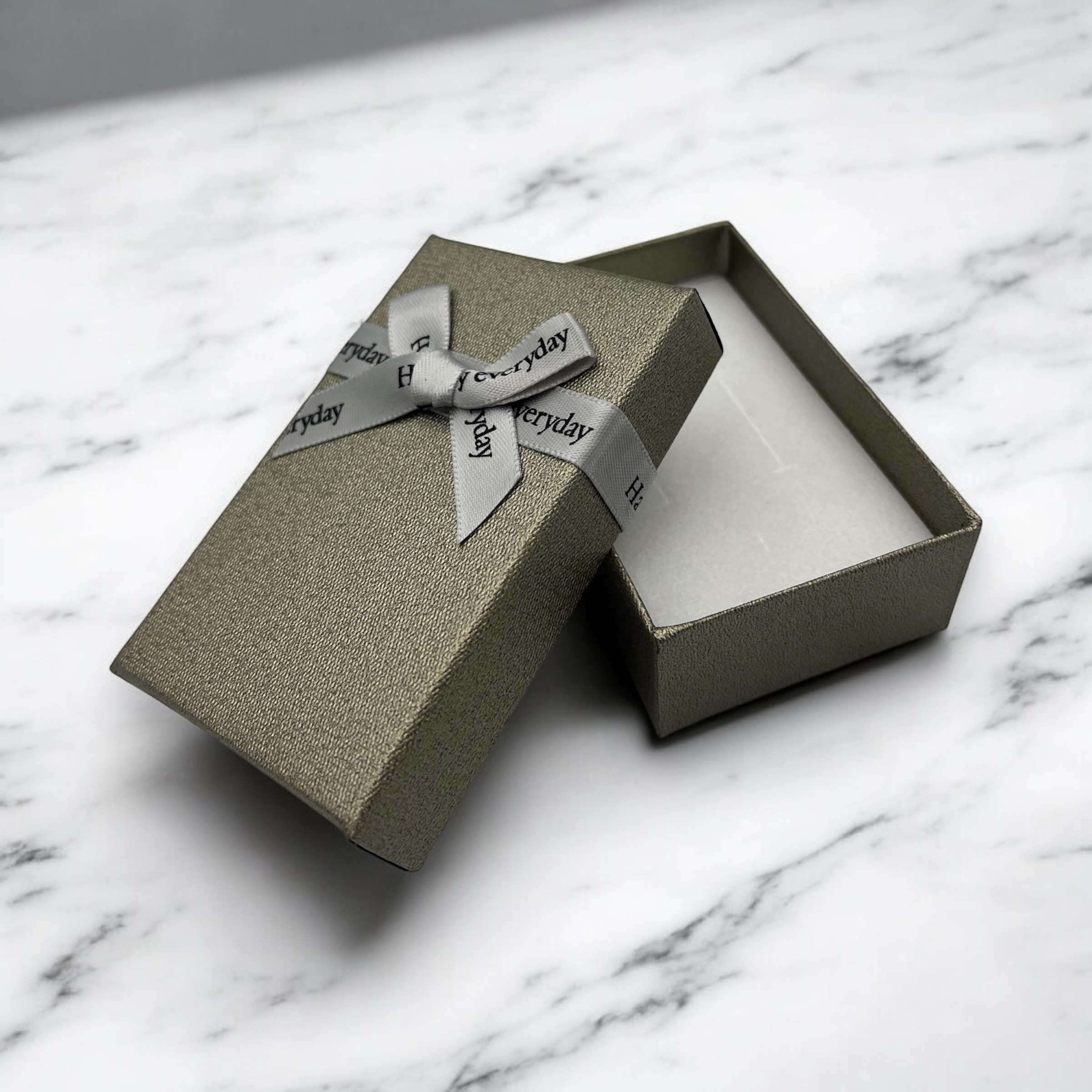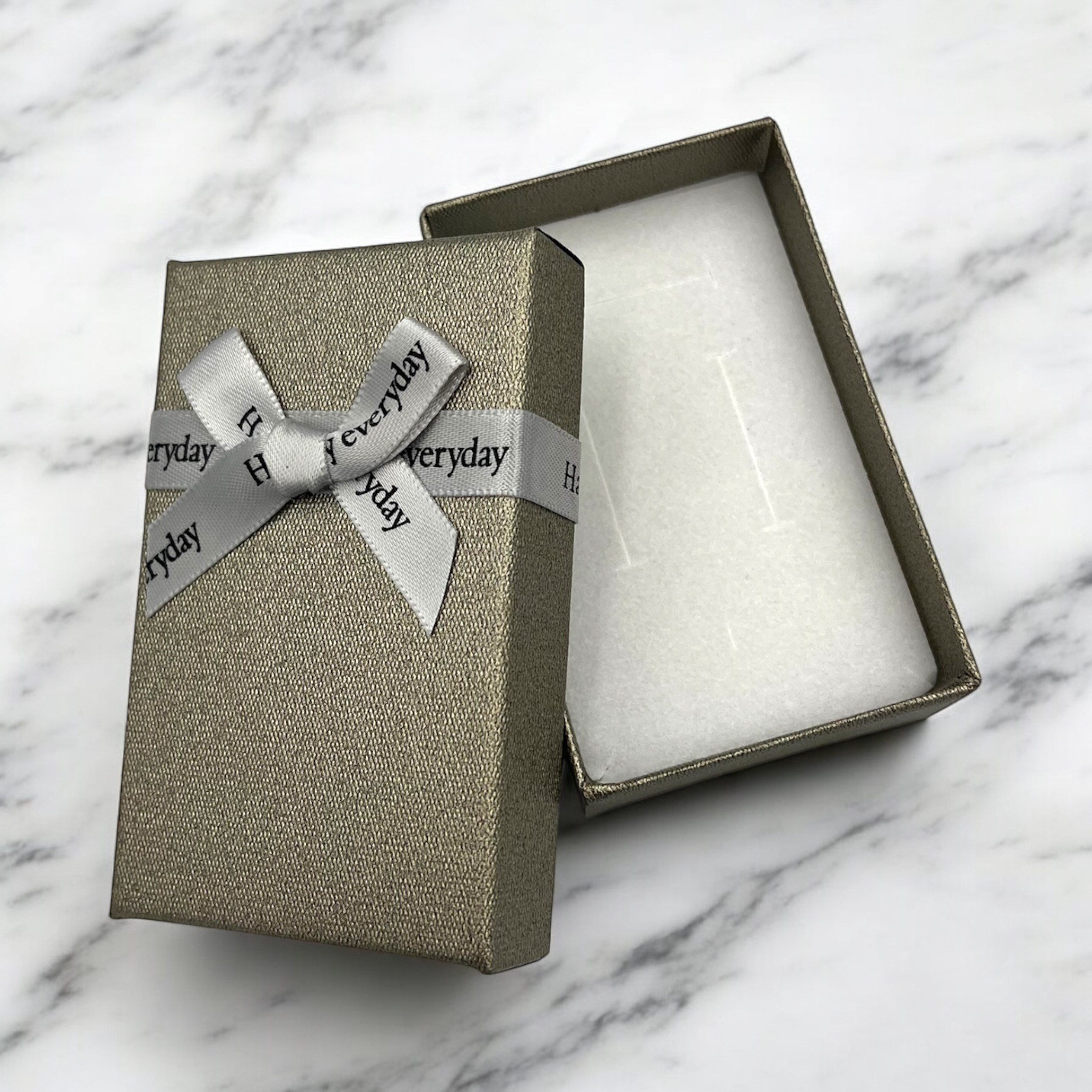 Pudełko prezentowe do zapakowania biżuterii w kolorze złotym/szampańskim z kokardką.