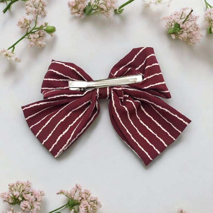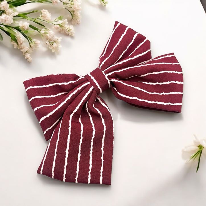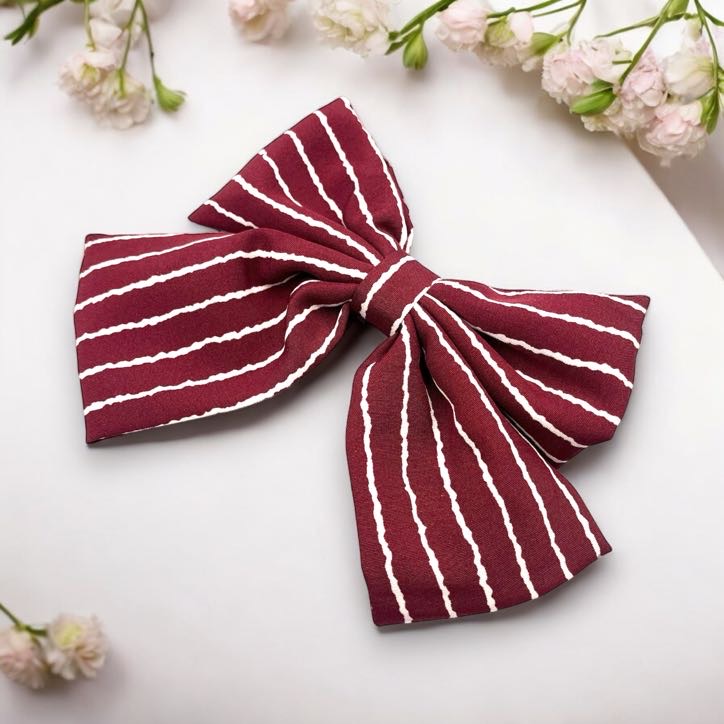 Spinka do włosów DUŻA bordowa kokarda białe paski