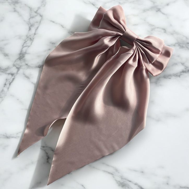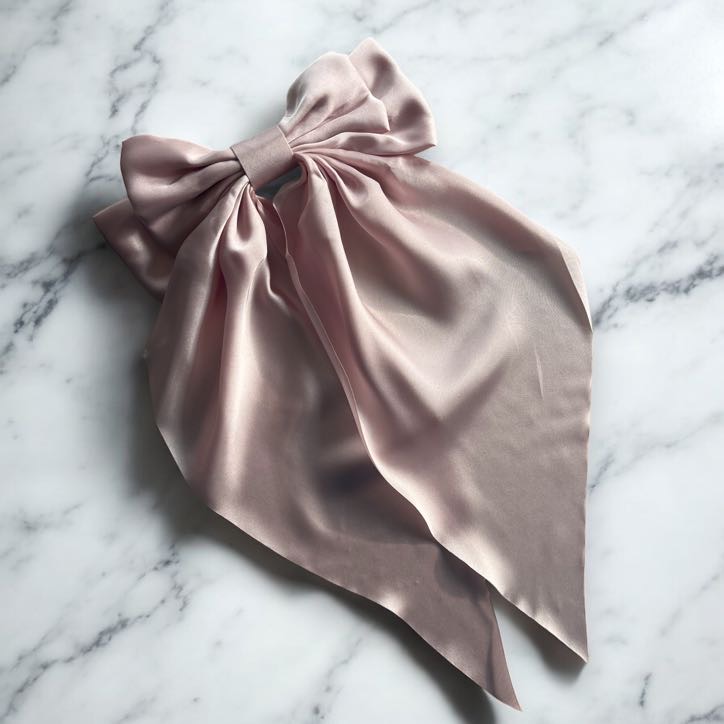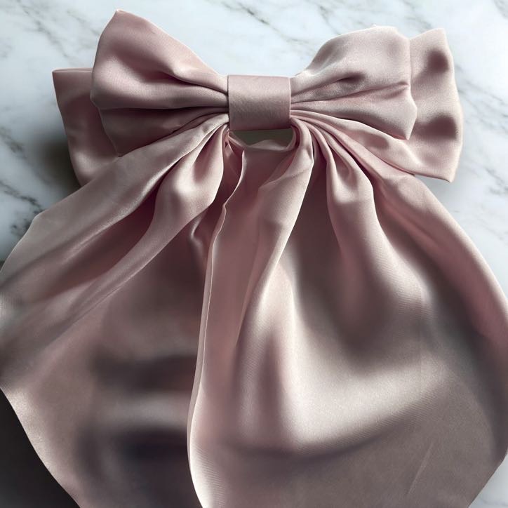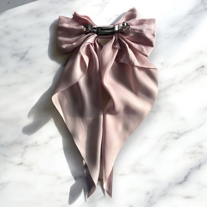 Spinka do włosów DUŻA brudny róż kokarda satyna GŁADKA klamra