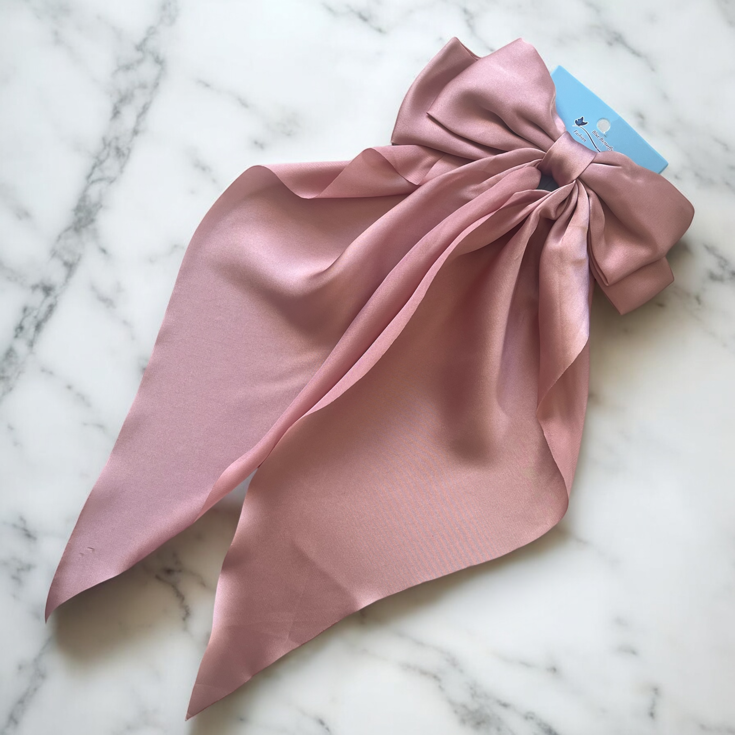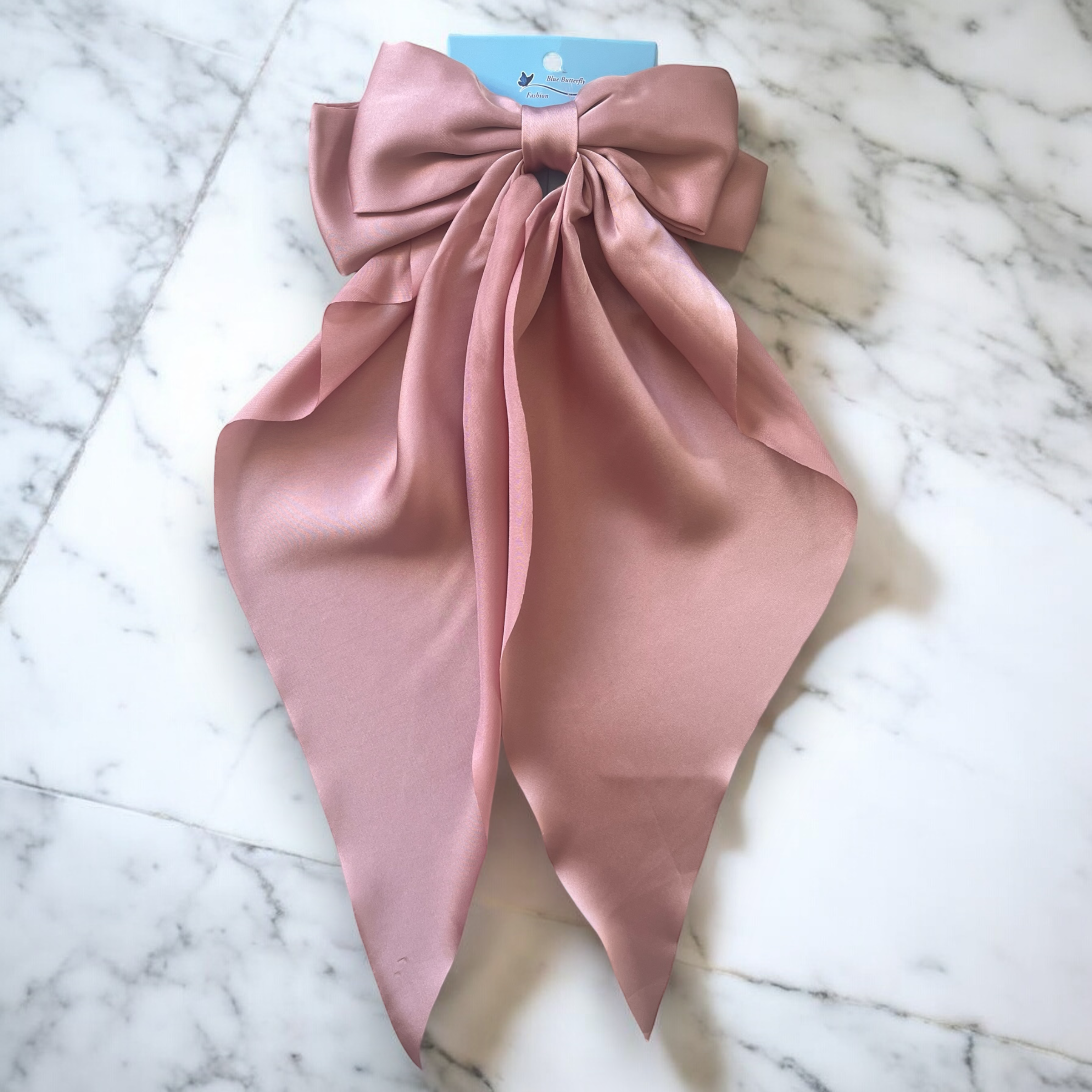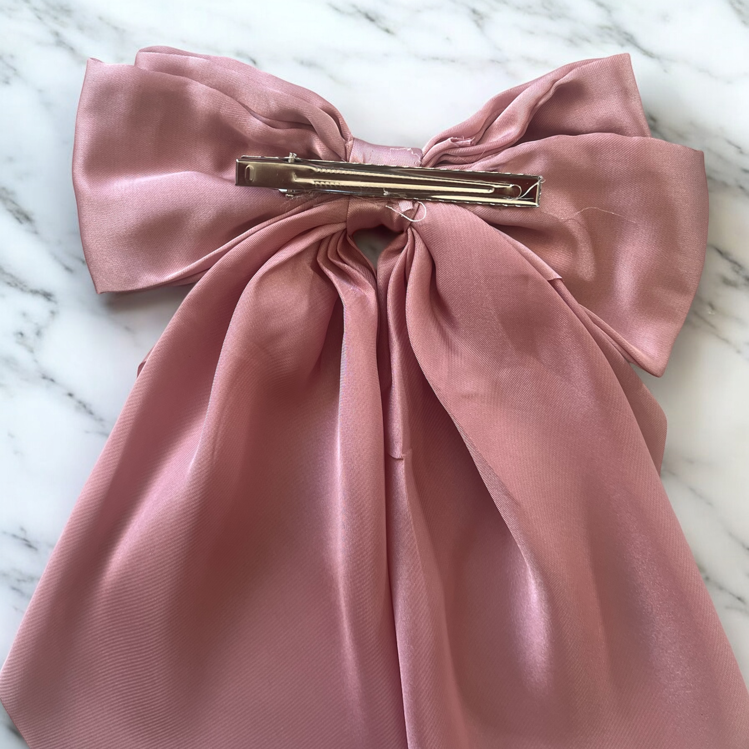 Spinka do włosów DUŻA różowa brudny róż kokarda satyna gładka