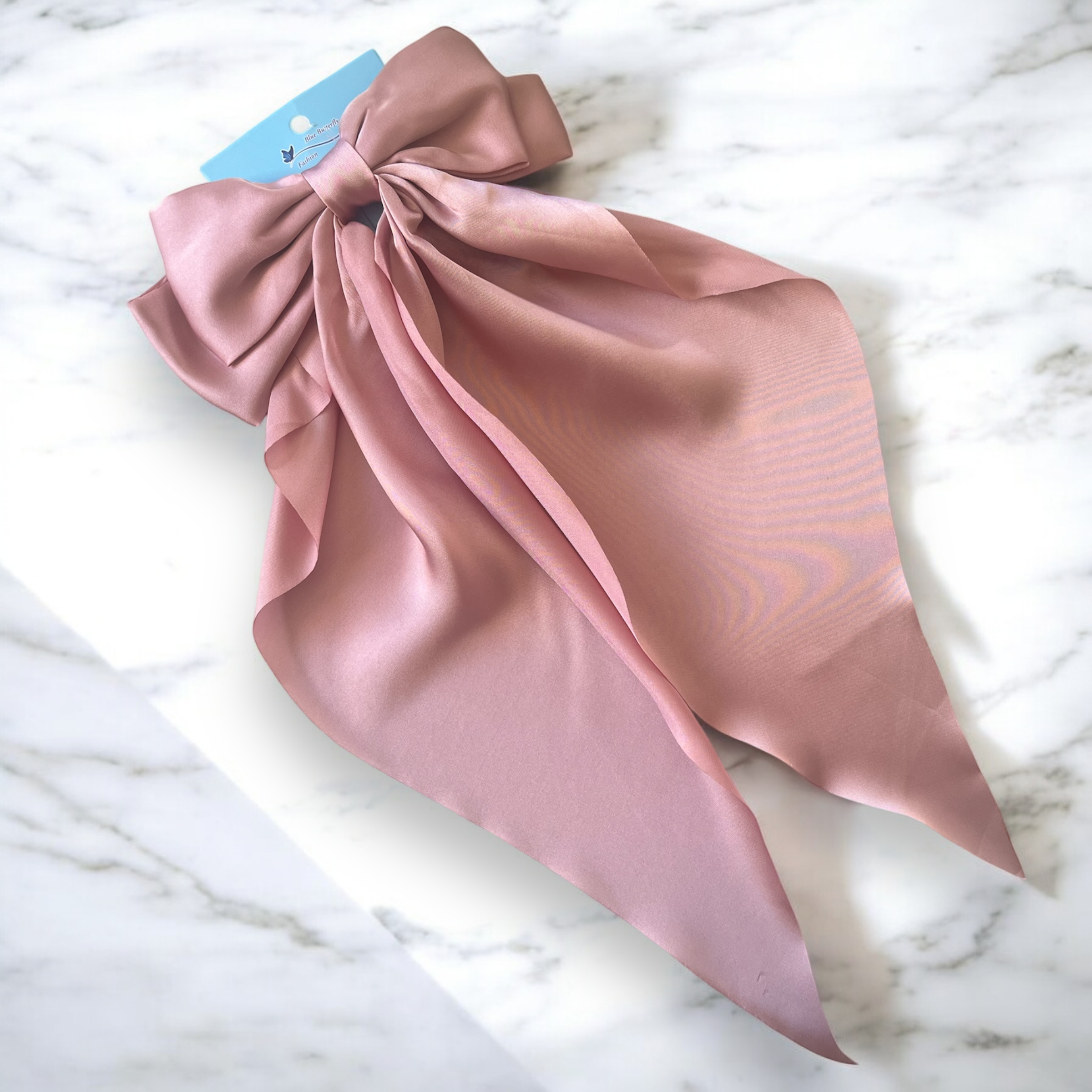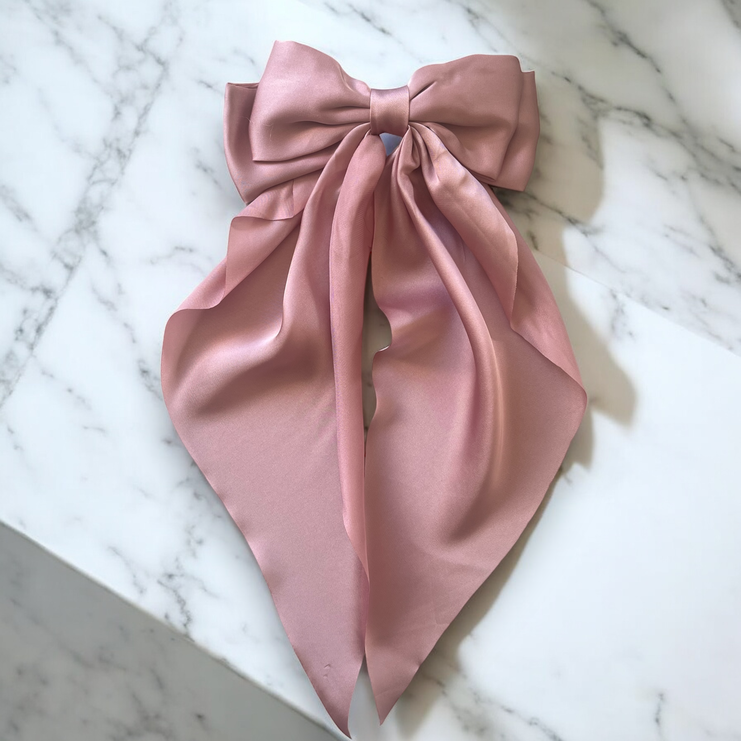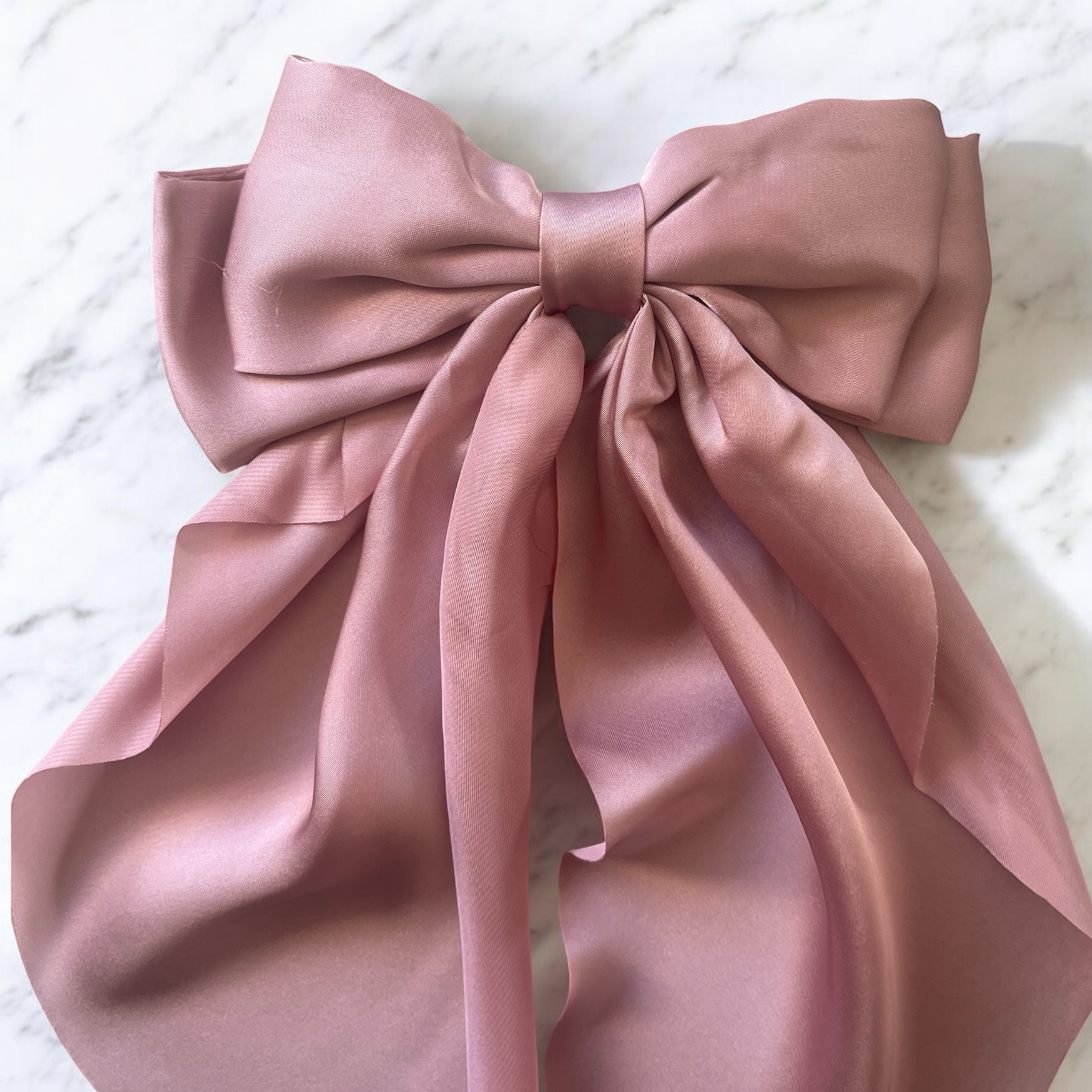 Spinka do włosów DUŻA różowa brudny róż kokarda satyna gładka