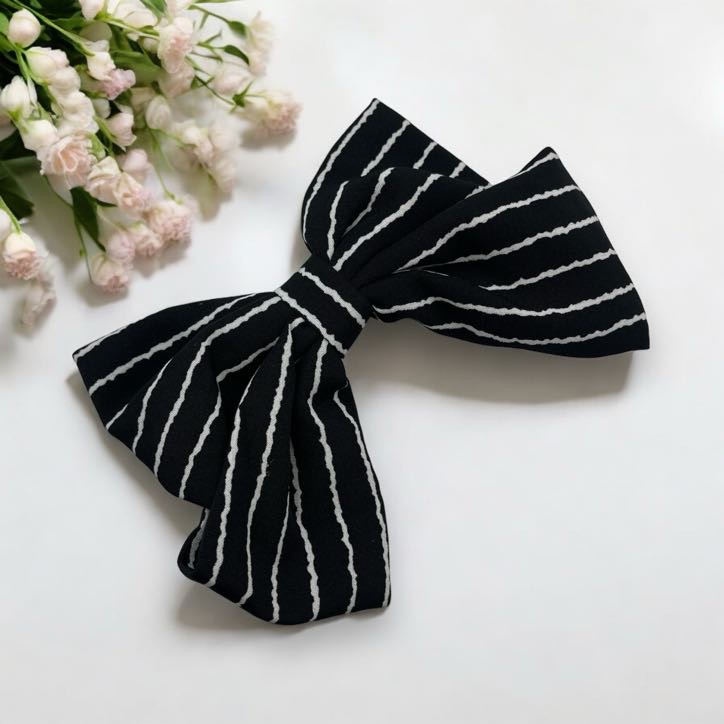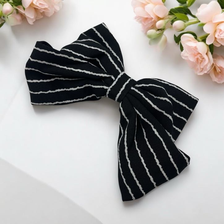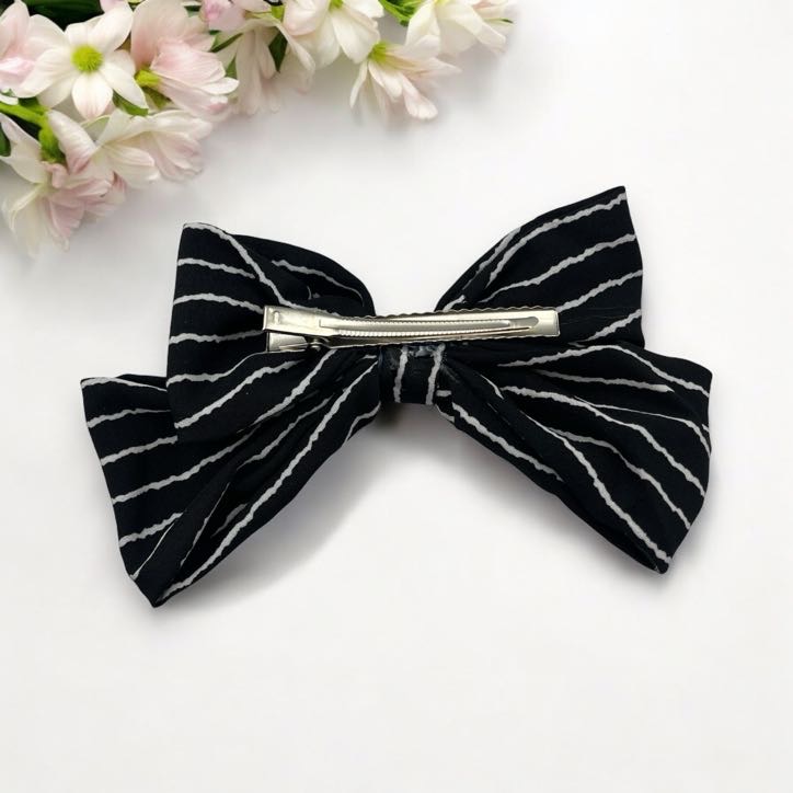 Spinka do włosów DUŻA czarna kokarda białe paski