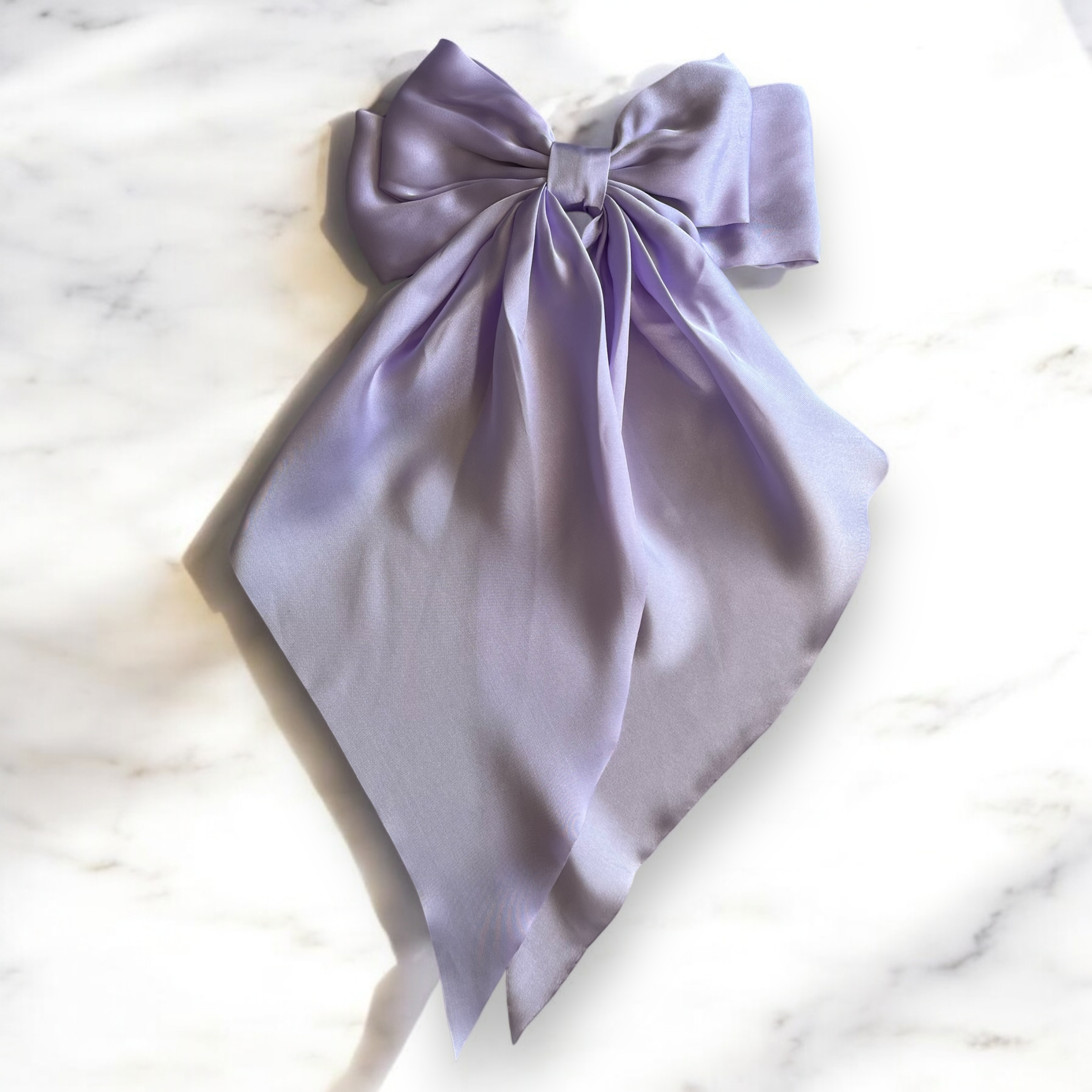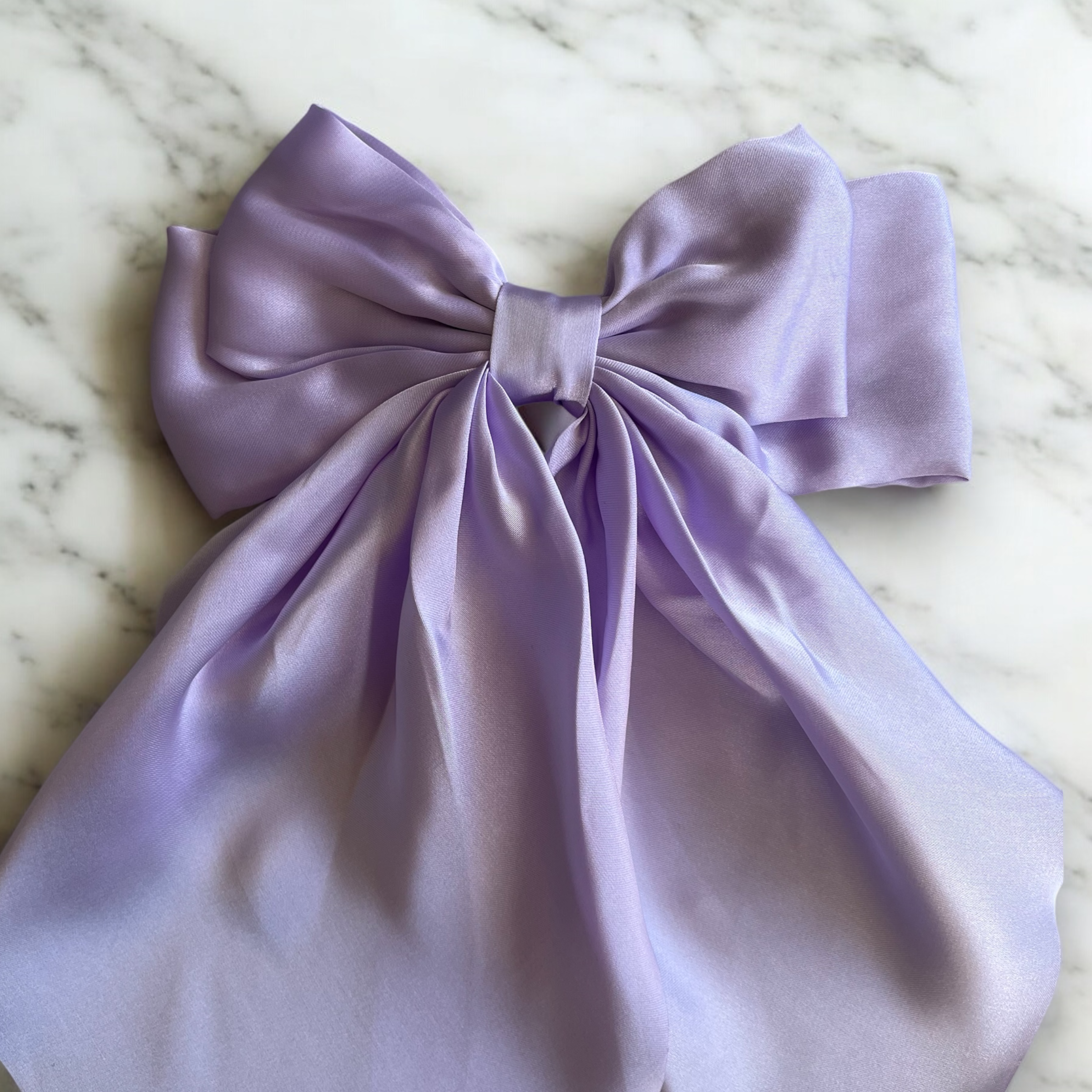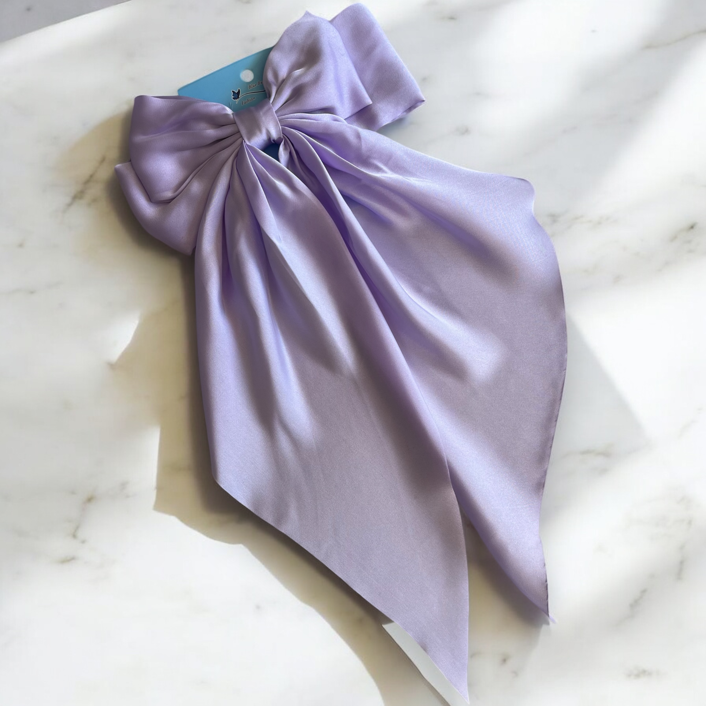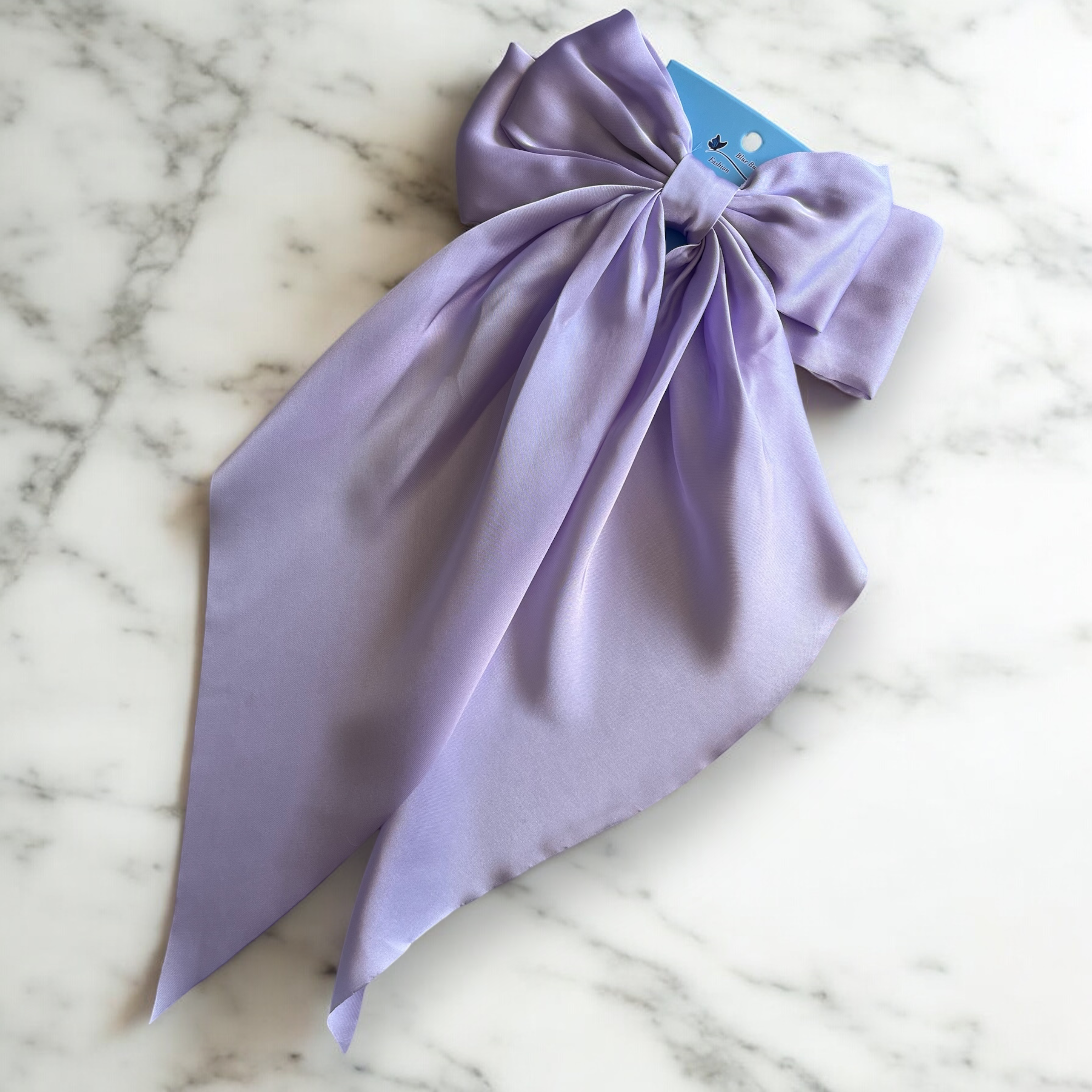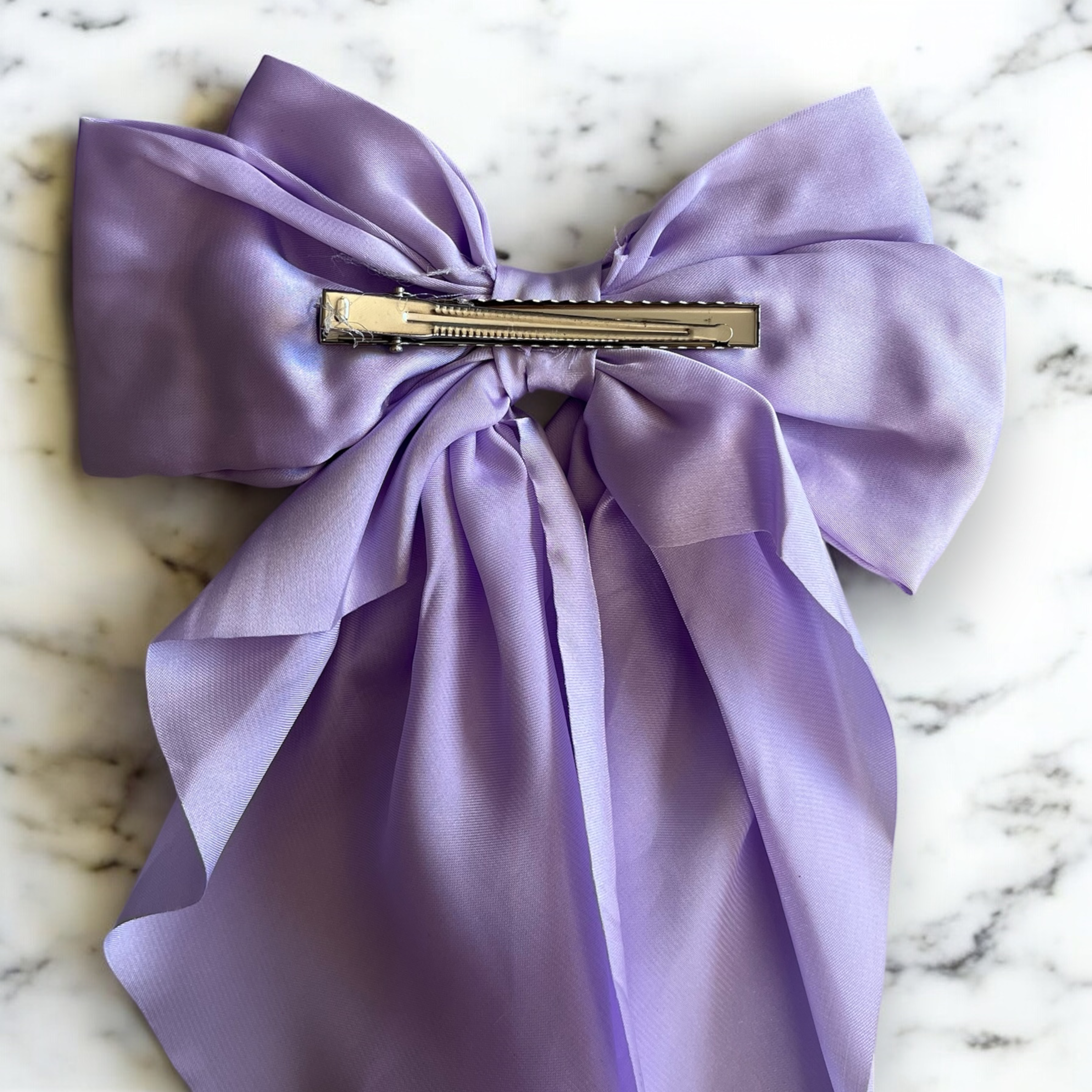 Spinka do włosów DUŻA fioletowa lilak kokarda satyna gładka