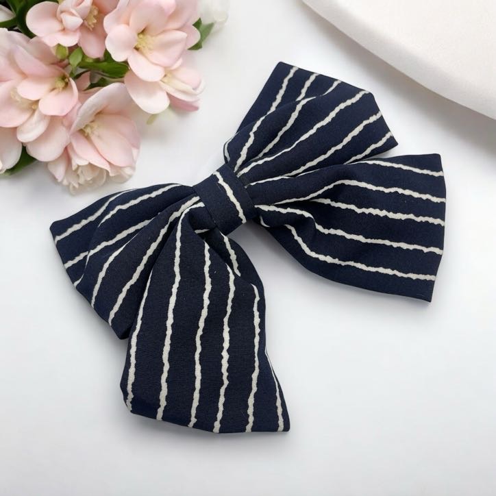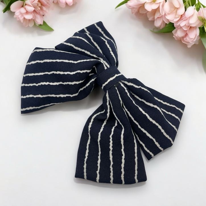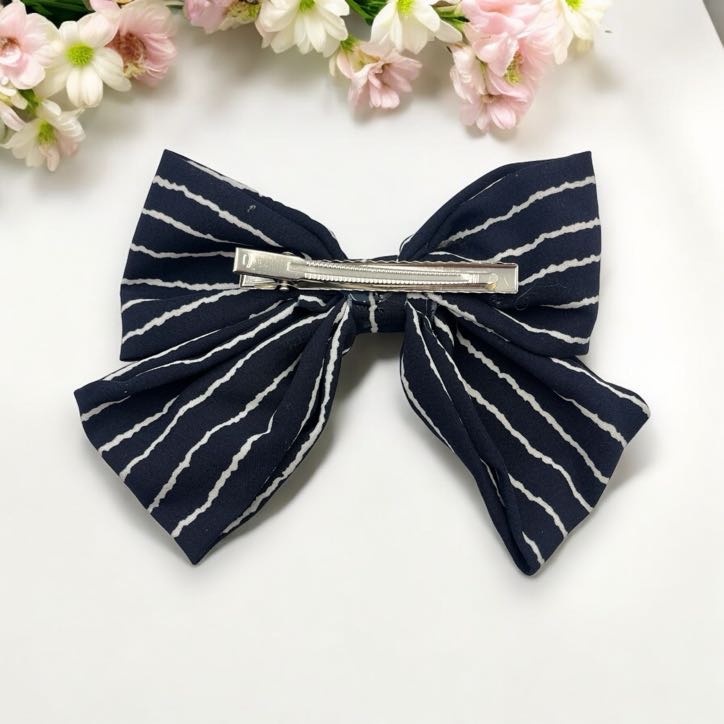 Spinka do włosów DUŻA granatowa kokarda białe paski