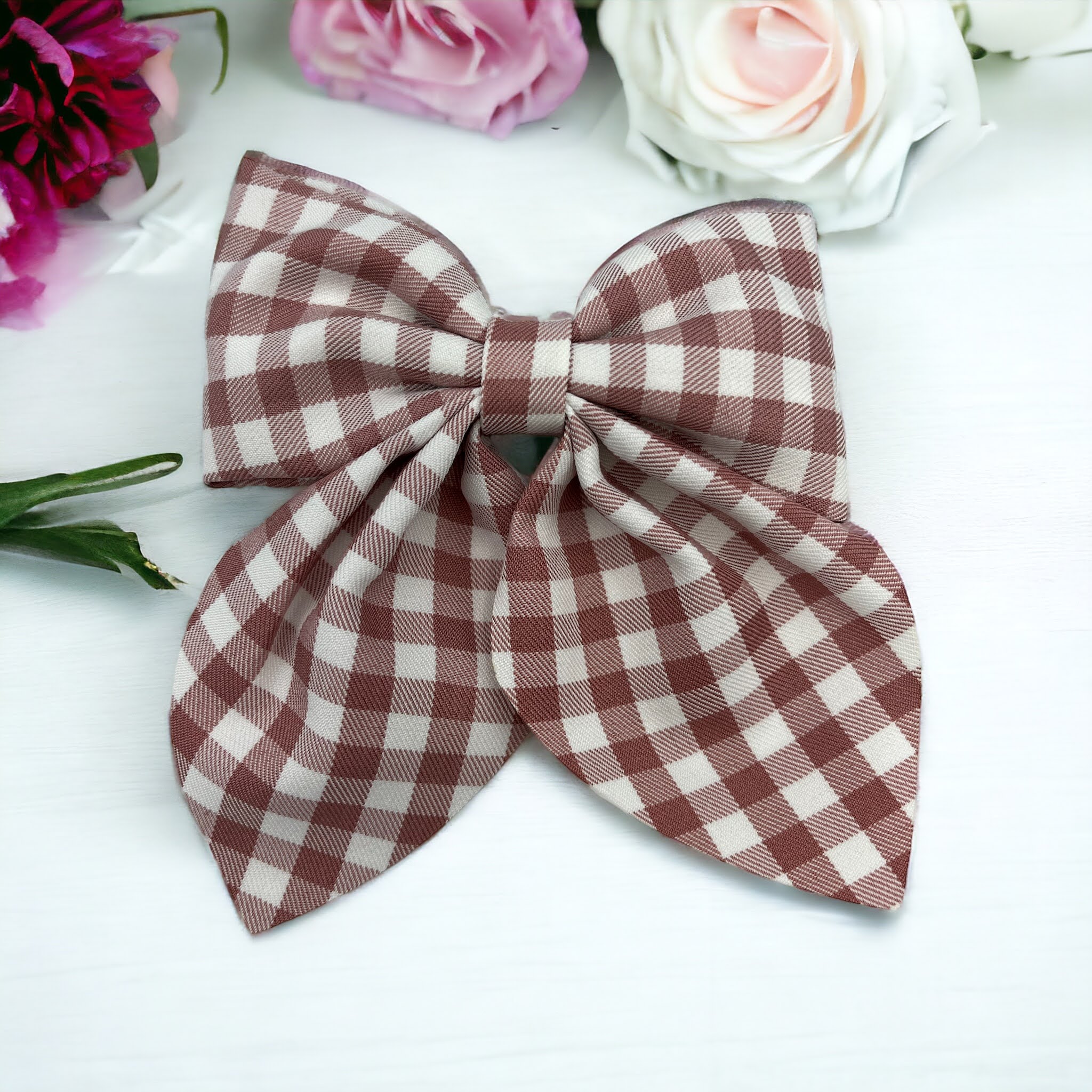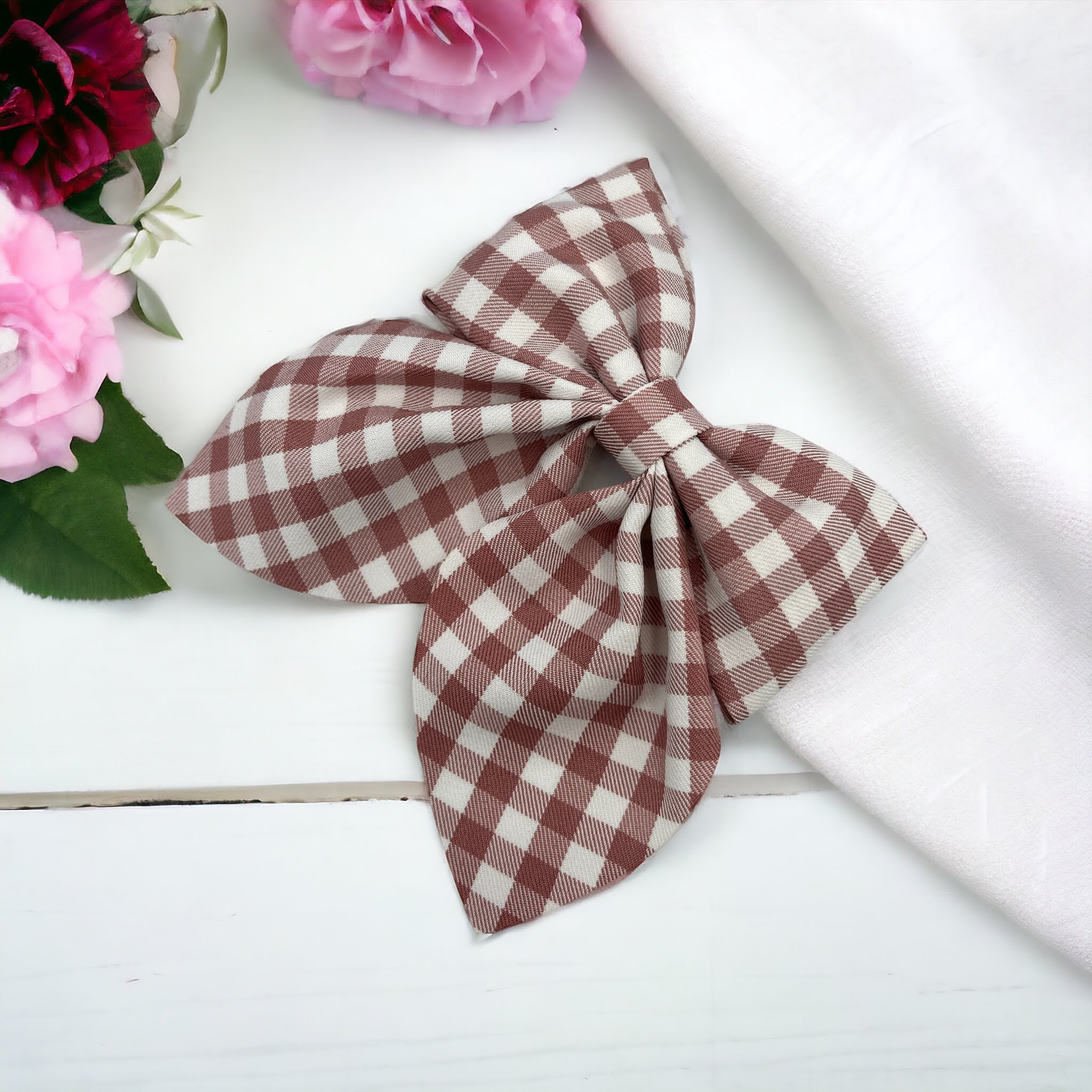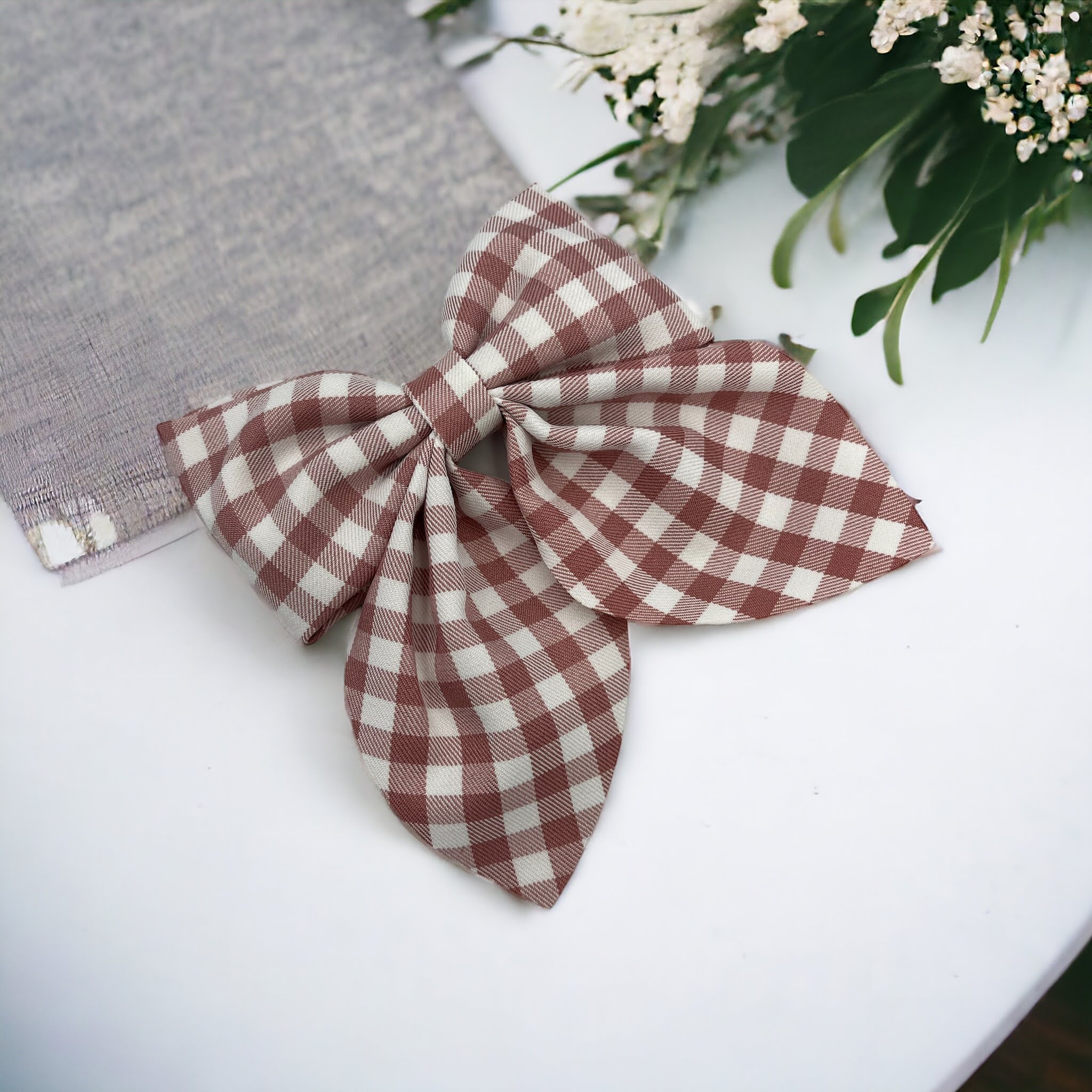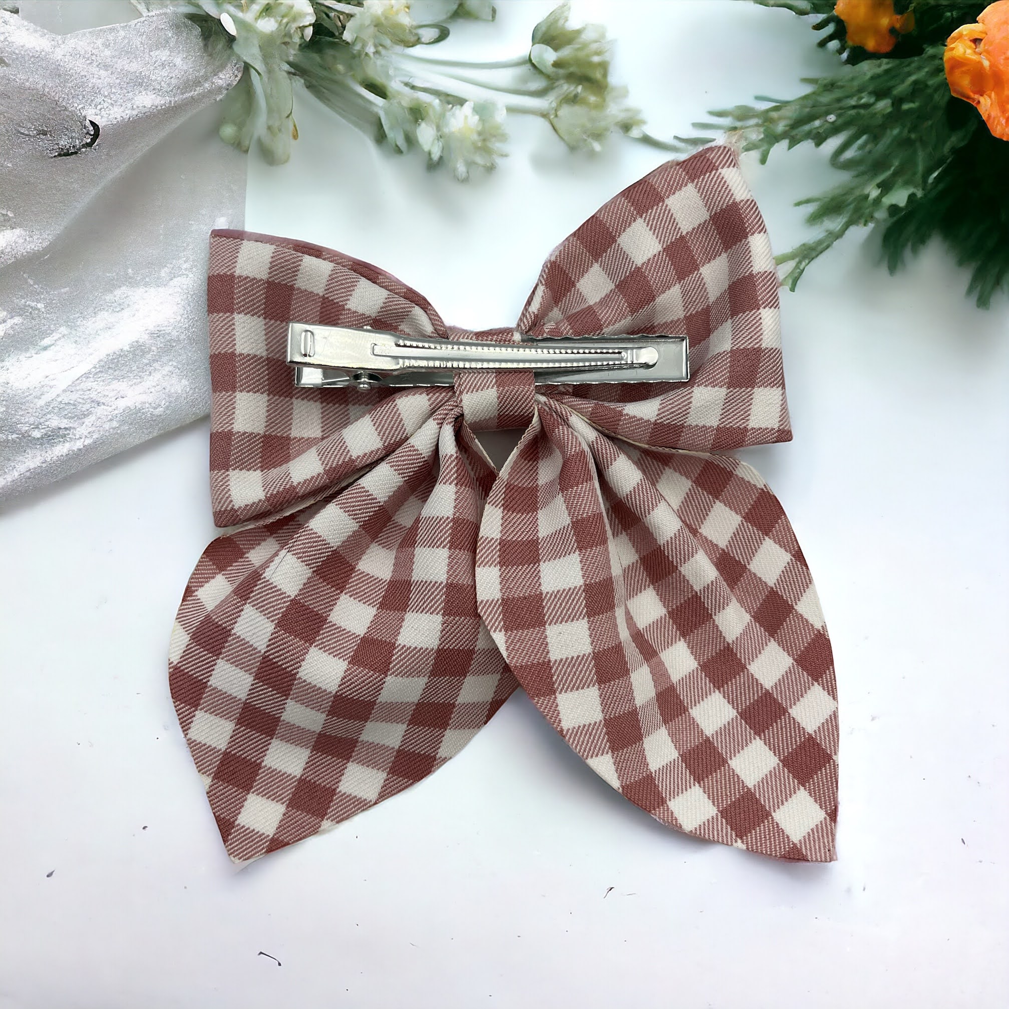 Spinka do włosów typu wsuwka, kokardka w kratkę.
