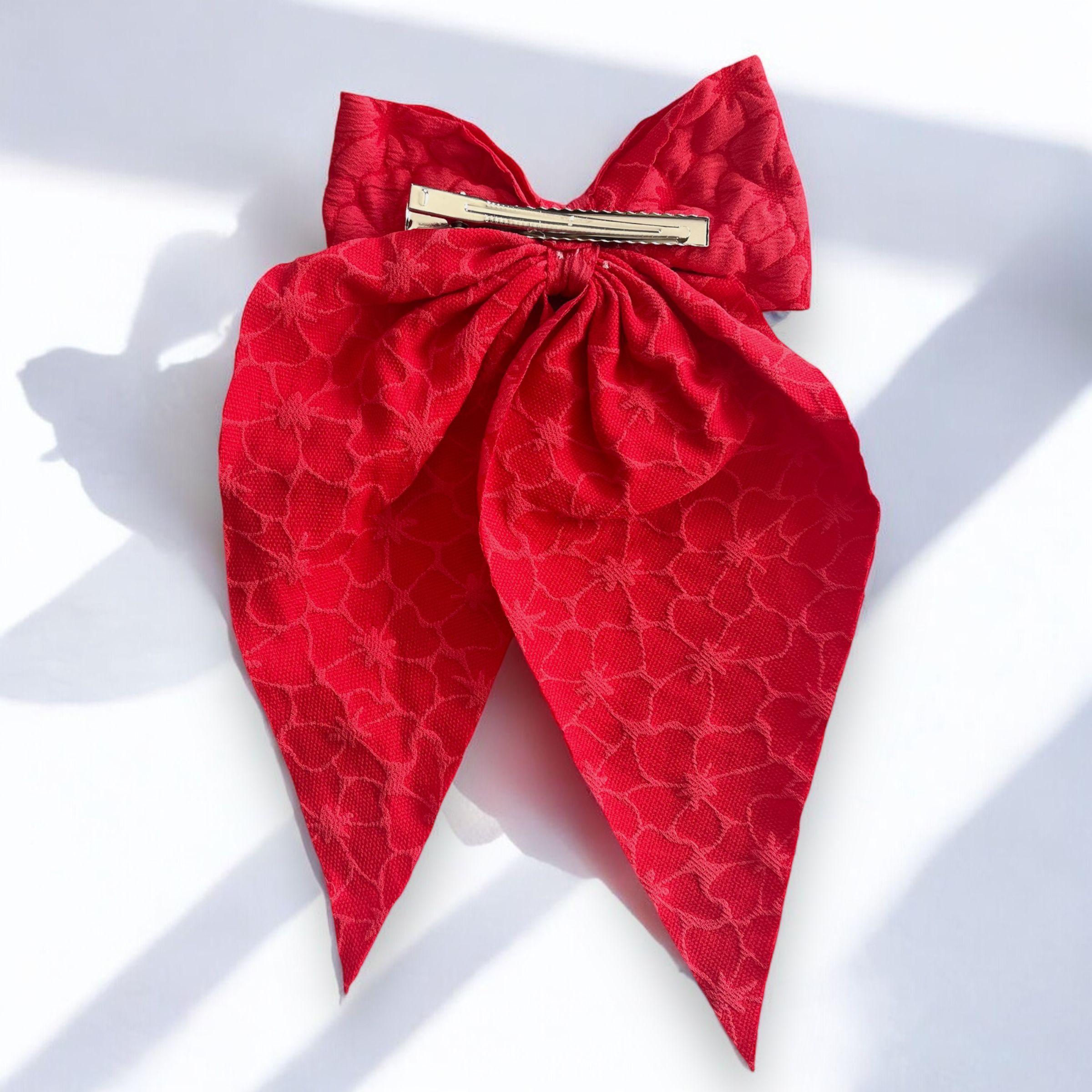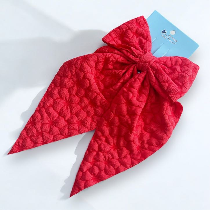 Spinka do włosów DUŻA koralowa kokarda tłoczony wzorek