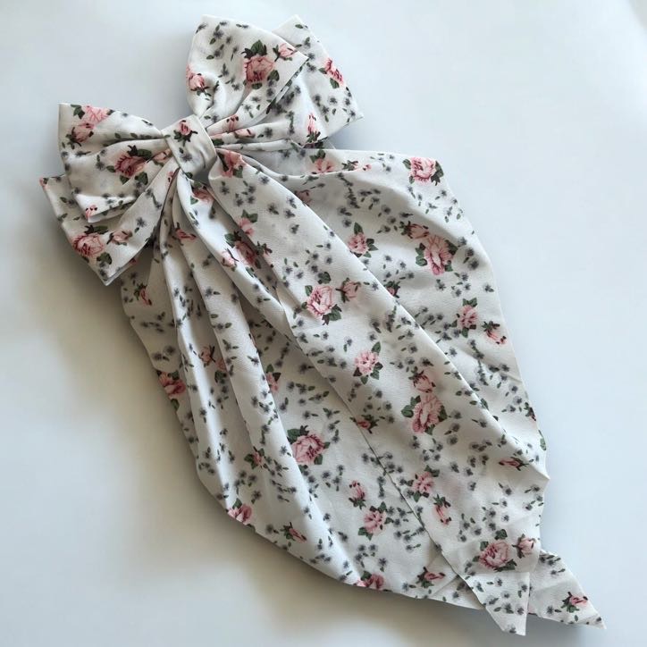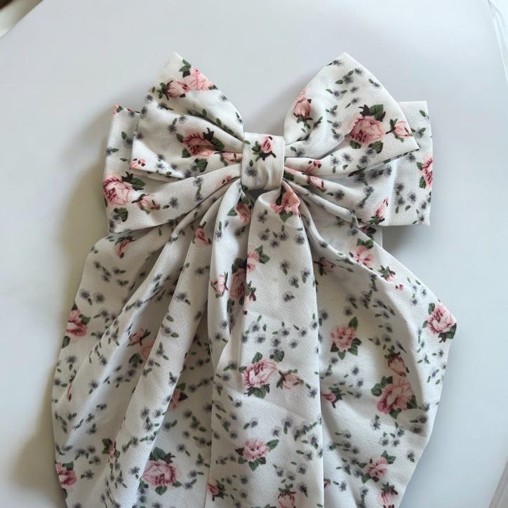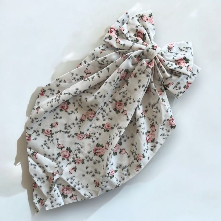 Spinka do włosów klamra DUŻA kremowa kokarda kolorowe drobne kwiatki