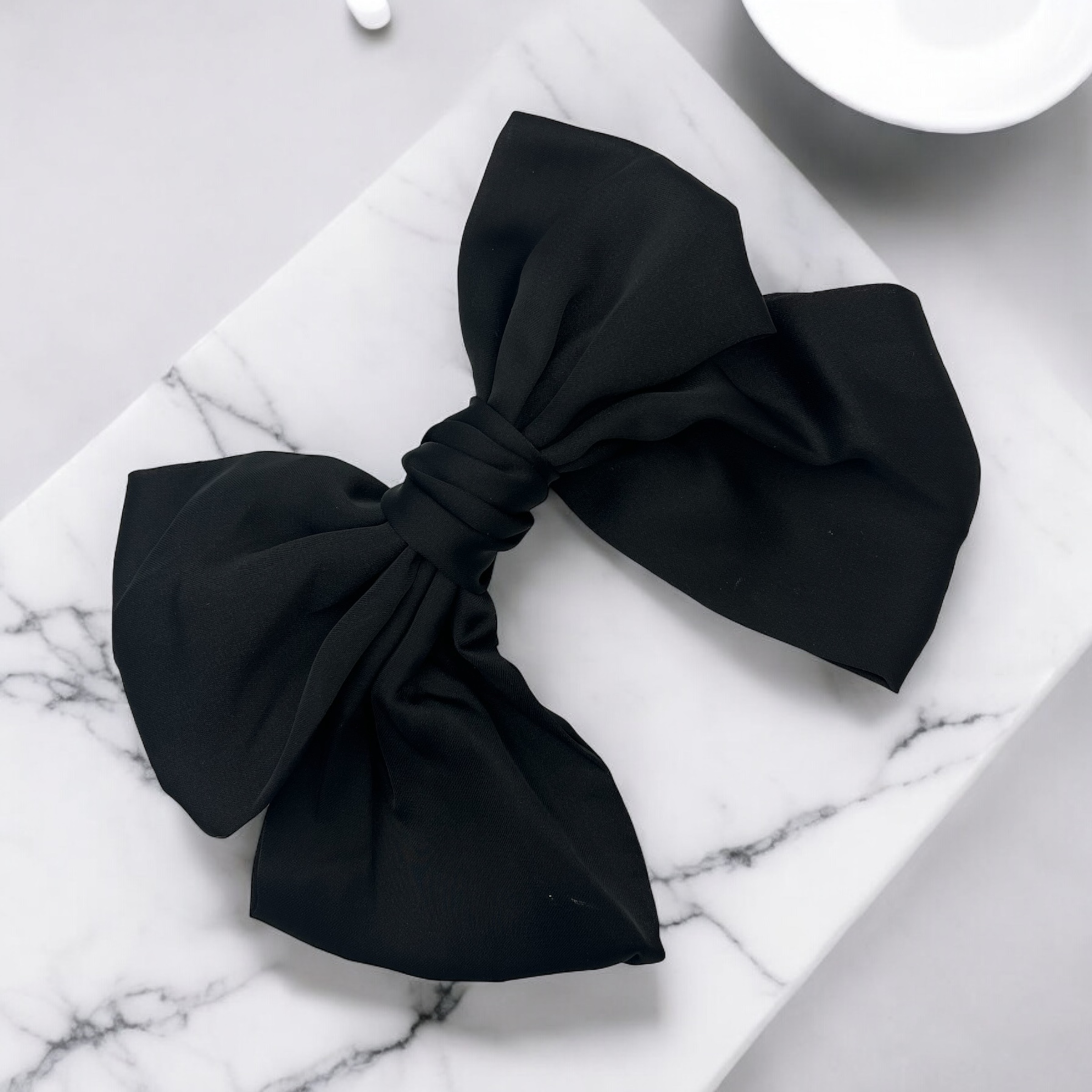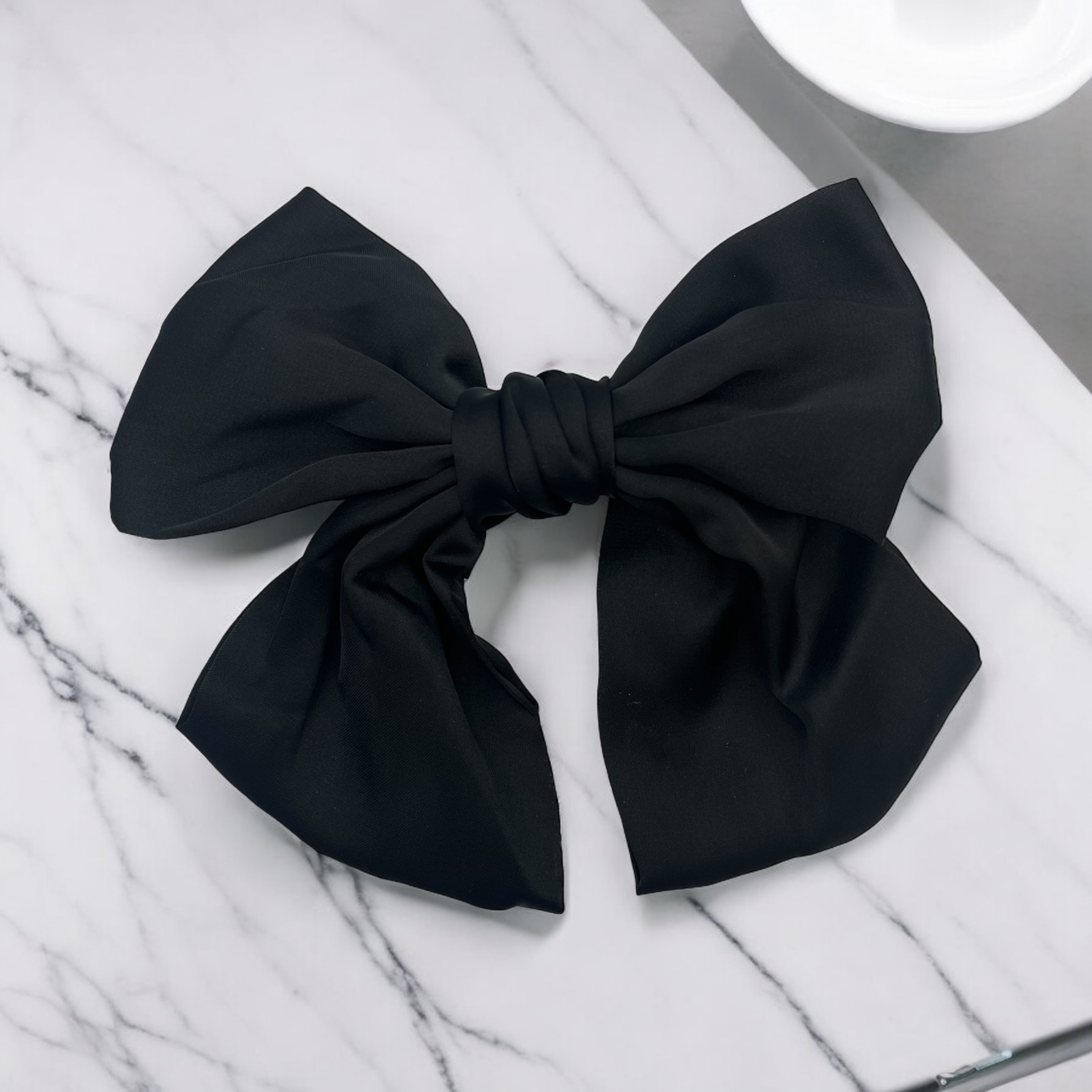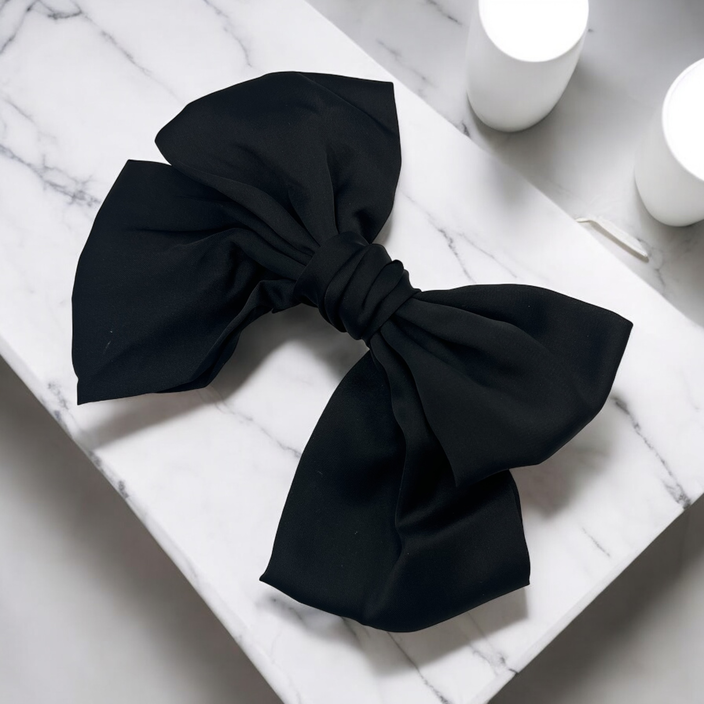Spinka do włosów DUŻA czarna satyna elegancka kokarda okolicznościowa