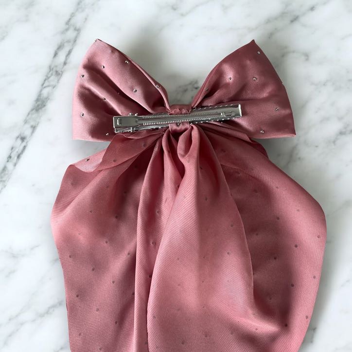 Spinka do włosów DUŻA różowa kokarda satyna dżety