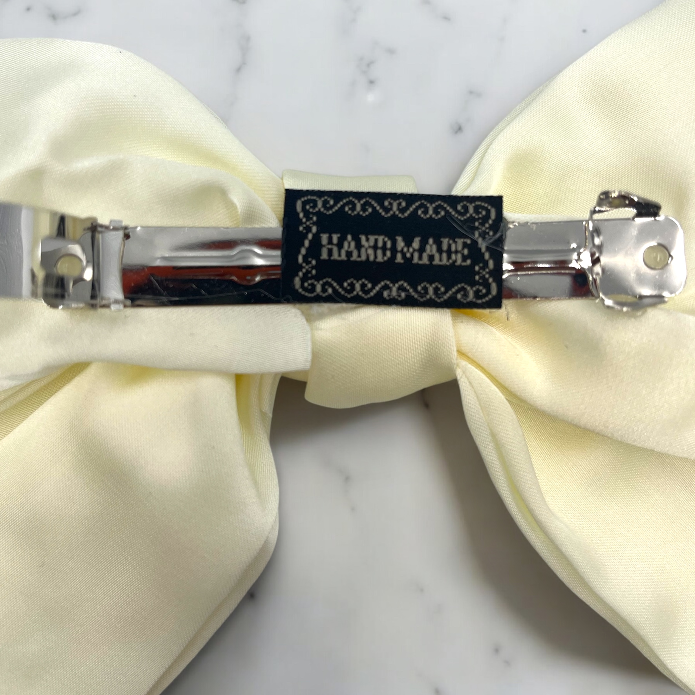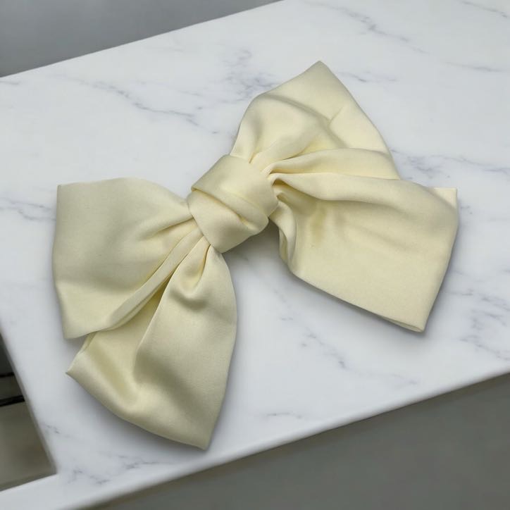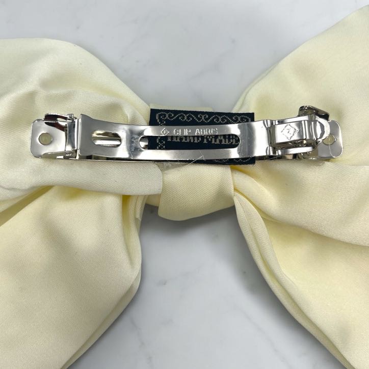 Okolicznościowa spinka do włosów typu klamra, ecru kokarda satynowa.