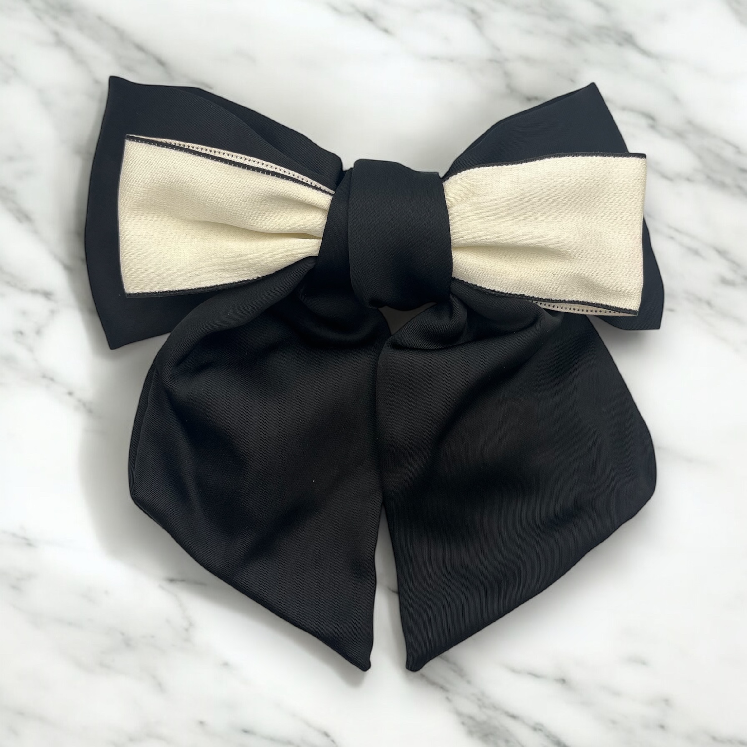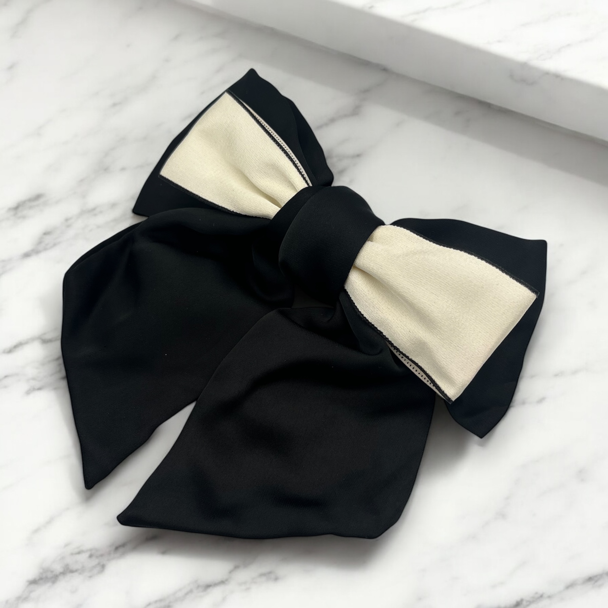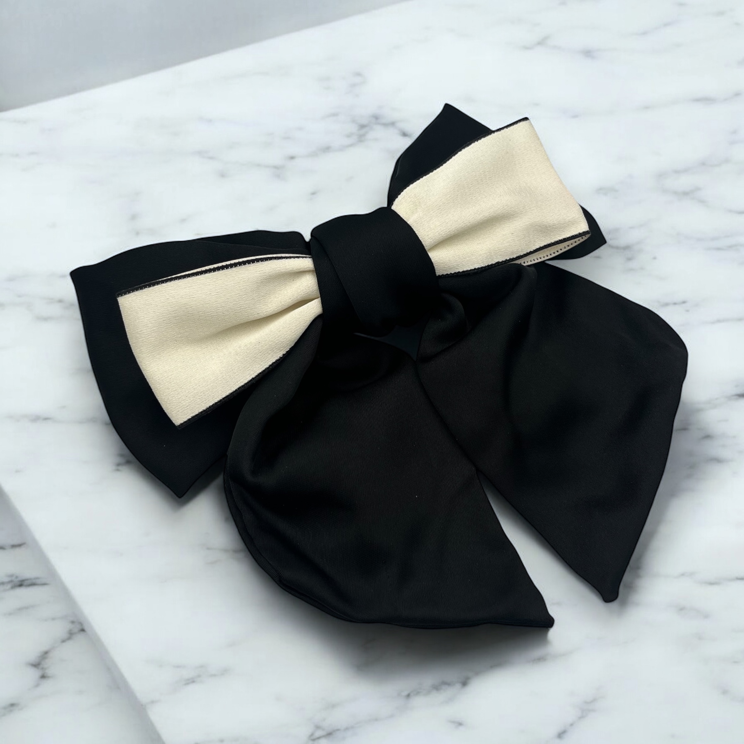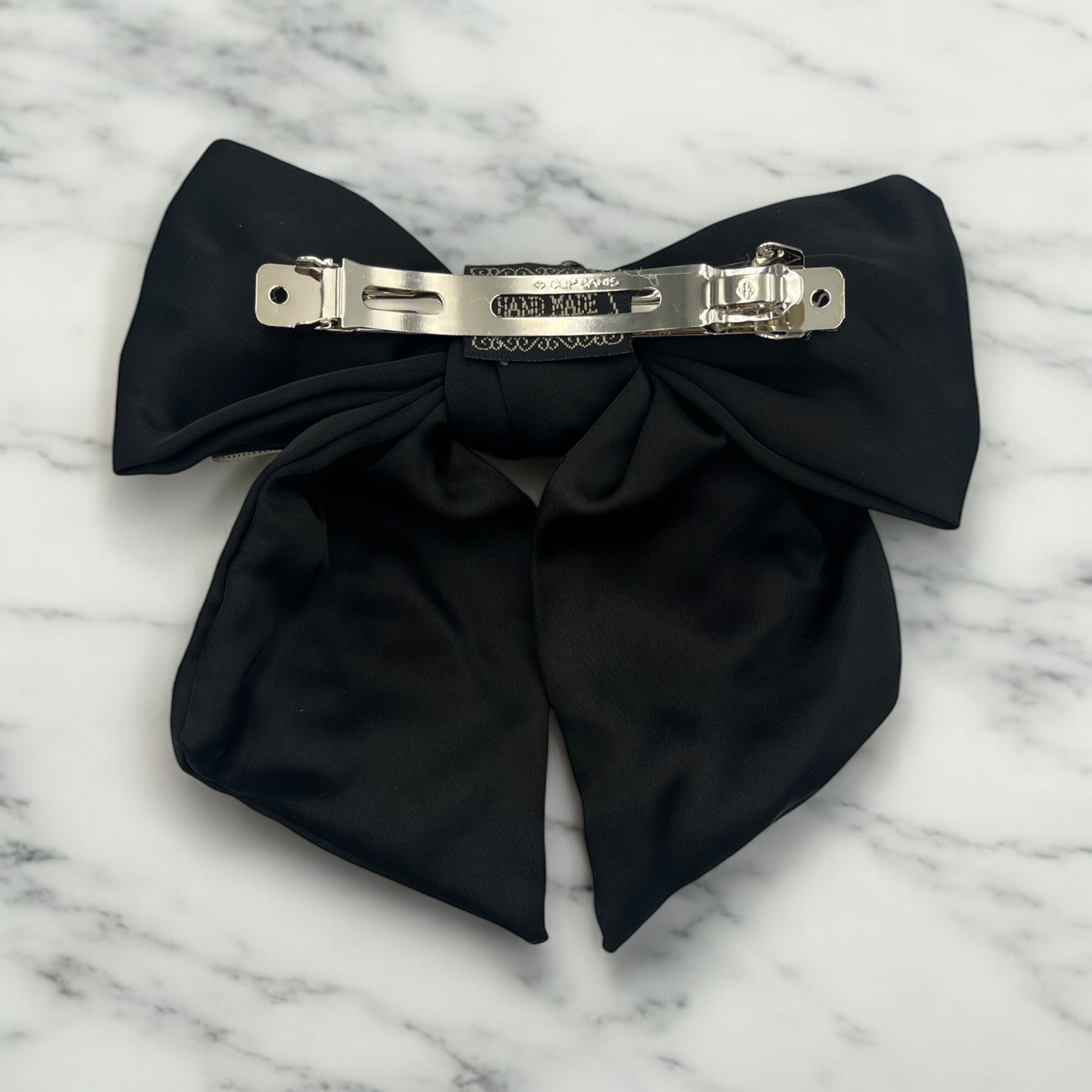 Spinka do włosów typu klamra, czarna kokarda satynowa.